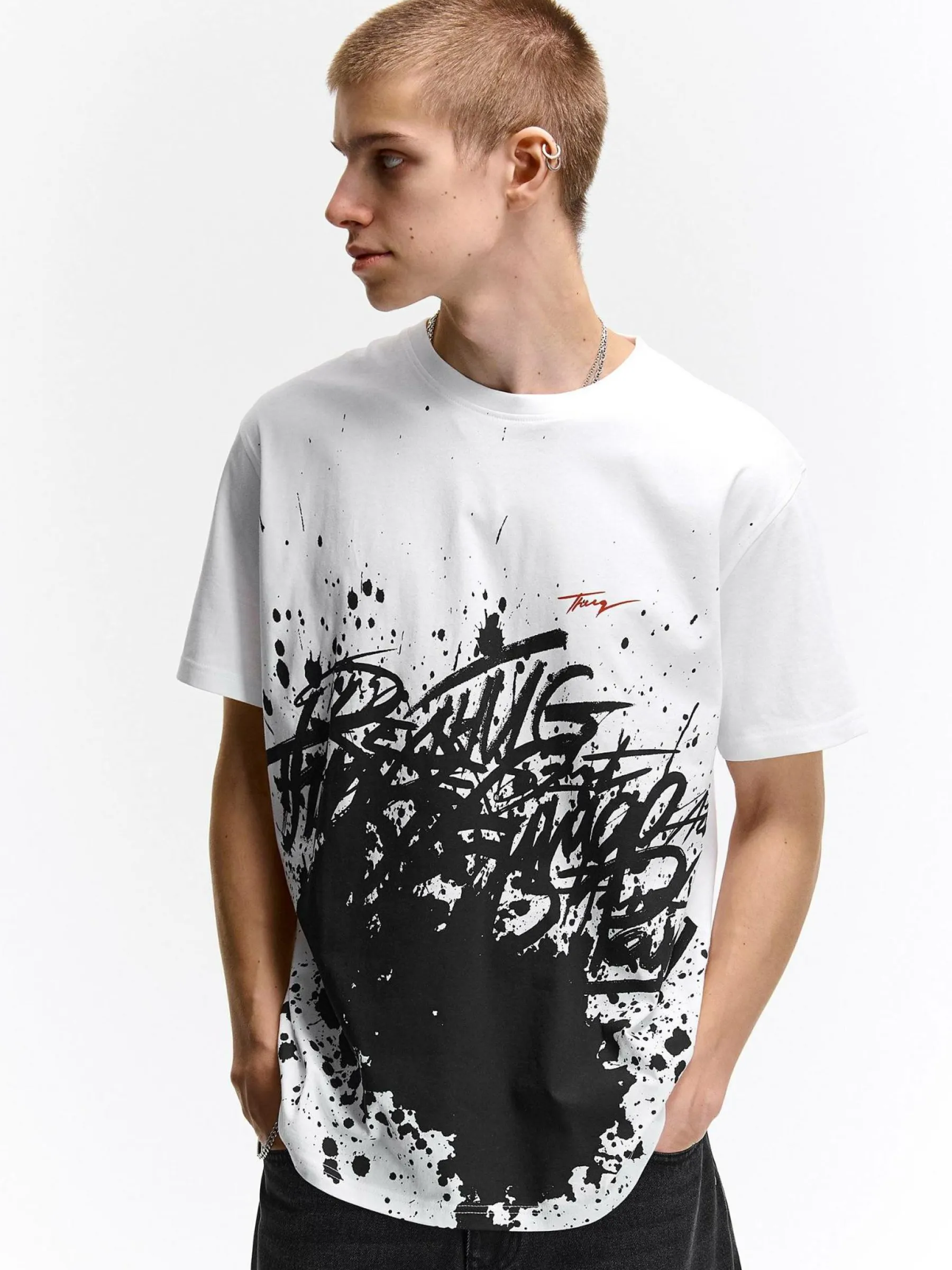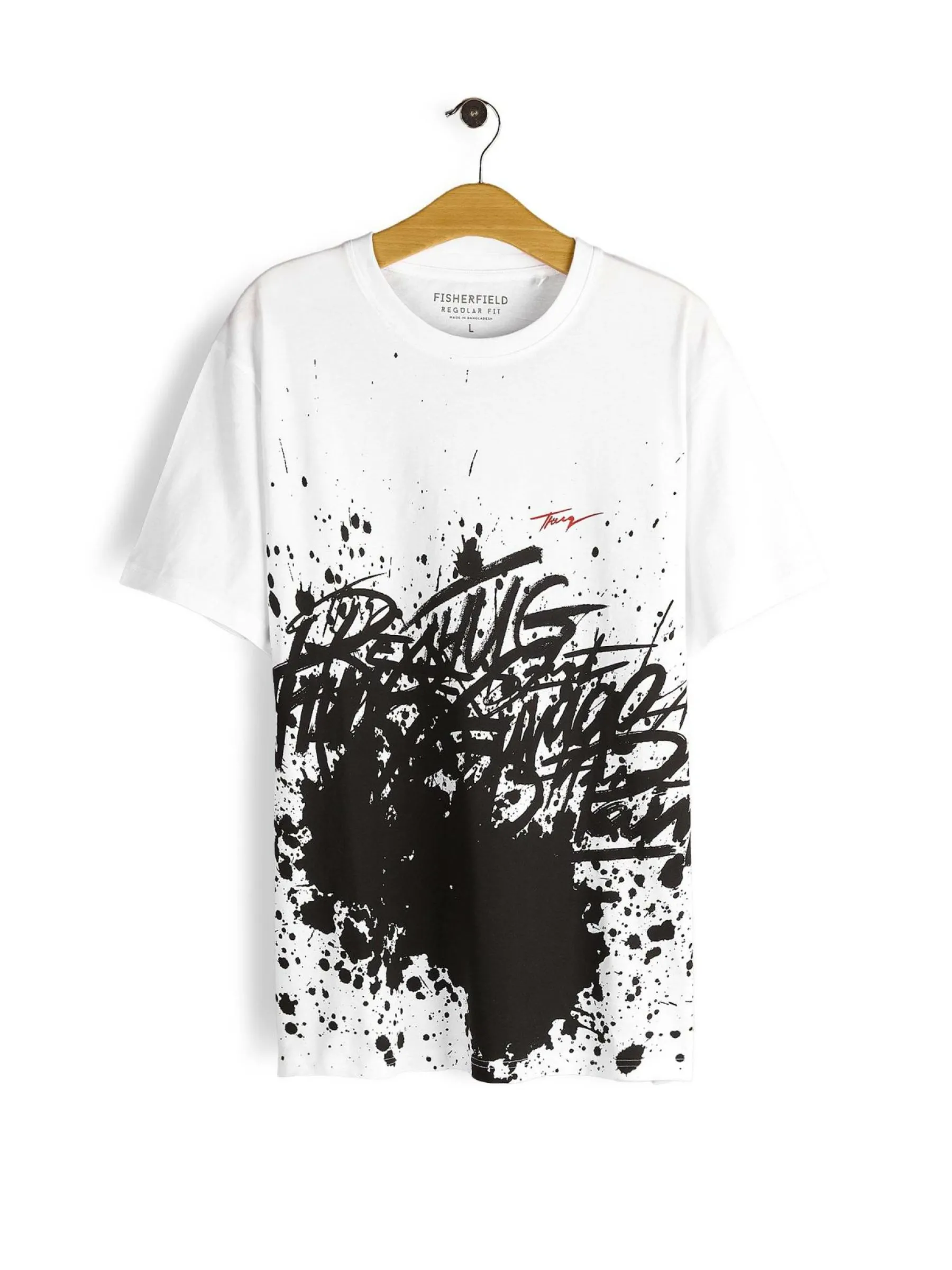 Kolor: białyKrój: regularTyp: koszulkaRekaw: krótki rękawPattern style: z nadrukiemDetal: nad głowąMateriał: bawe…