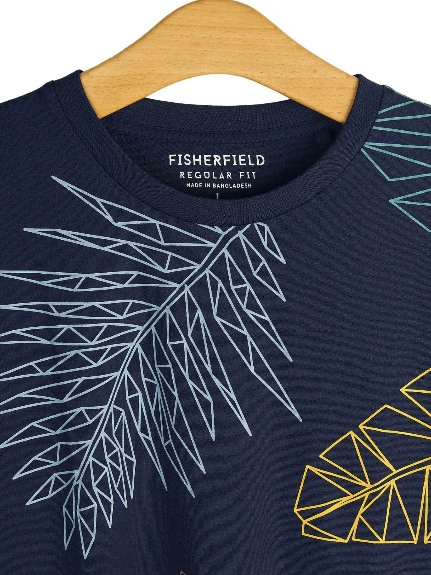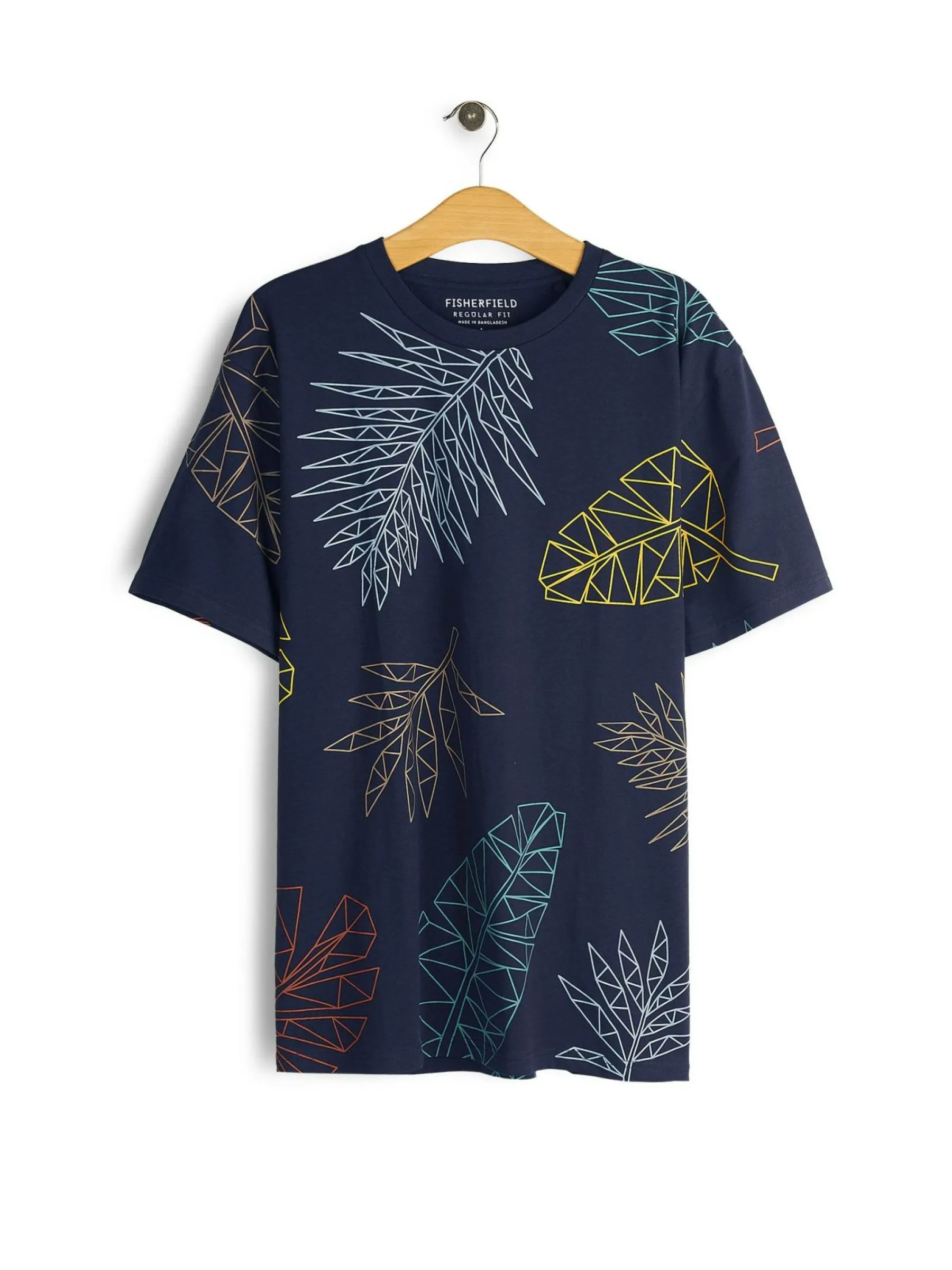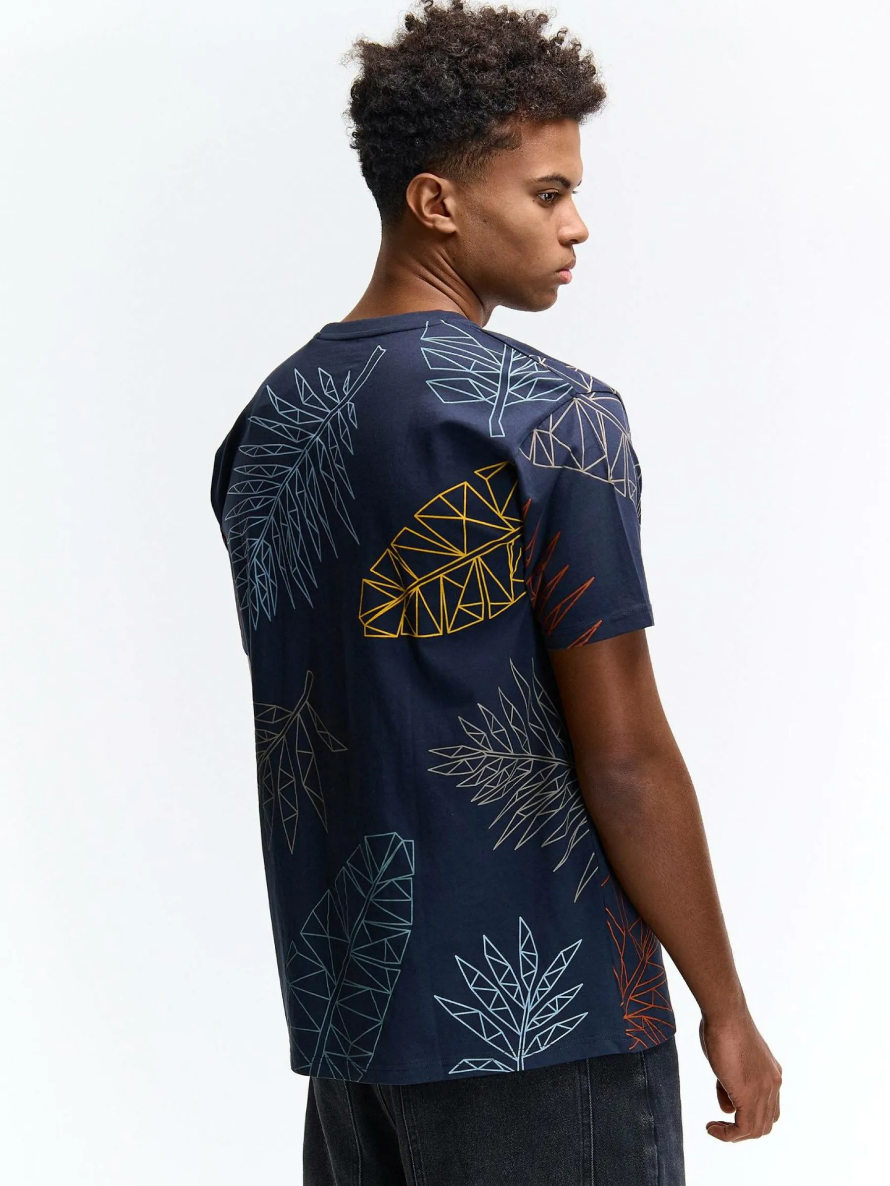 Kolor: granatowyKrój: regularTyp: koszulkaRekaw: krótki rękawPattern style: z nadrukiemDetal: nad głowąMateriał: b…