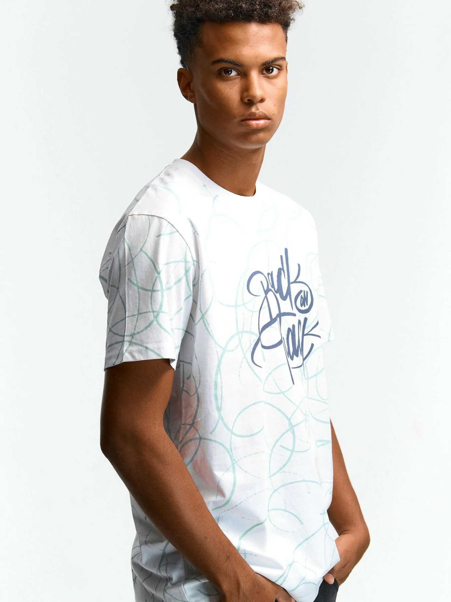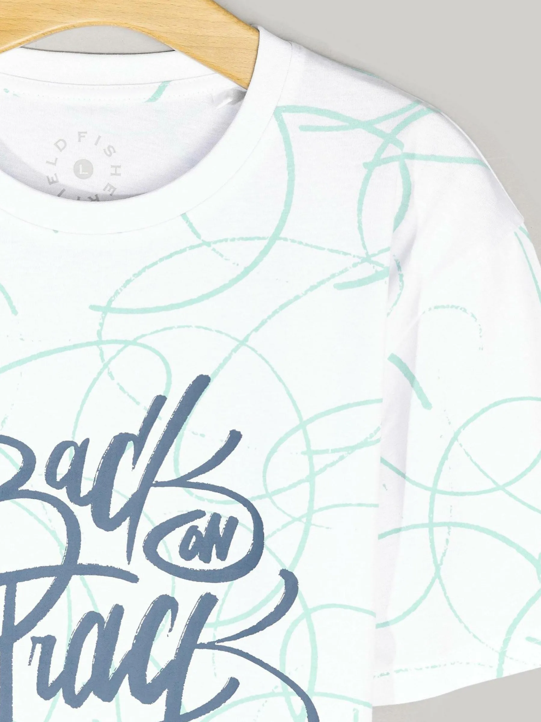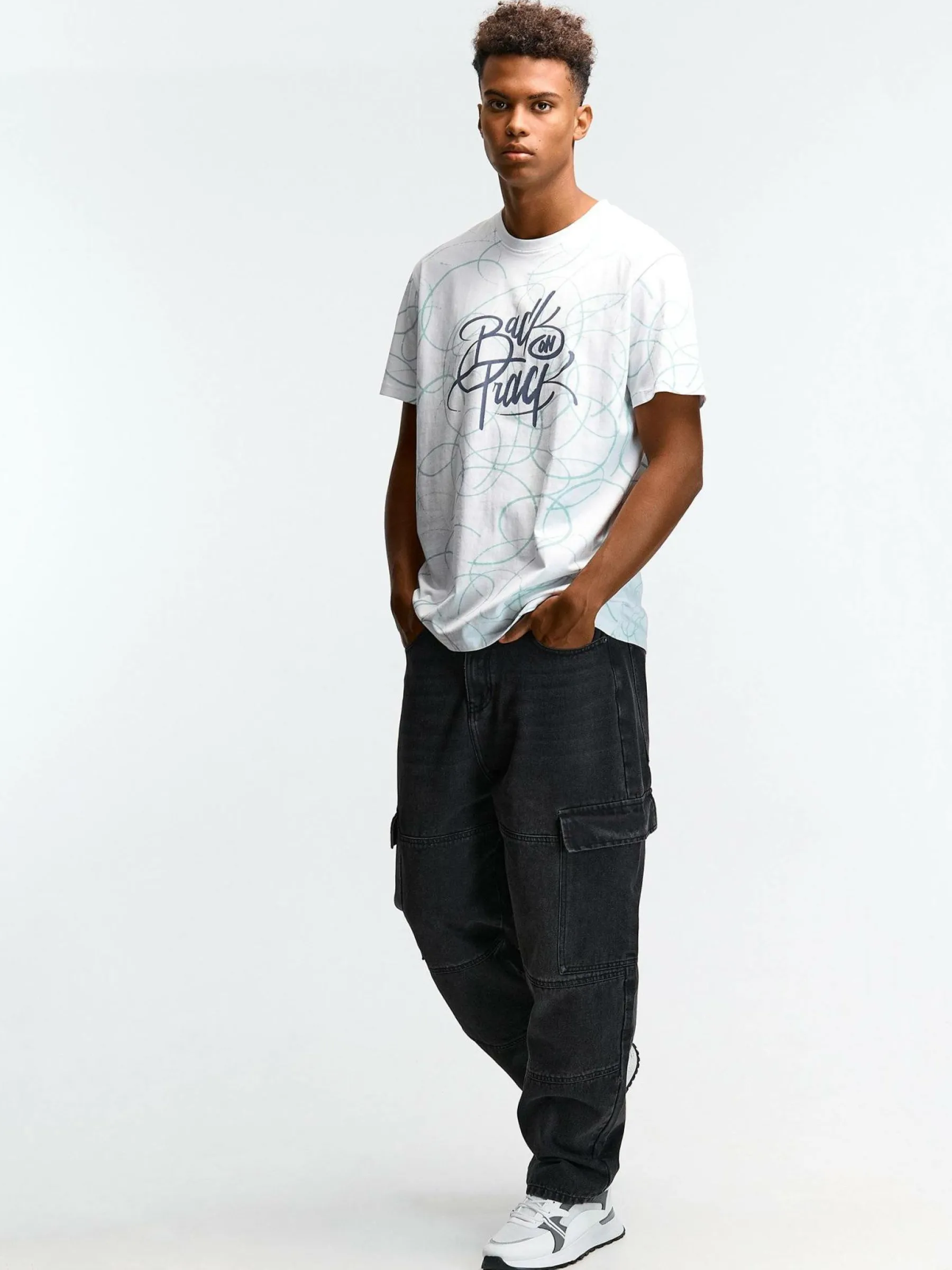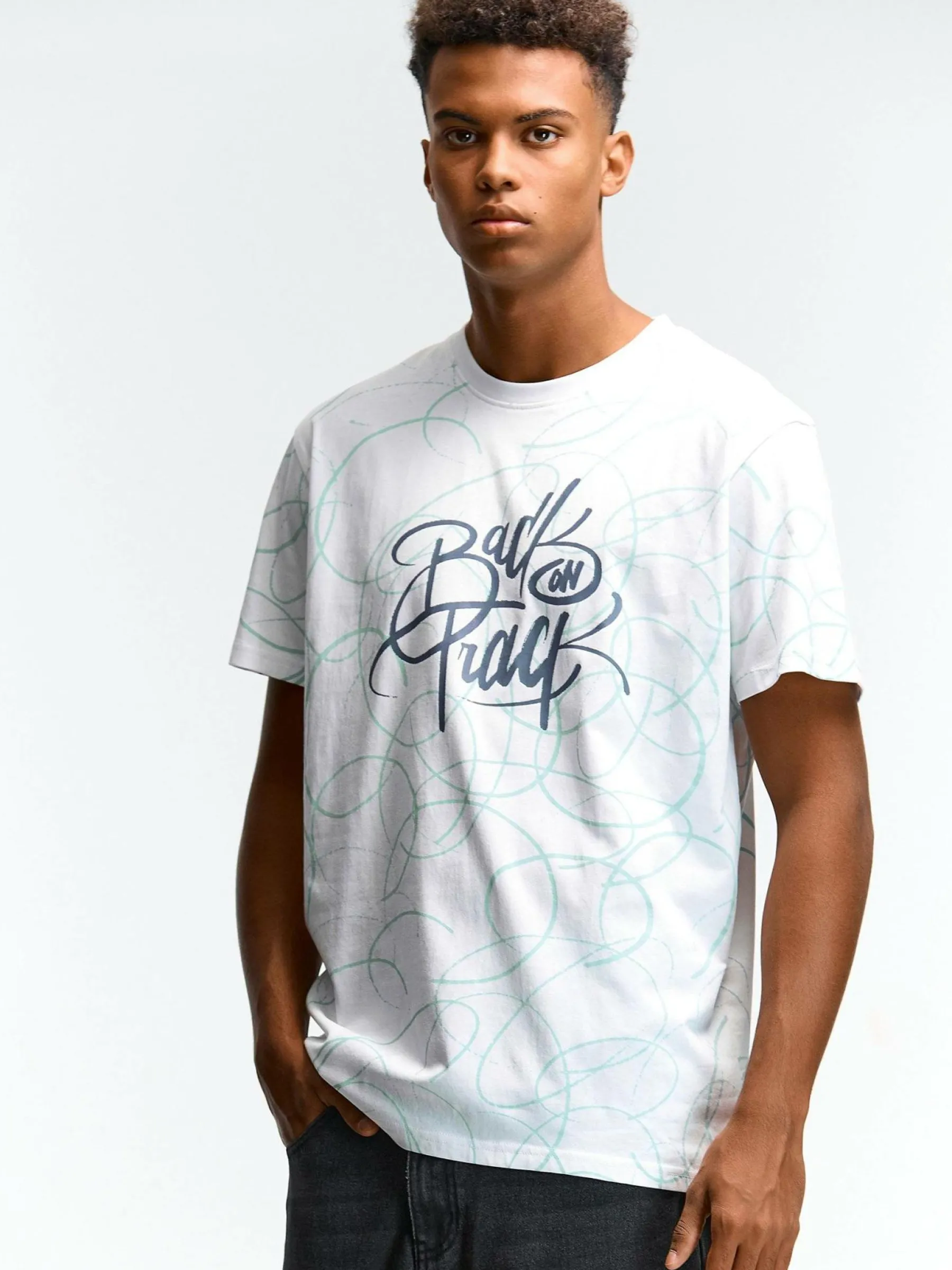 Kolor: białyKrój: regularTyp: koszulkaRekaw: krótki rękawPattern style: z nadrukiemDetal: nad głowąMateriał: bawe…
