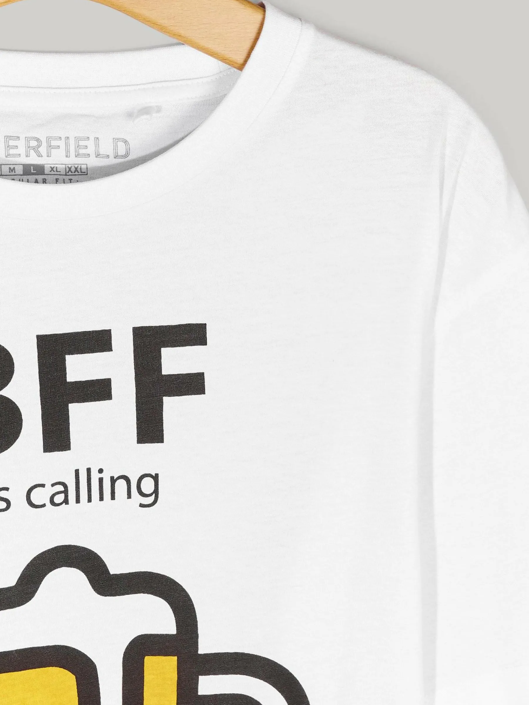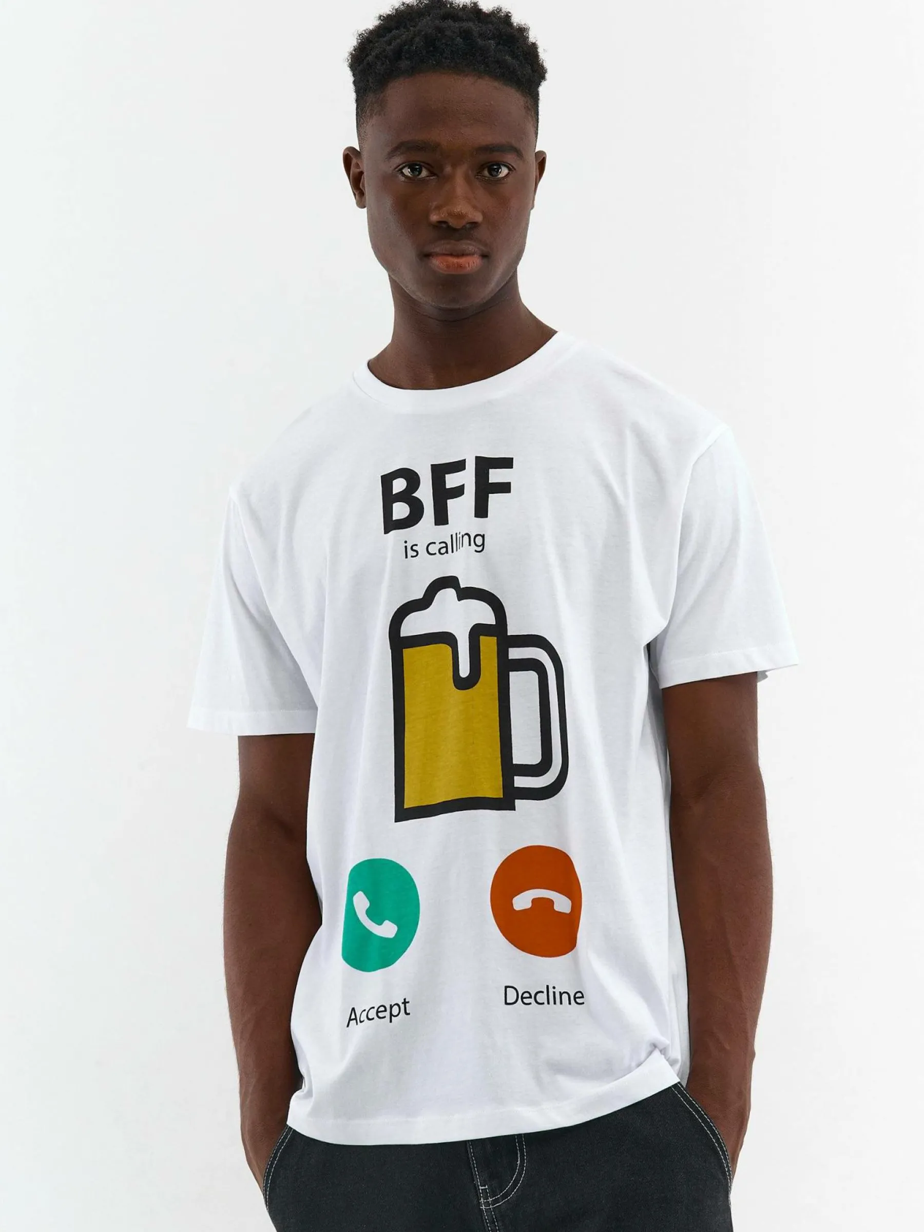 Kolor: białyKrój: regularTyp: koszulkaRekaw: krótki rękawPattern style: z nadrukiemDetal: nad głowąMateriał: bawe…