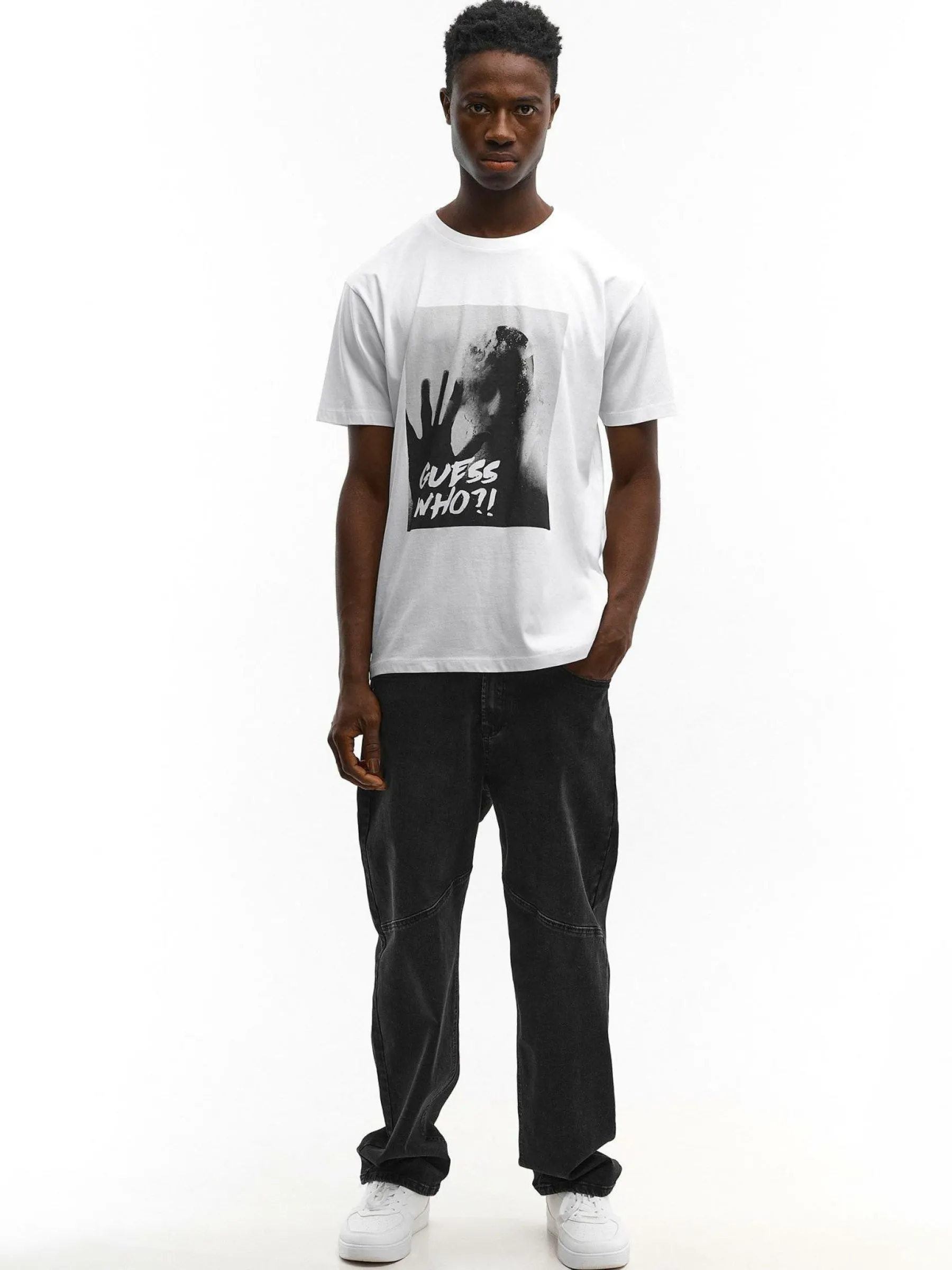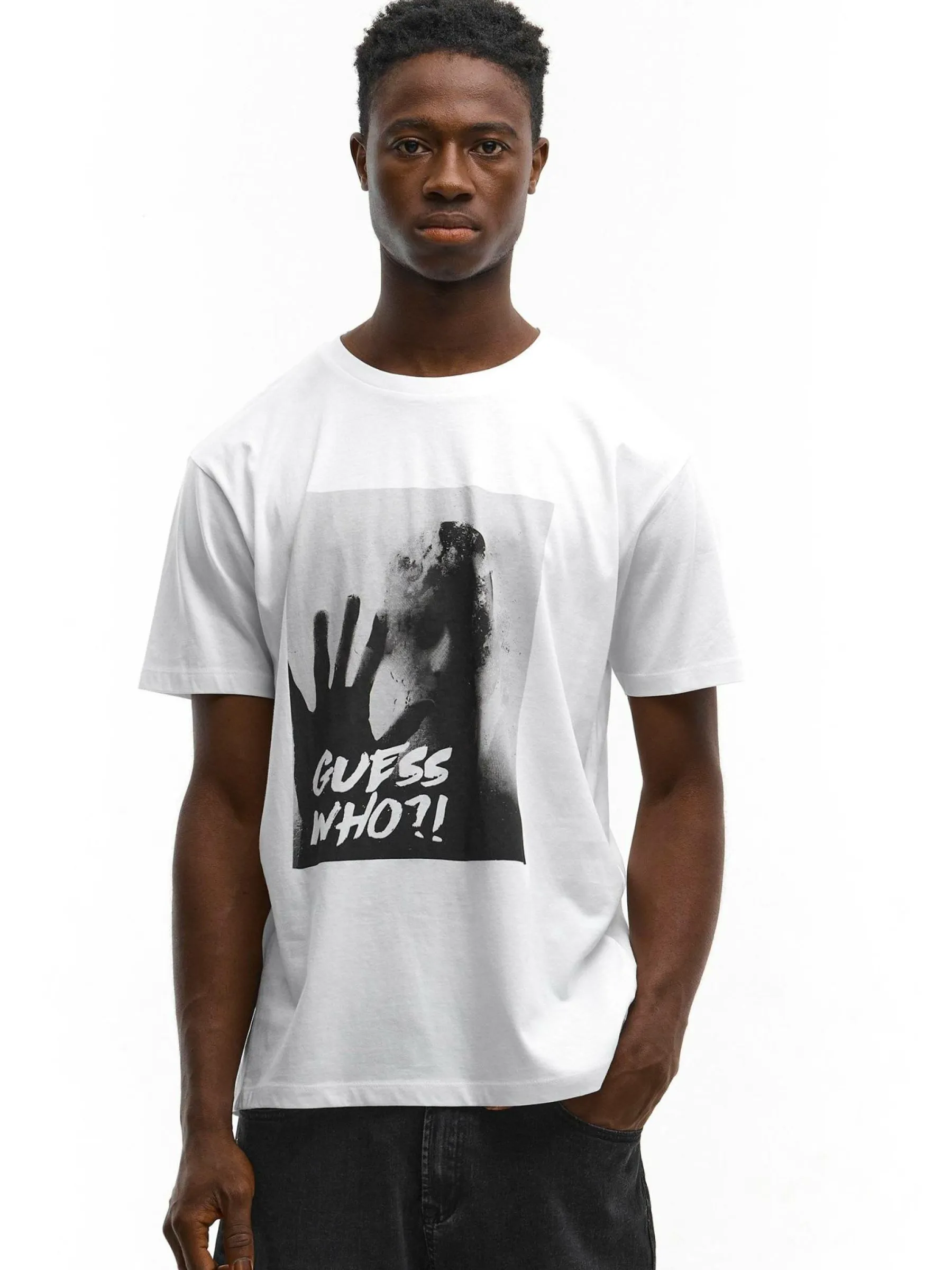 Kolor: białyKrój: regularTyp: koszulkaRekaw: krótki rękawPattern style: z nadrukiemDetal: nad głowąMateriał: bawe…