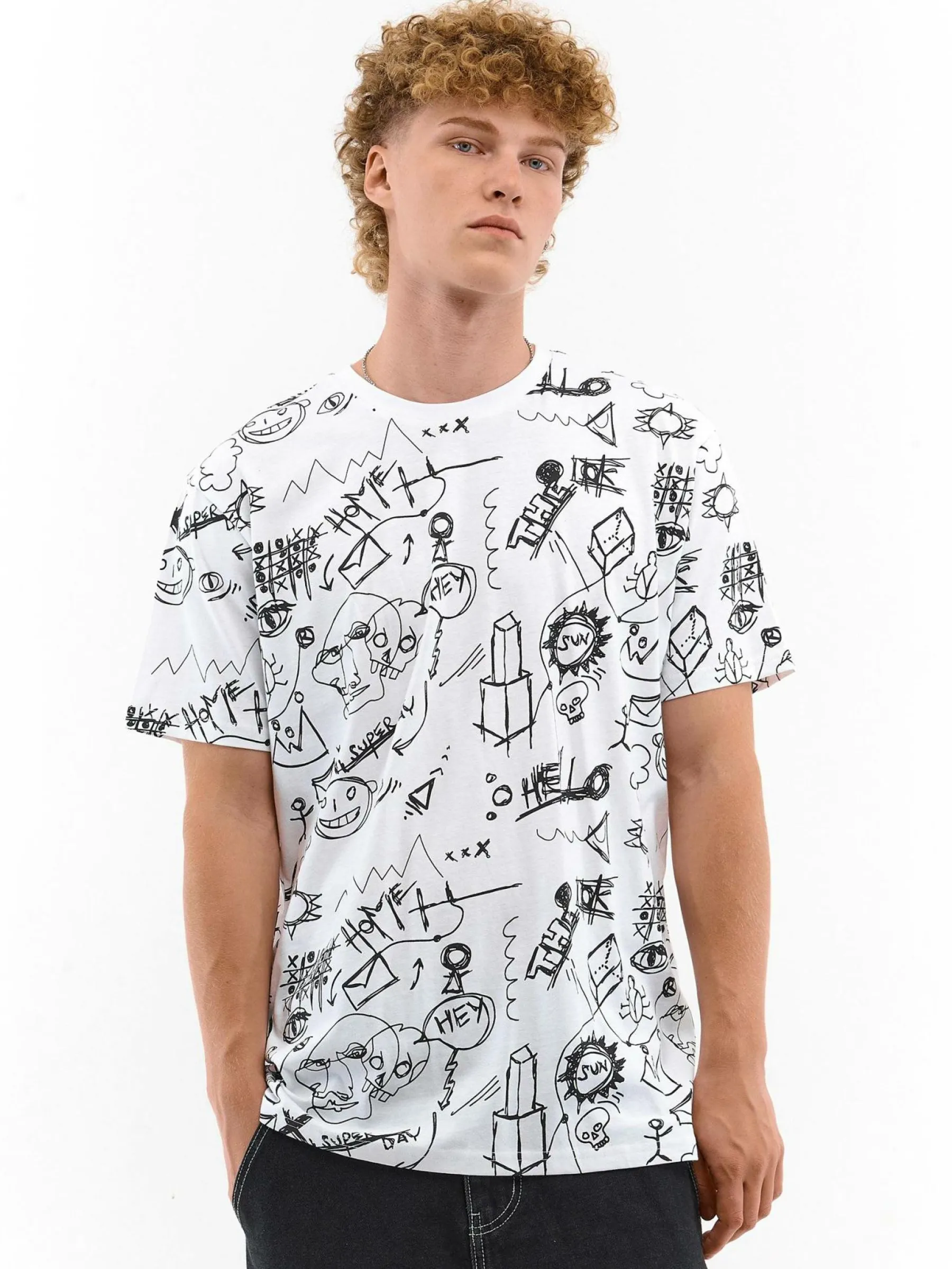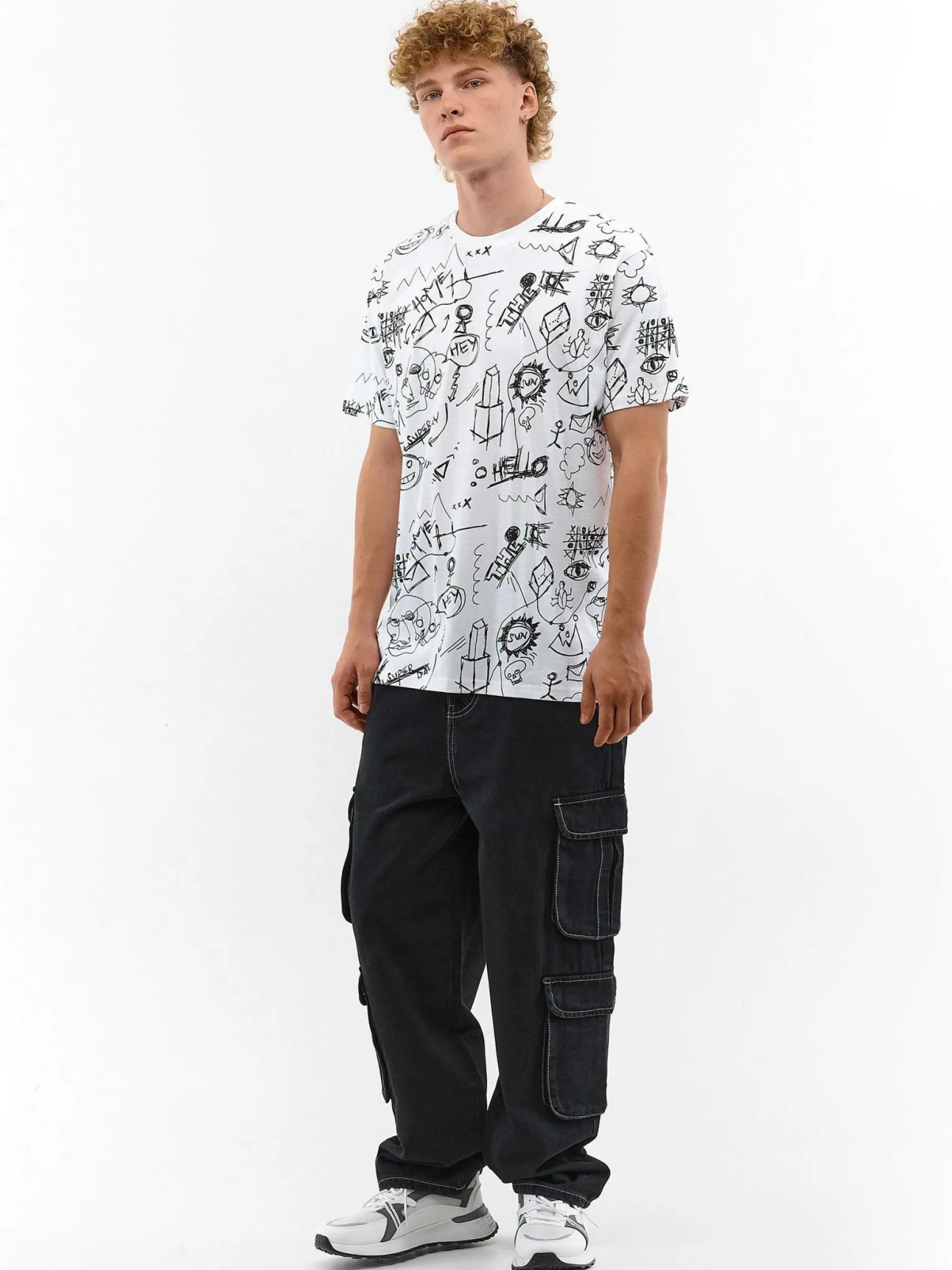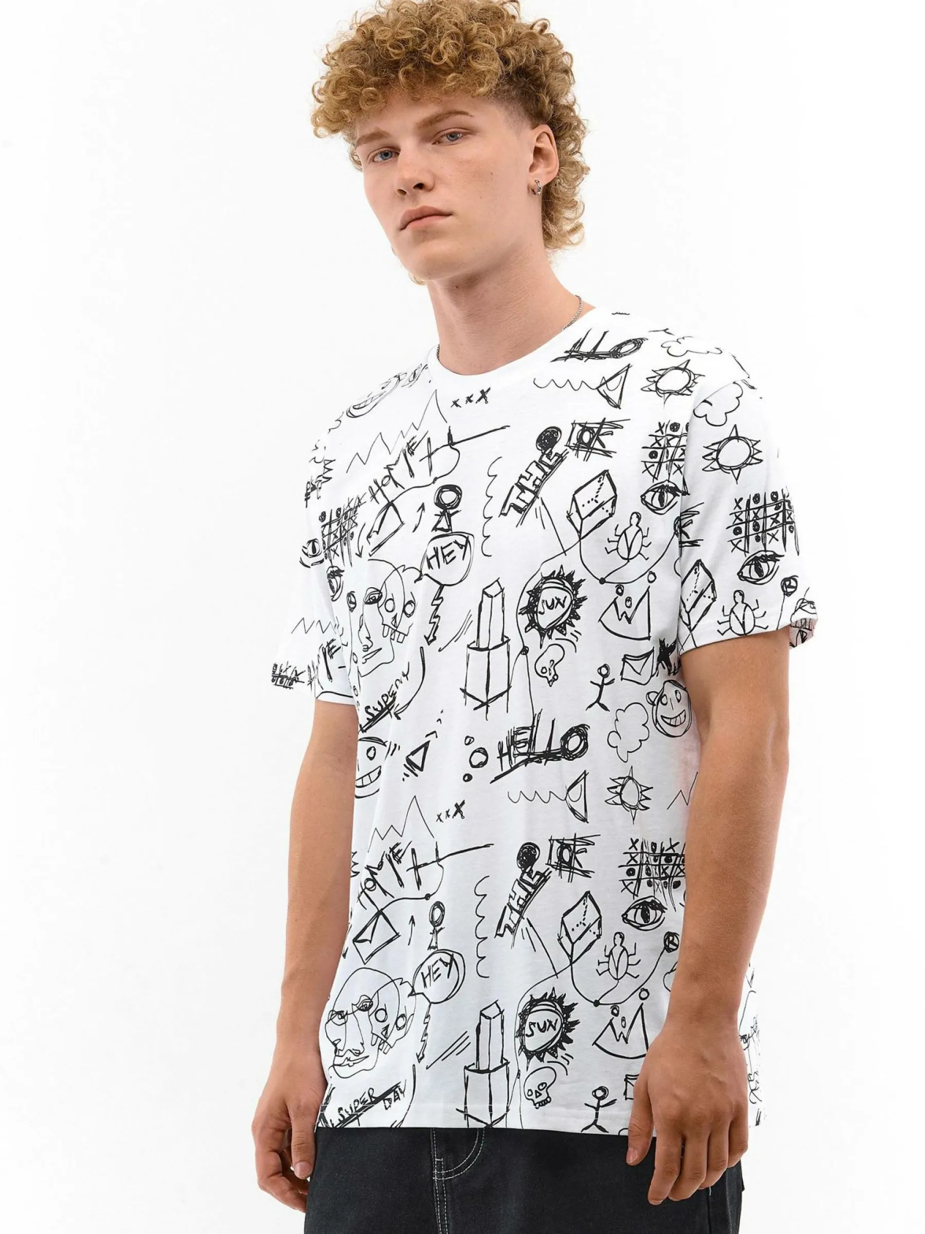 Kolor: białyKrój: regularTyp: koszulkaRekaw: krótki rękawPattern style: z nadrukiemDetal: nad głowąMateriał: bawe…