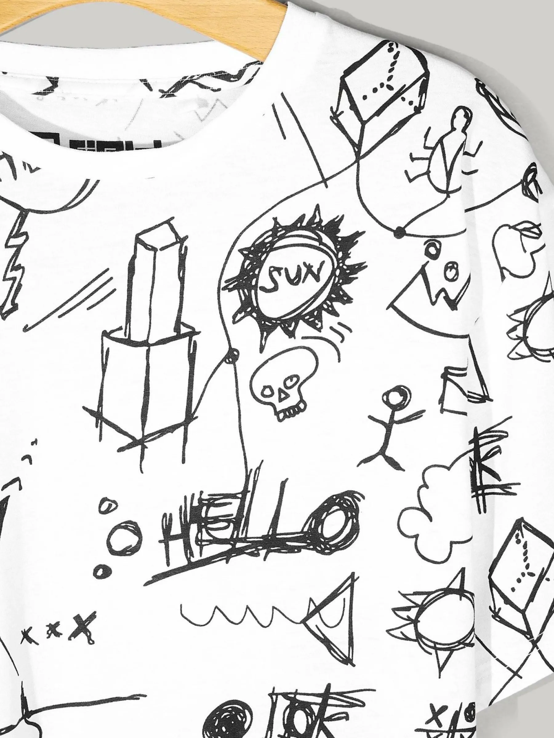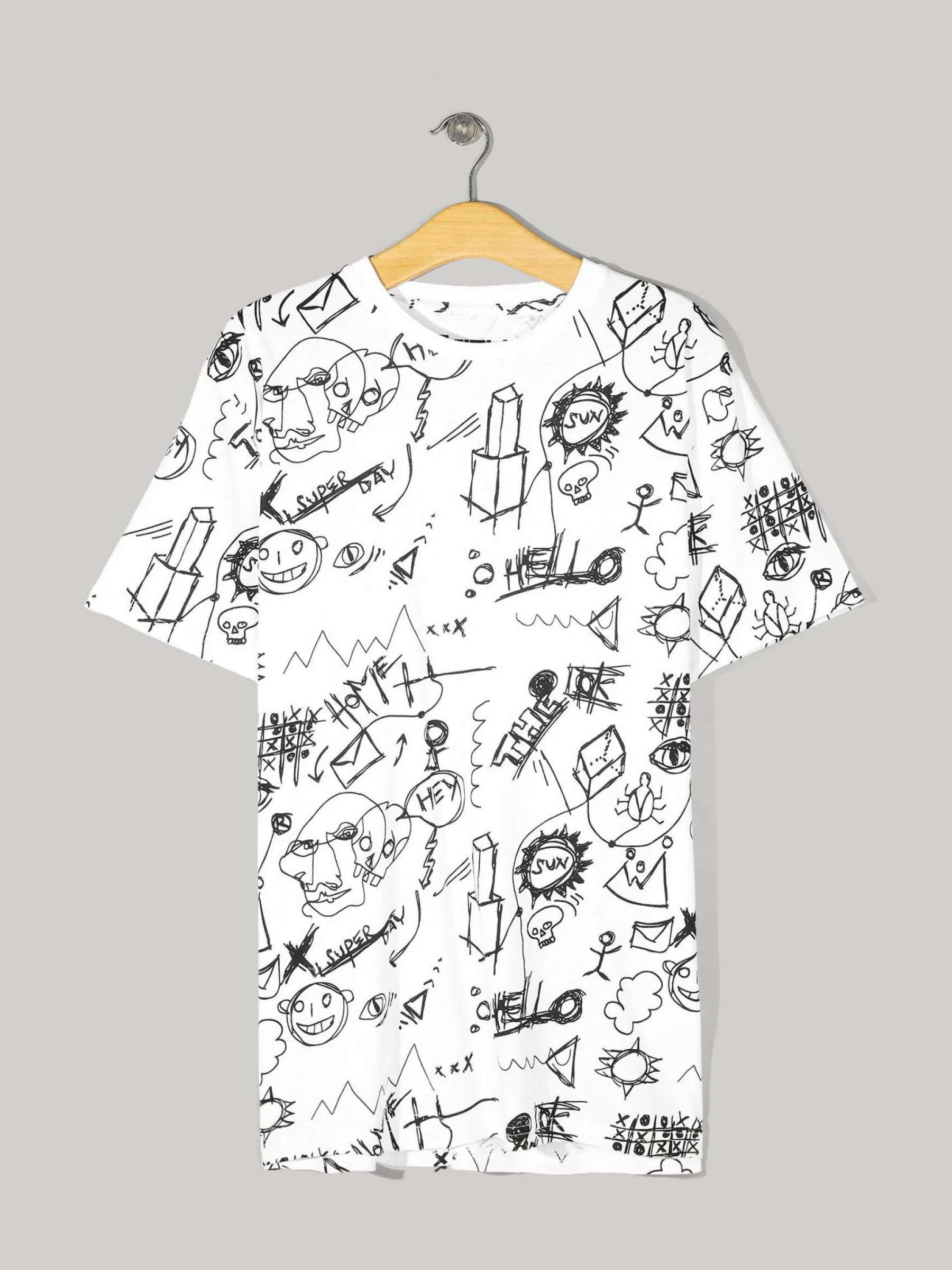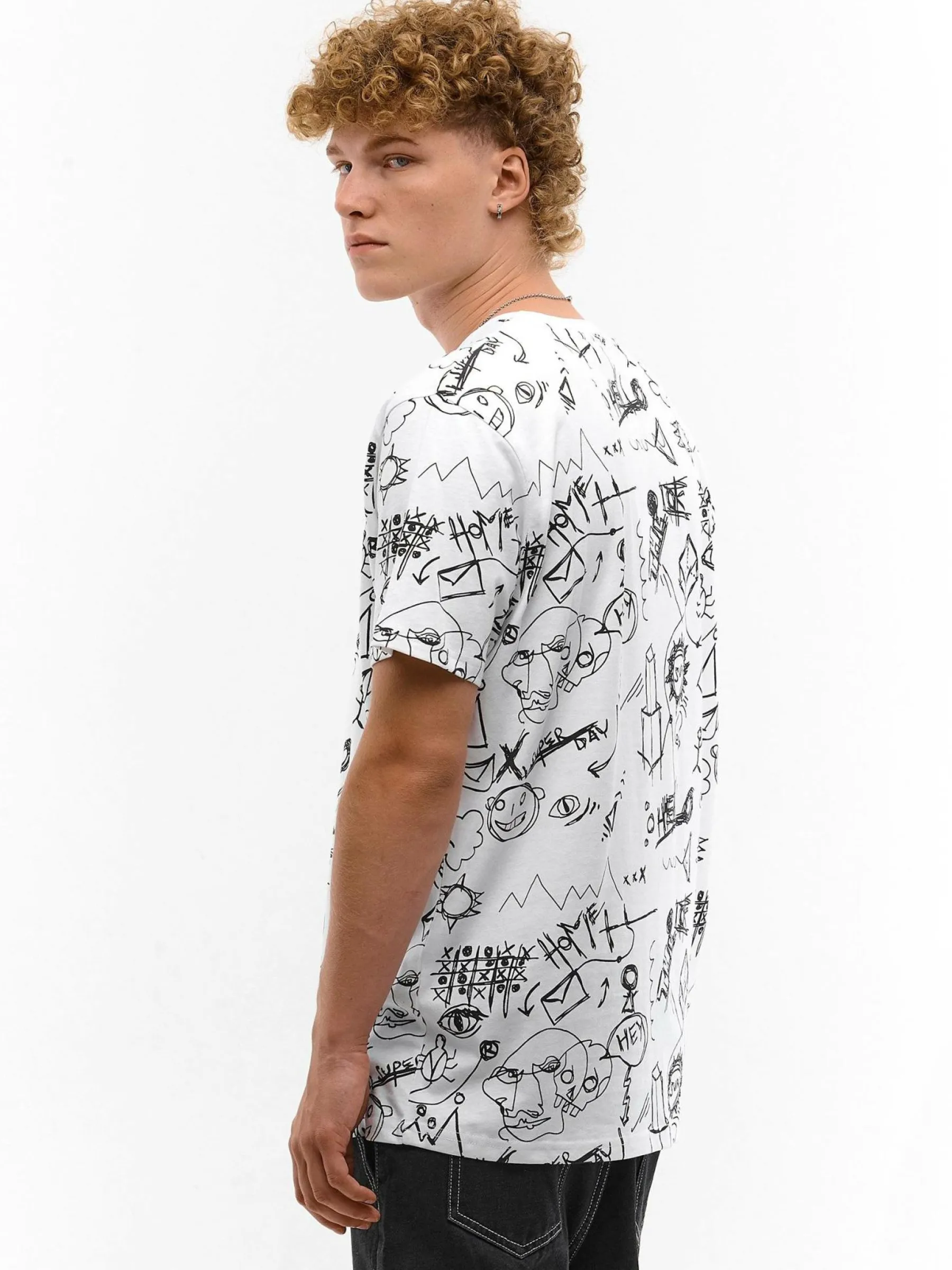 Kolor: białyKrój: regularTyp: koszulkaRekaw: krótki rękawPattern style: z nadrukiemDetal: nad głowąMateriał: bawe…