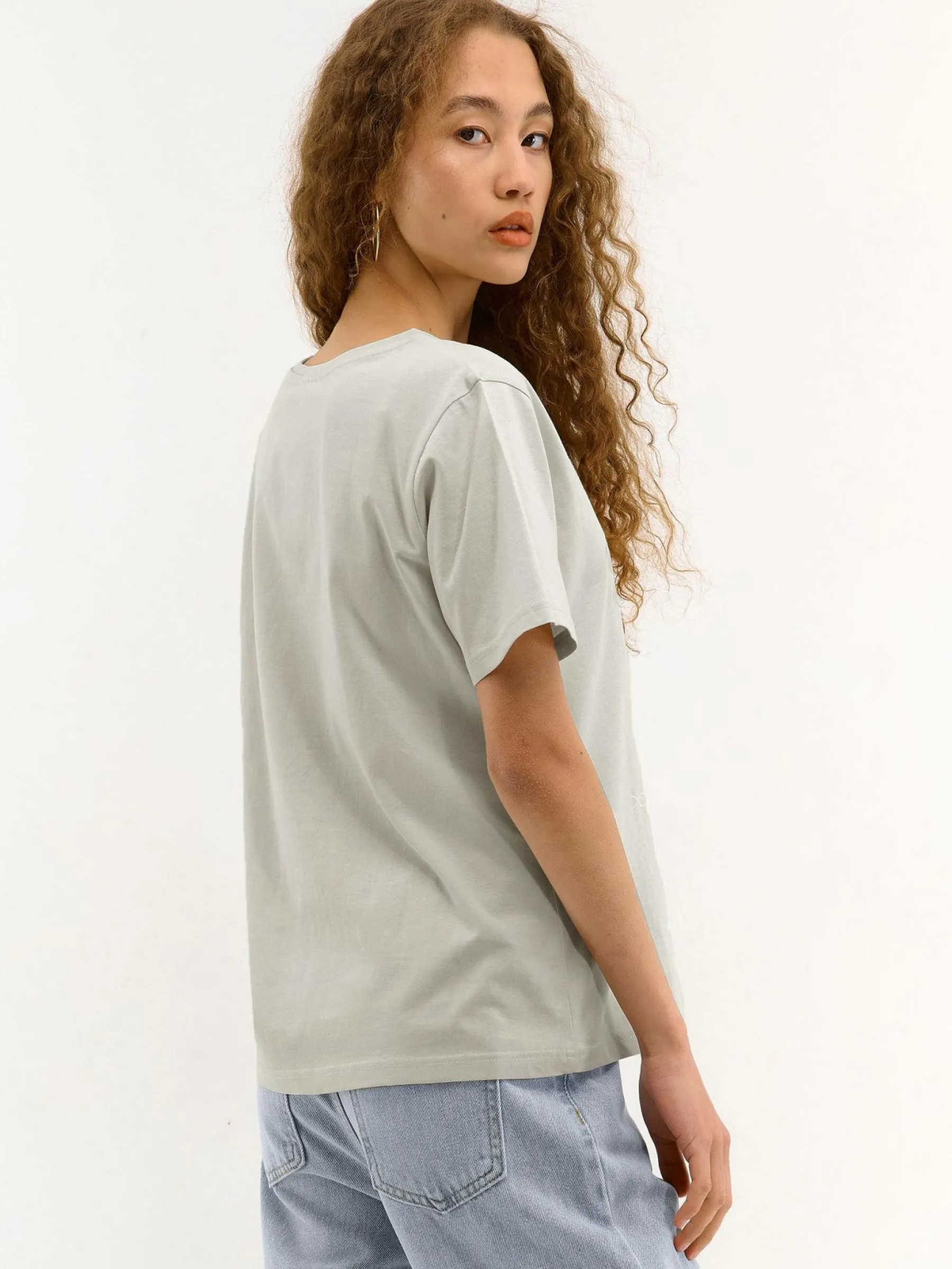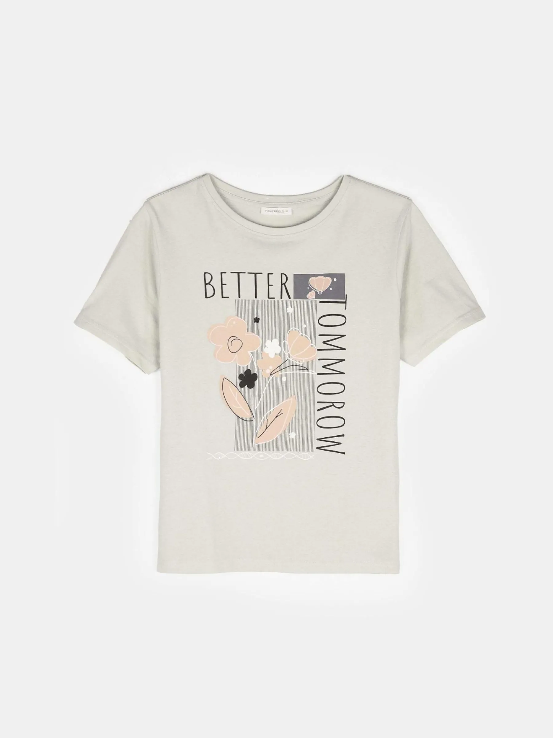 Kolor: beżowyKrój: regularTyp: koszulkaRekaw: krótki rękawDługość: krótkiPattern style: pojedynczy kolorDetal: n…