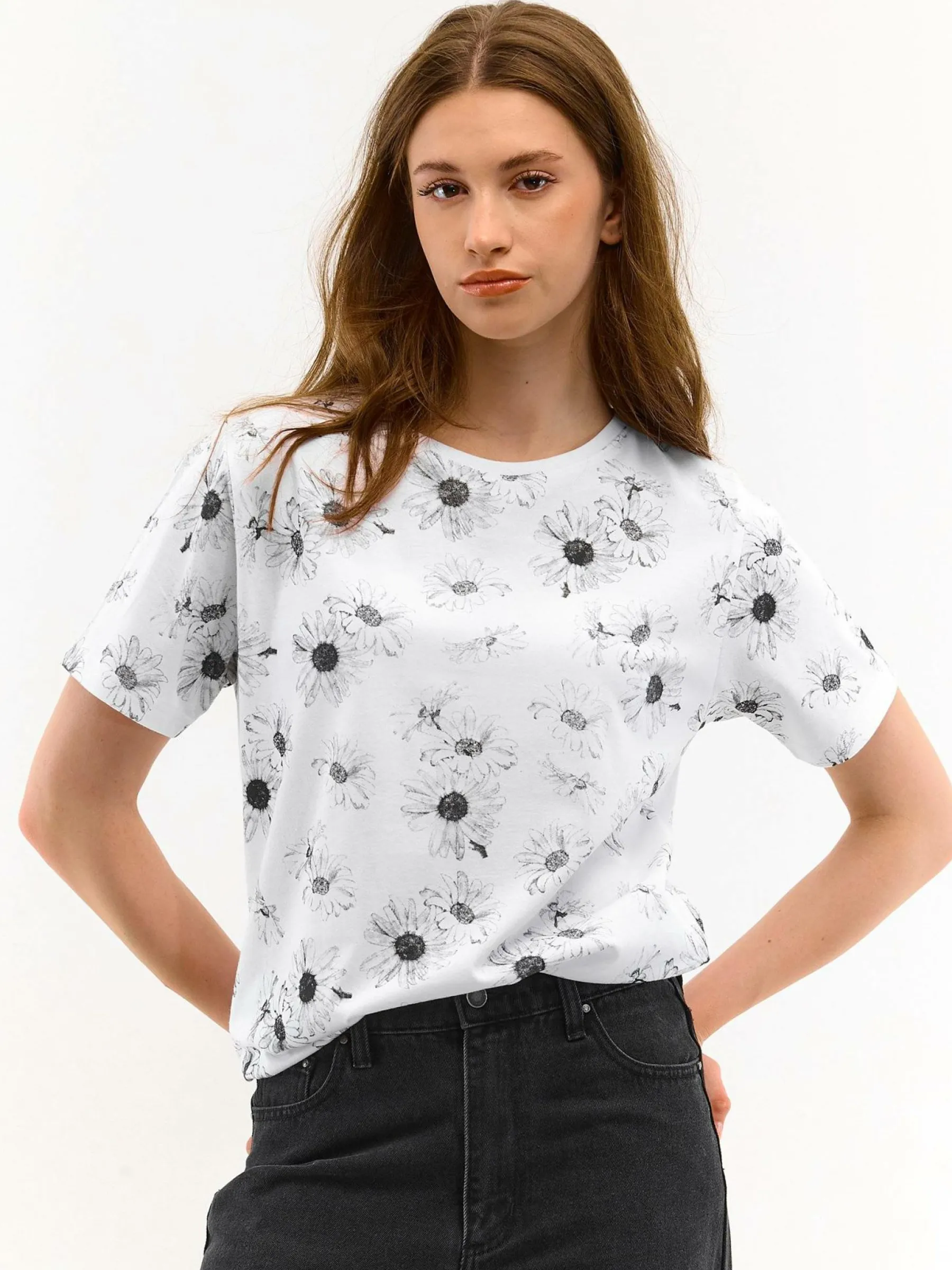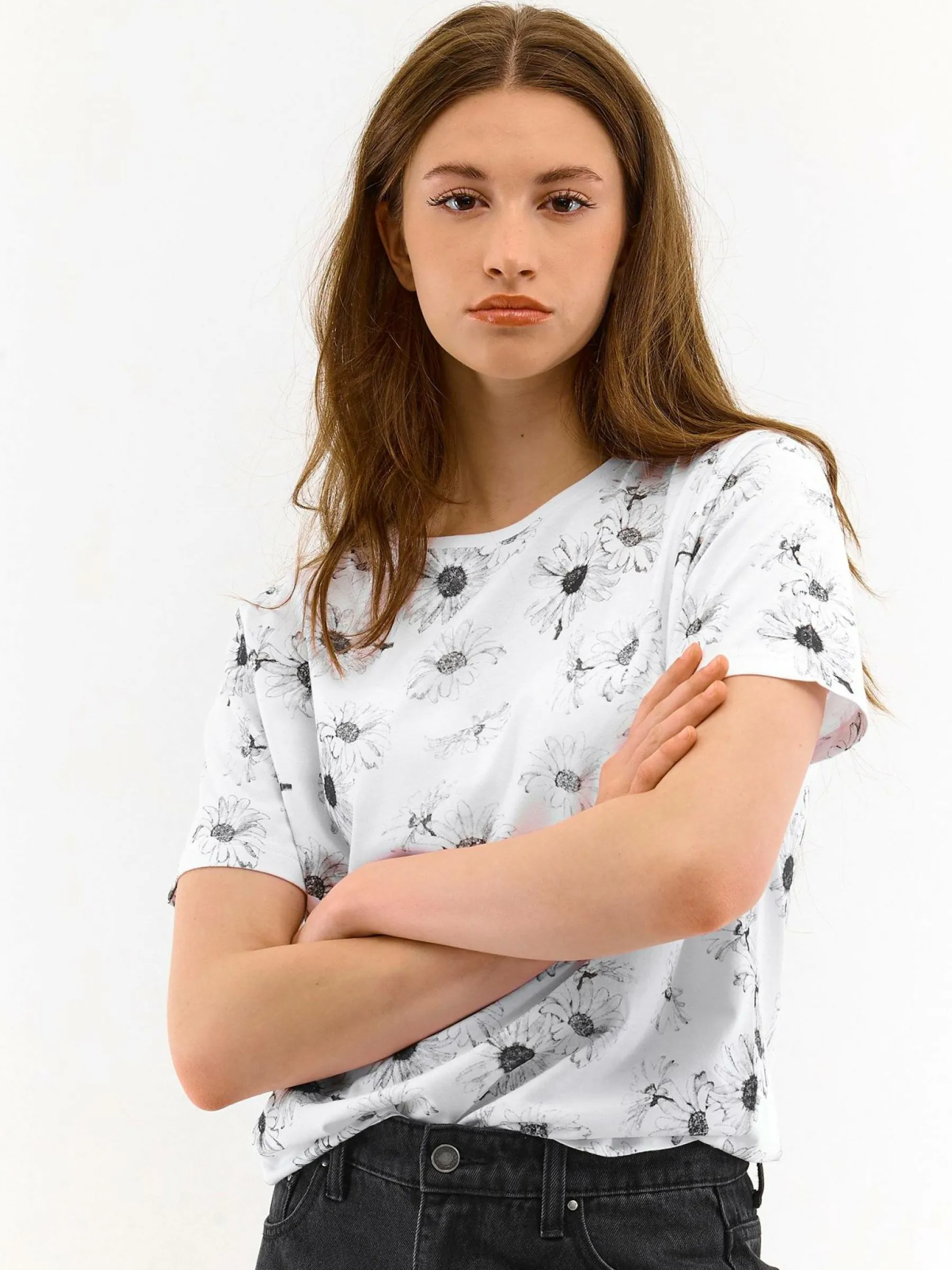 Kolor: białyKrój: regularTyp: koszulkaRekaw: krótki rękawDługość: krótkiPattern style: z nadrukiem, kwiatoweDeta…