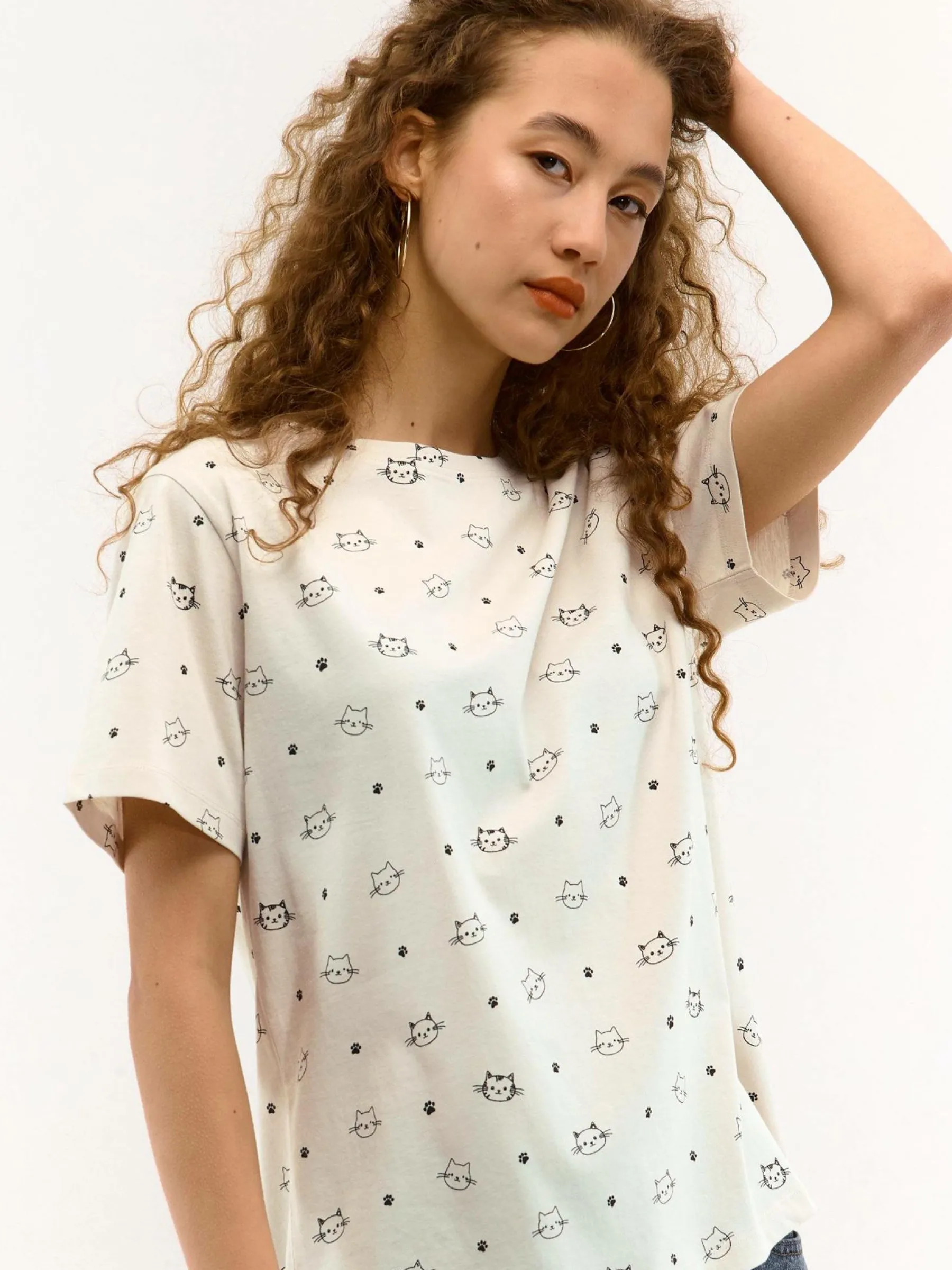 GATE Bawełniana koszulka z nadrukiem| Koszulki I Topy·Koszulki|Koszulki I Topy·Koszulki Z Nadrukiem