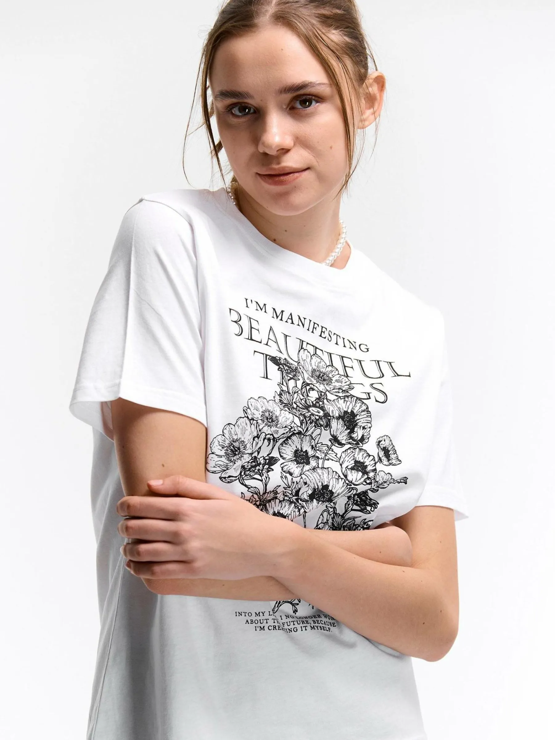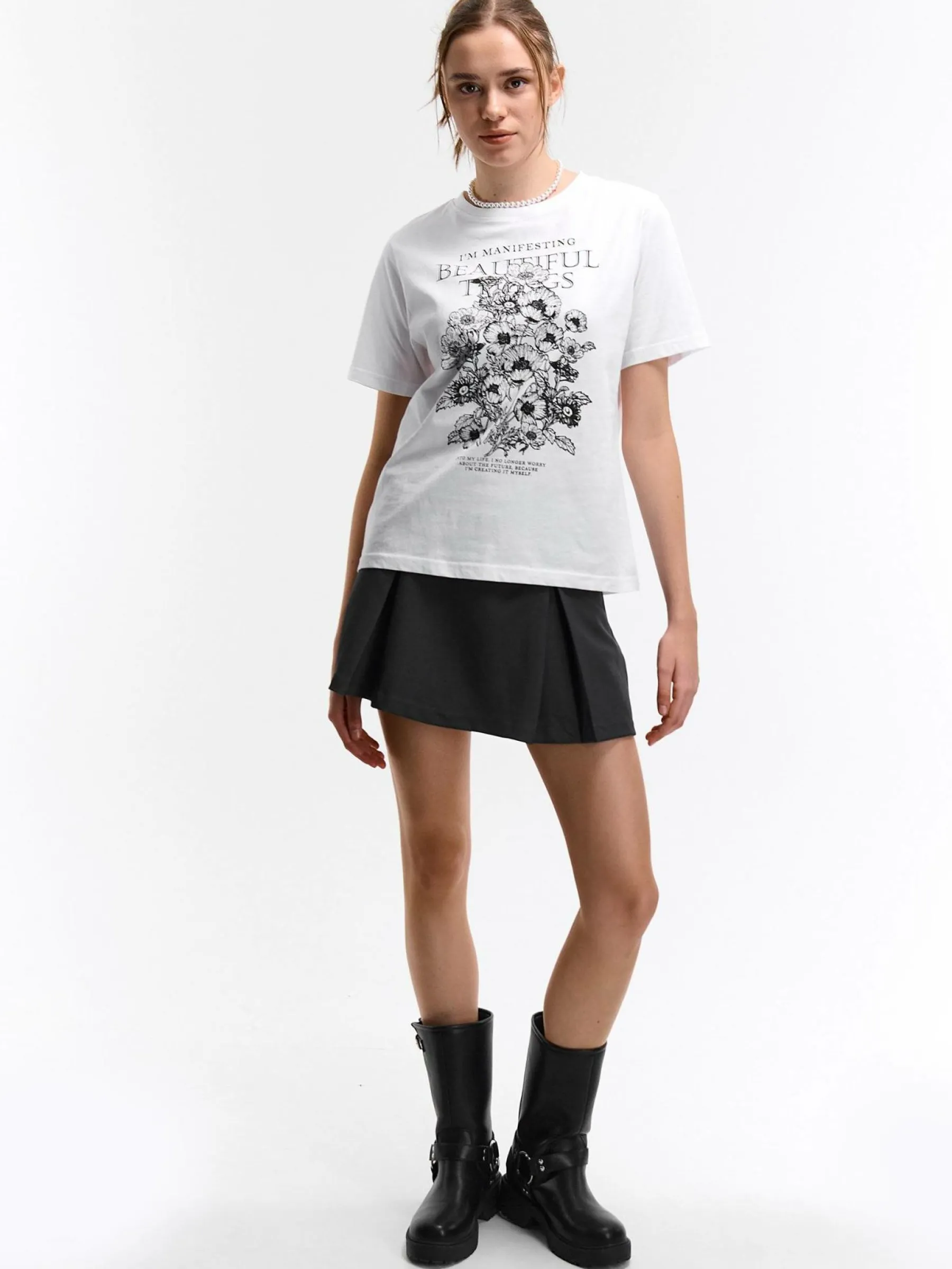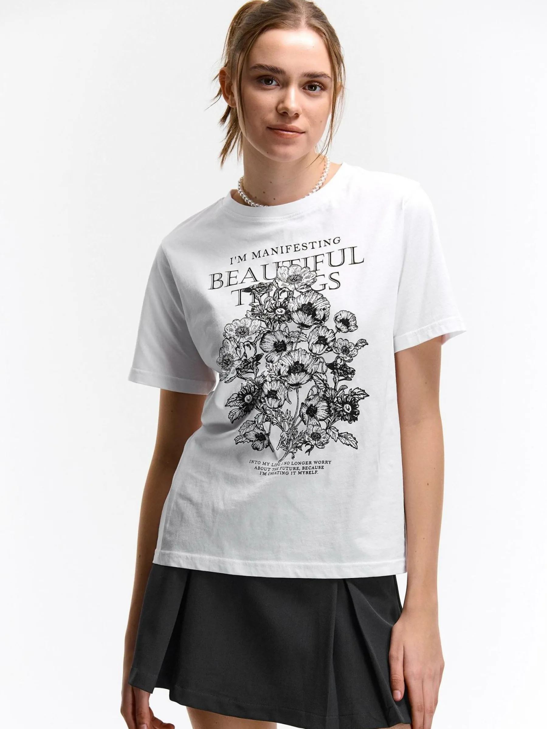 Kolor: białyKrój: regularTyp: koszulkaRekaw: krótki rękawDługość: krótkiPattern style: z nadrukiemDetal: nad gł…