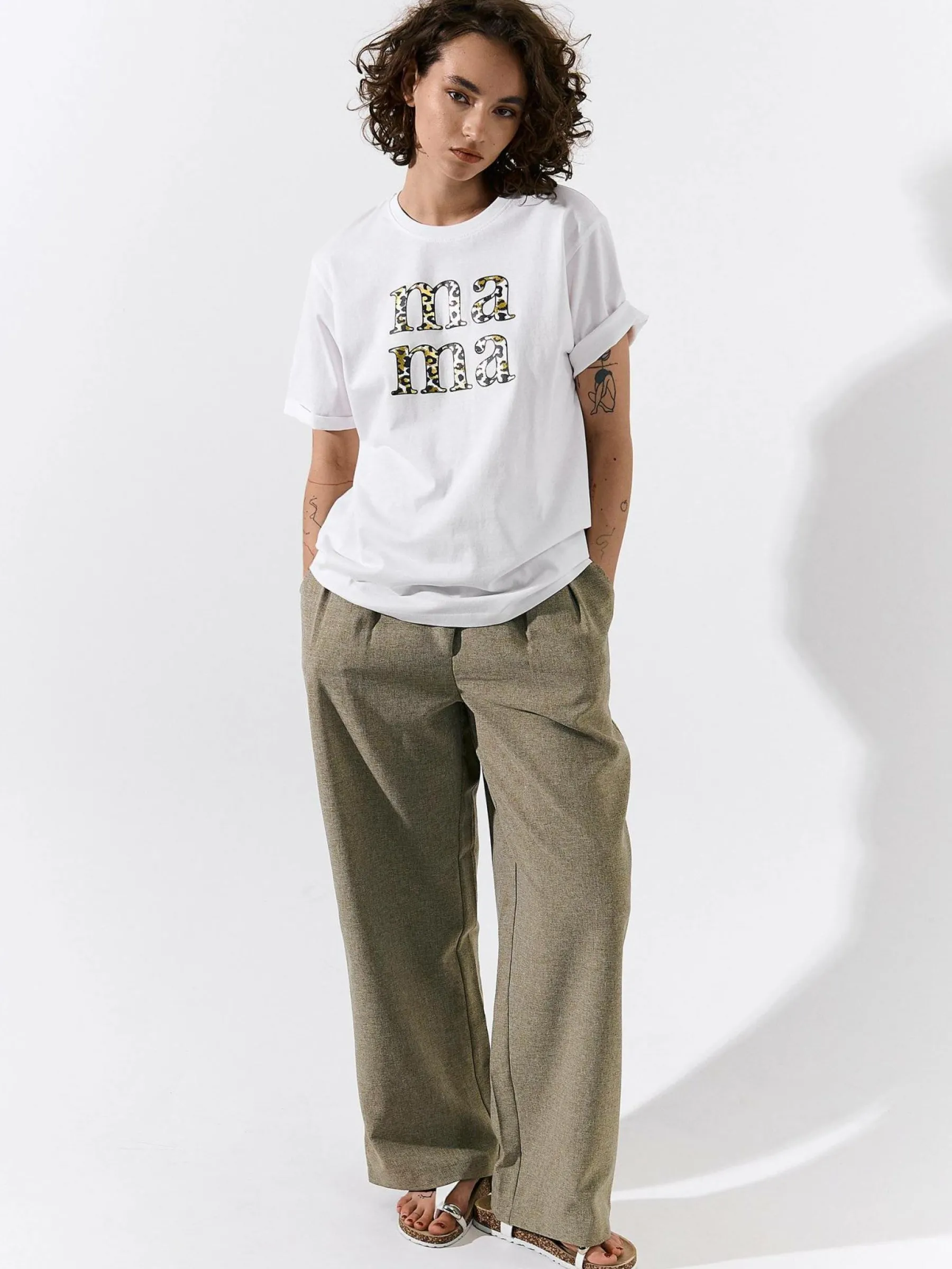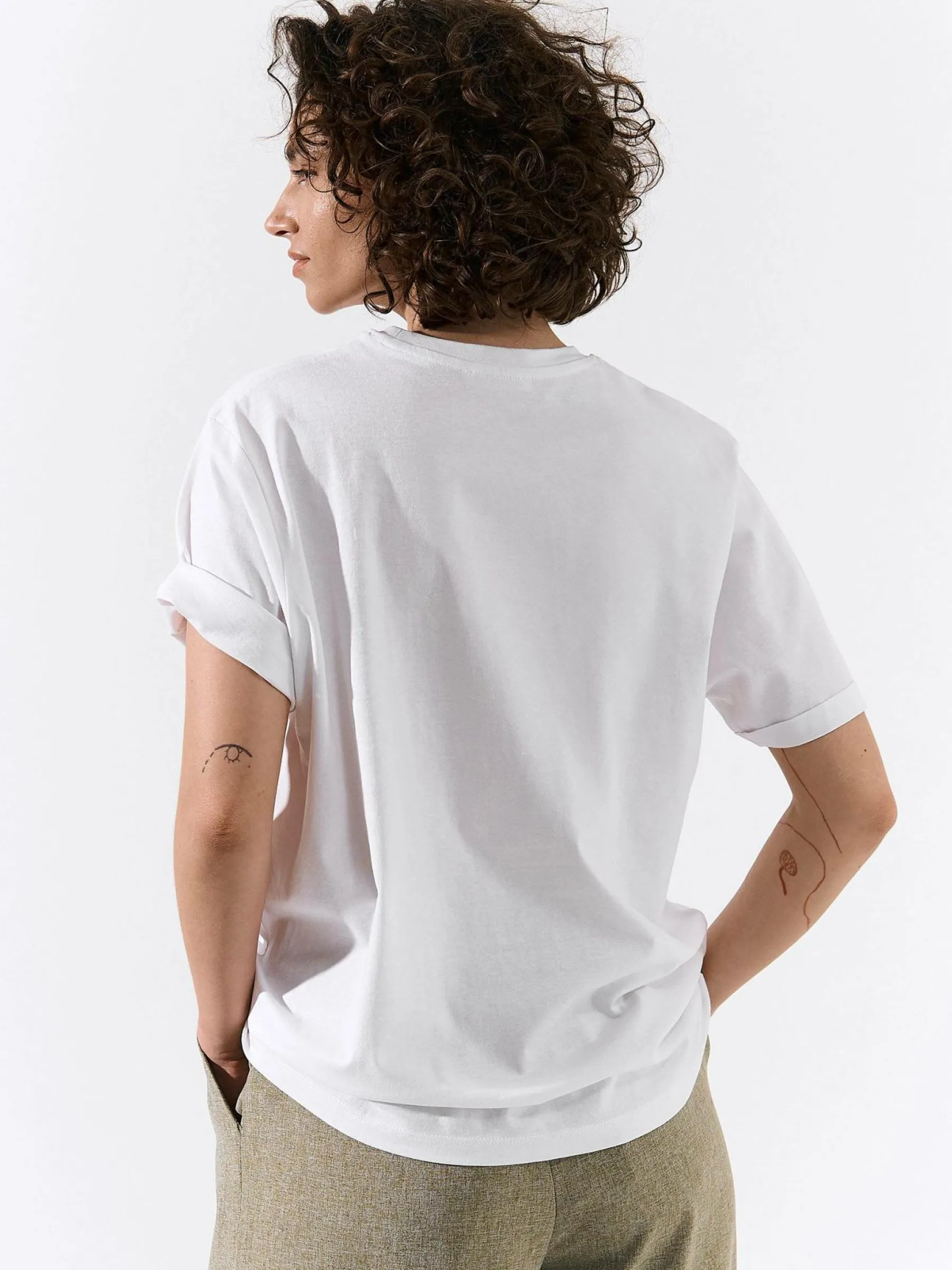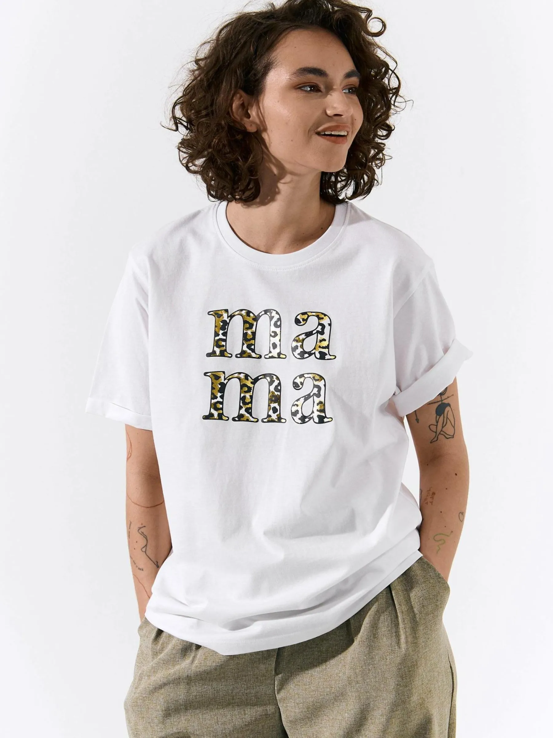 Kolor: białyKrój: regularTyp: koszulkaRekaw: krótki rękawDługość: krótkiPattern style: z napisemDetal: nad głow…
