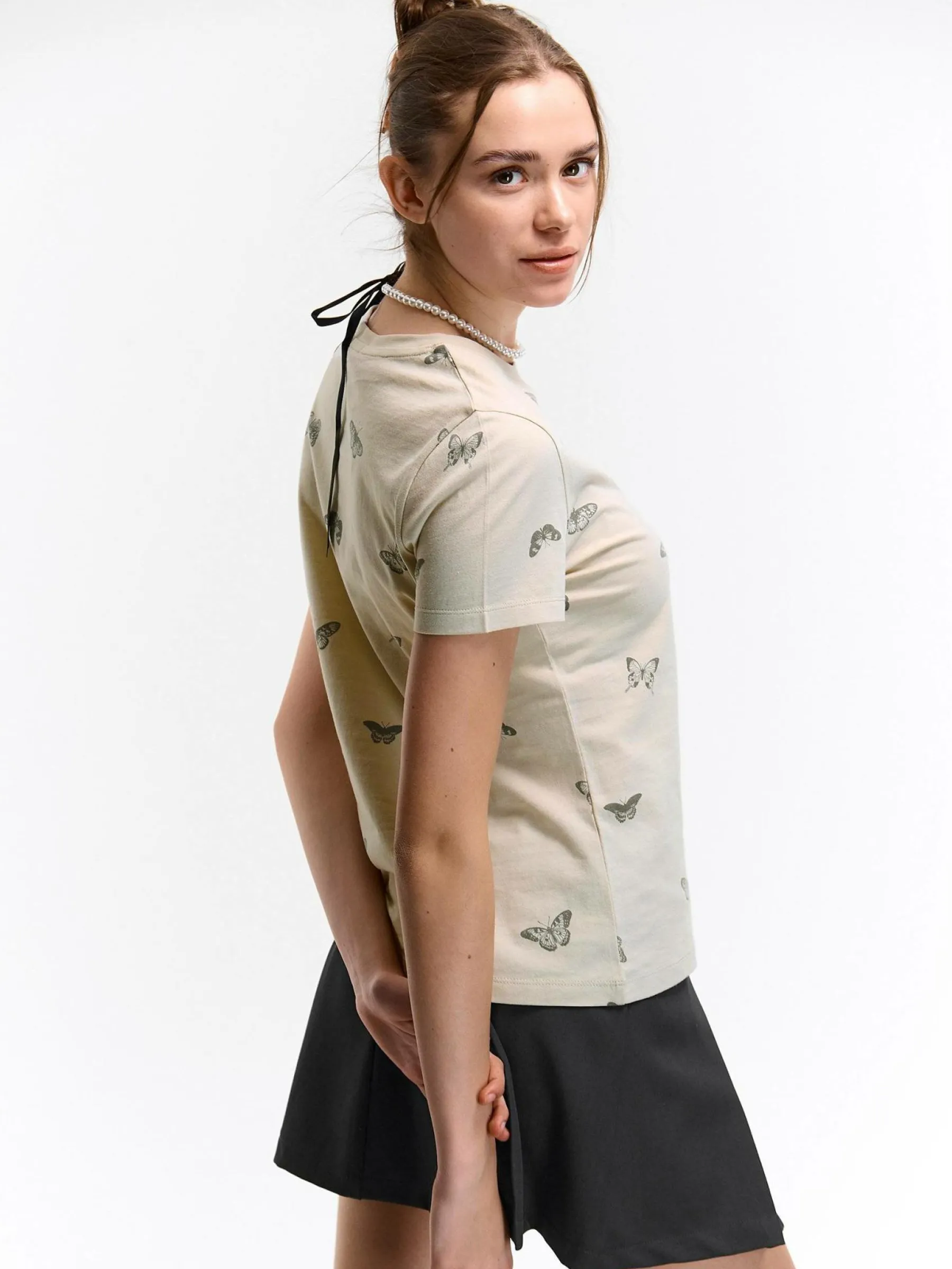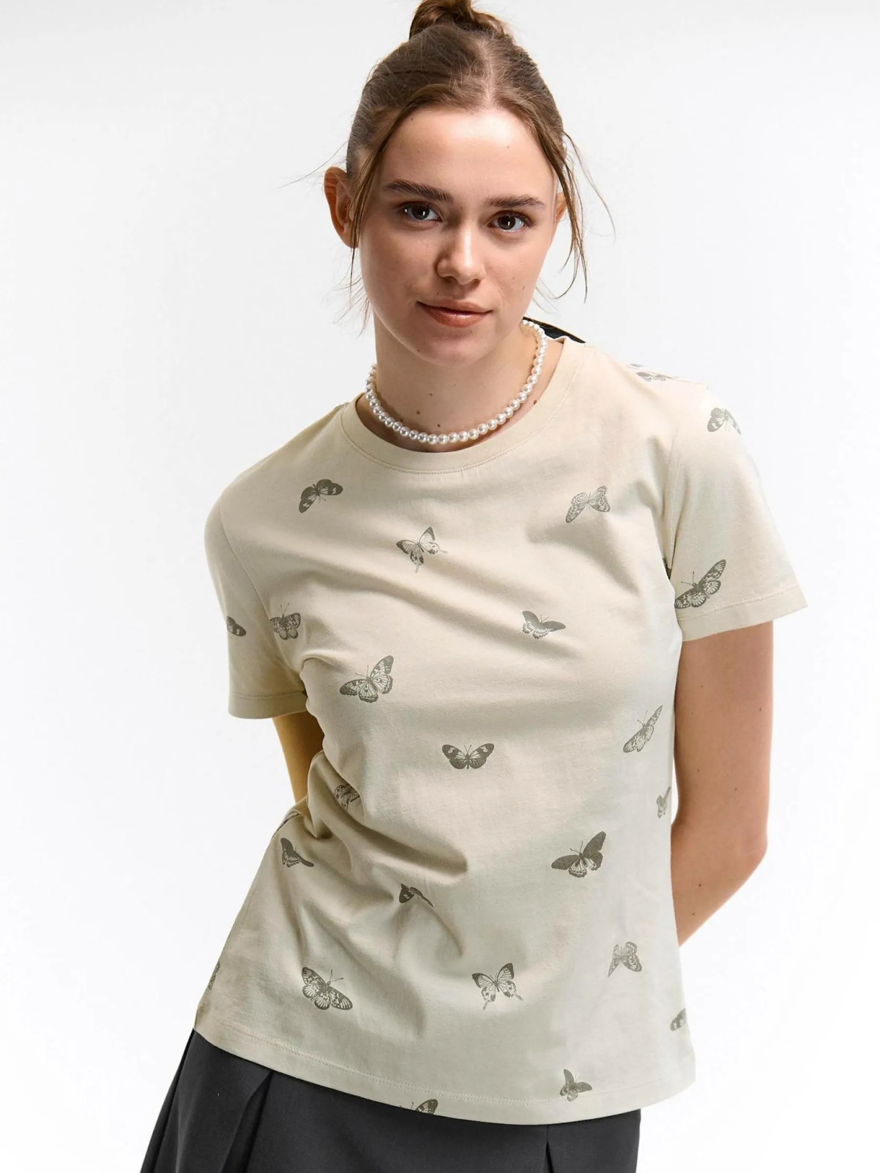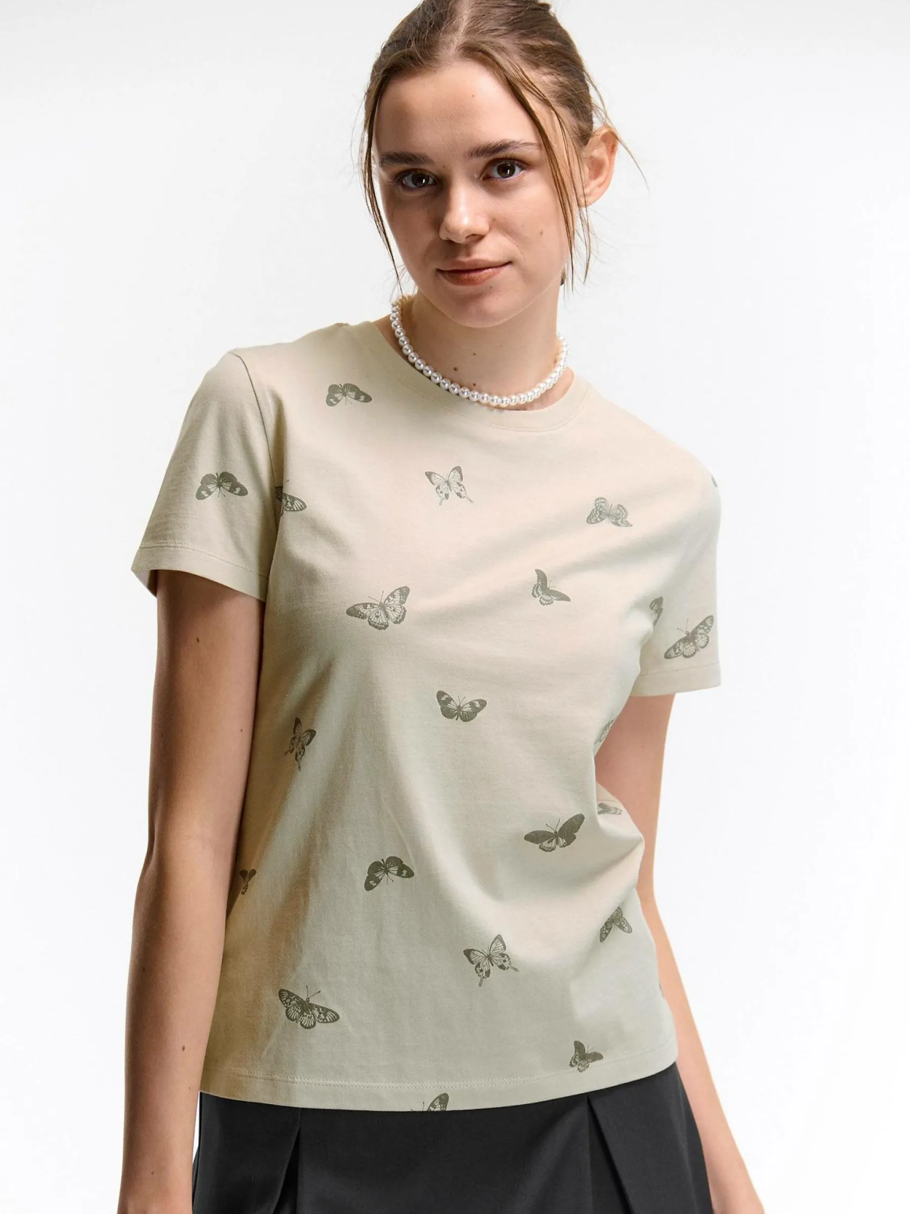 Kolor: beżowyKrój: podstawowyTyp: koszulkaRekaw: krótki rękawDługość: krótkiPattern style: z nadrukiemDetal: nad…