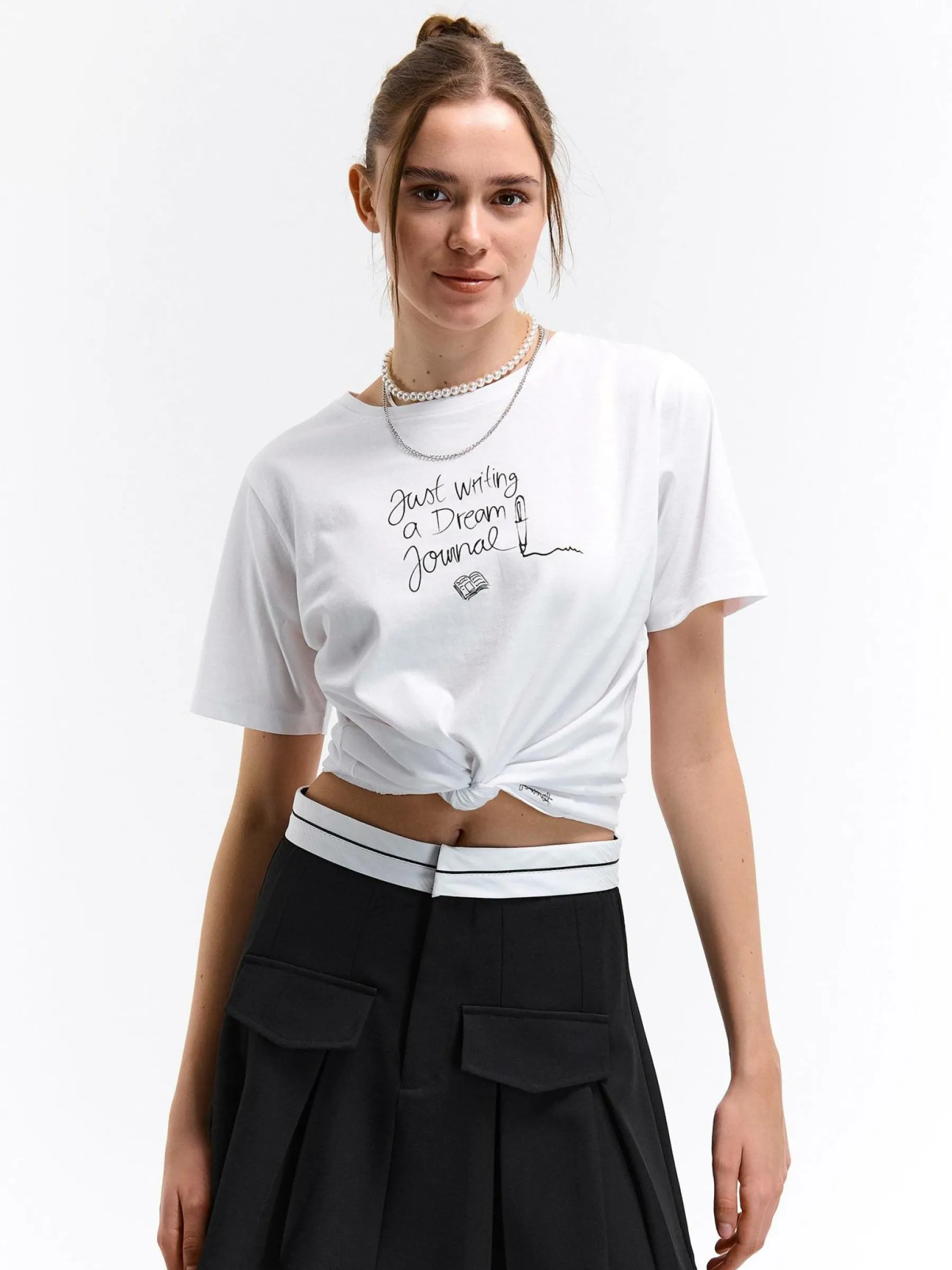 Kolor: białyKrój: regularTyp: koszulkaRekaw: krótki rękawDługość: krótkiPattern style: z nadrukiemDetal: nad gł…