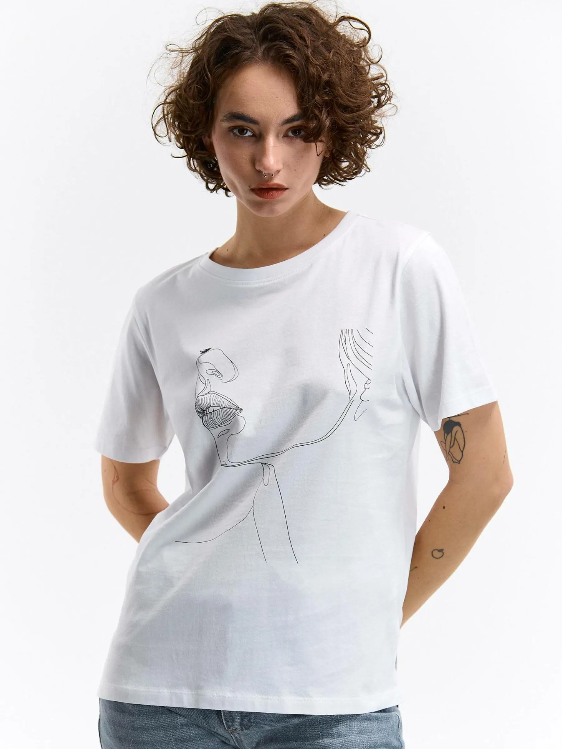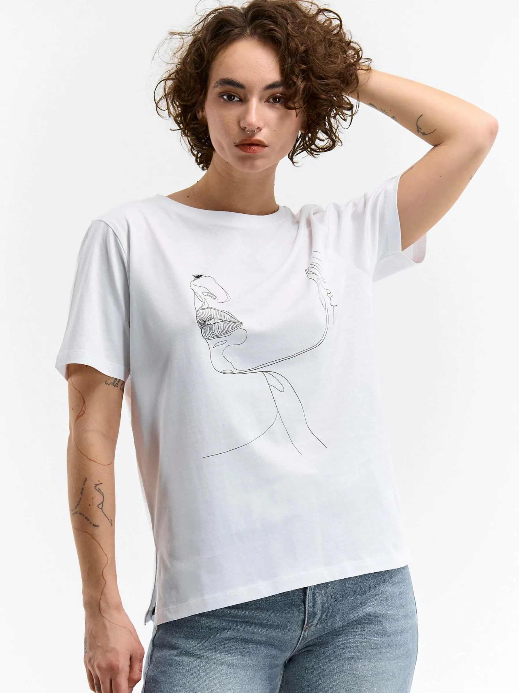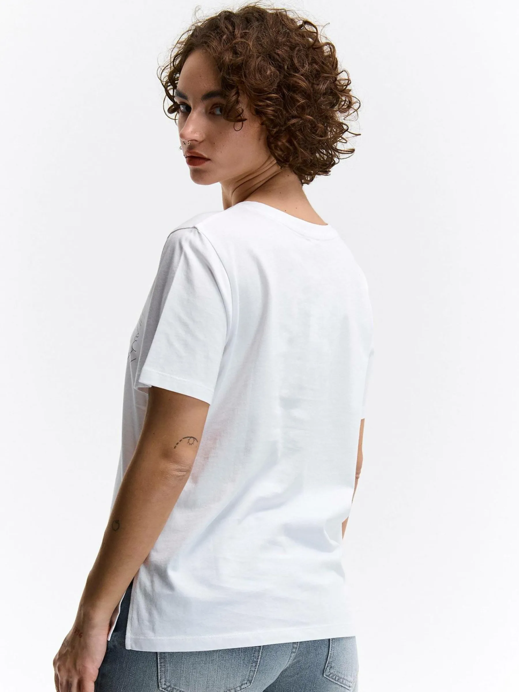 Kolor: białyKrój: regularTyp: koszulkaRekaw: krótki rękawDługość: krótkiPattern style: z nadrukiemDetal: nad gł…