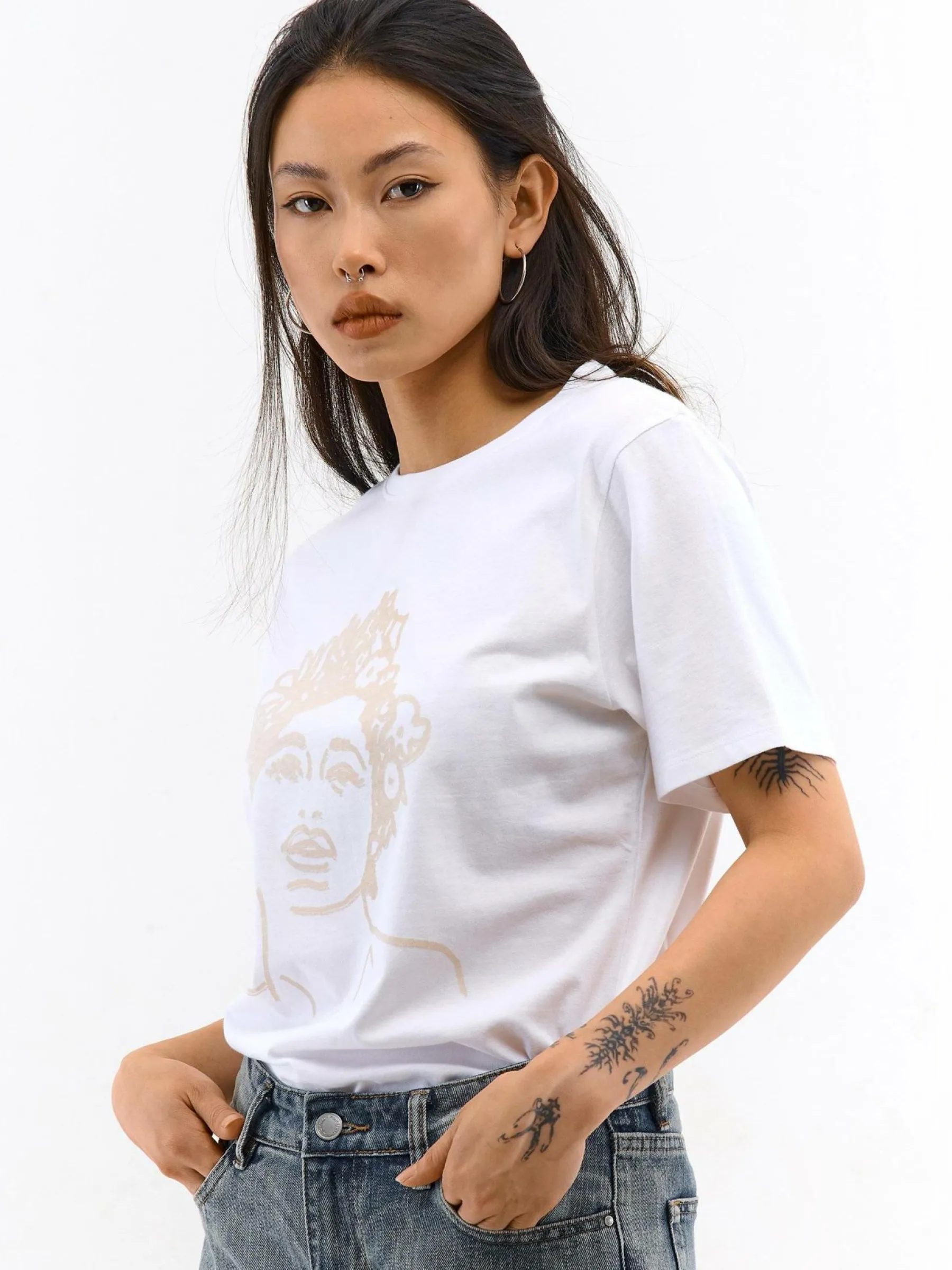 Zdjęcia z modelką mogą nie odpowiadać rzeczywistemu kolorowi produktu.Kolor: białyKrój: podstawowyTyp: koszulkaRek…