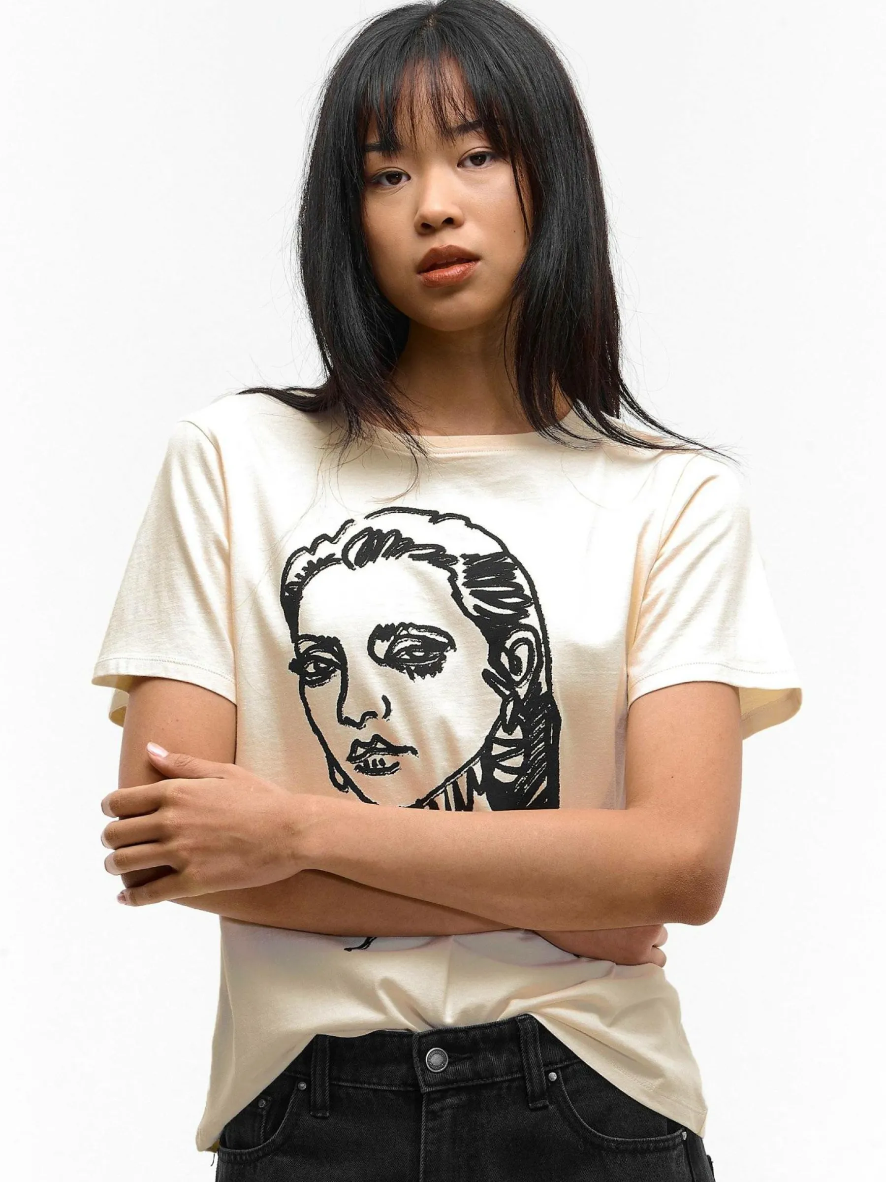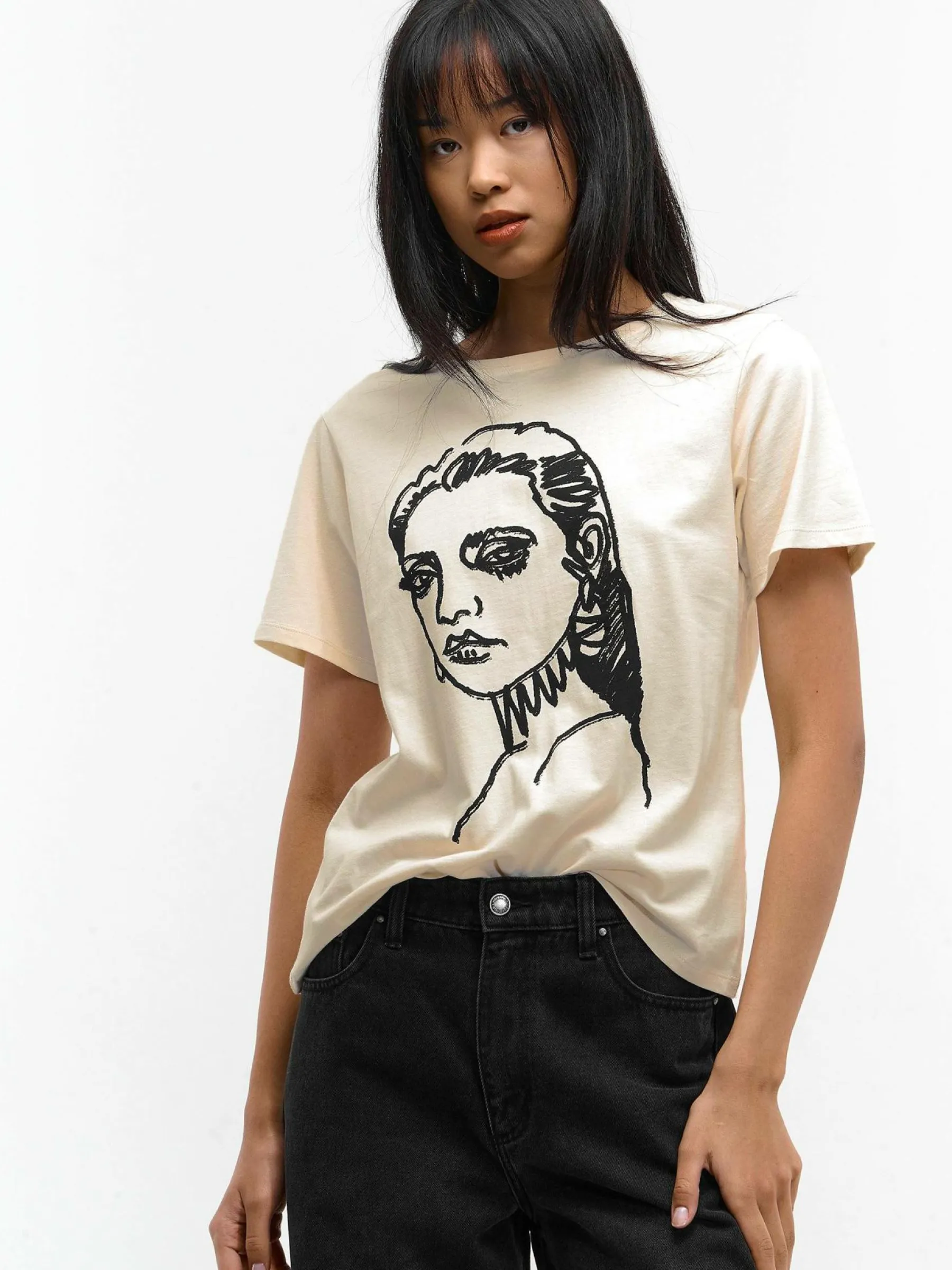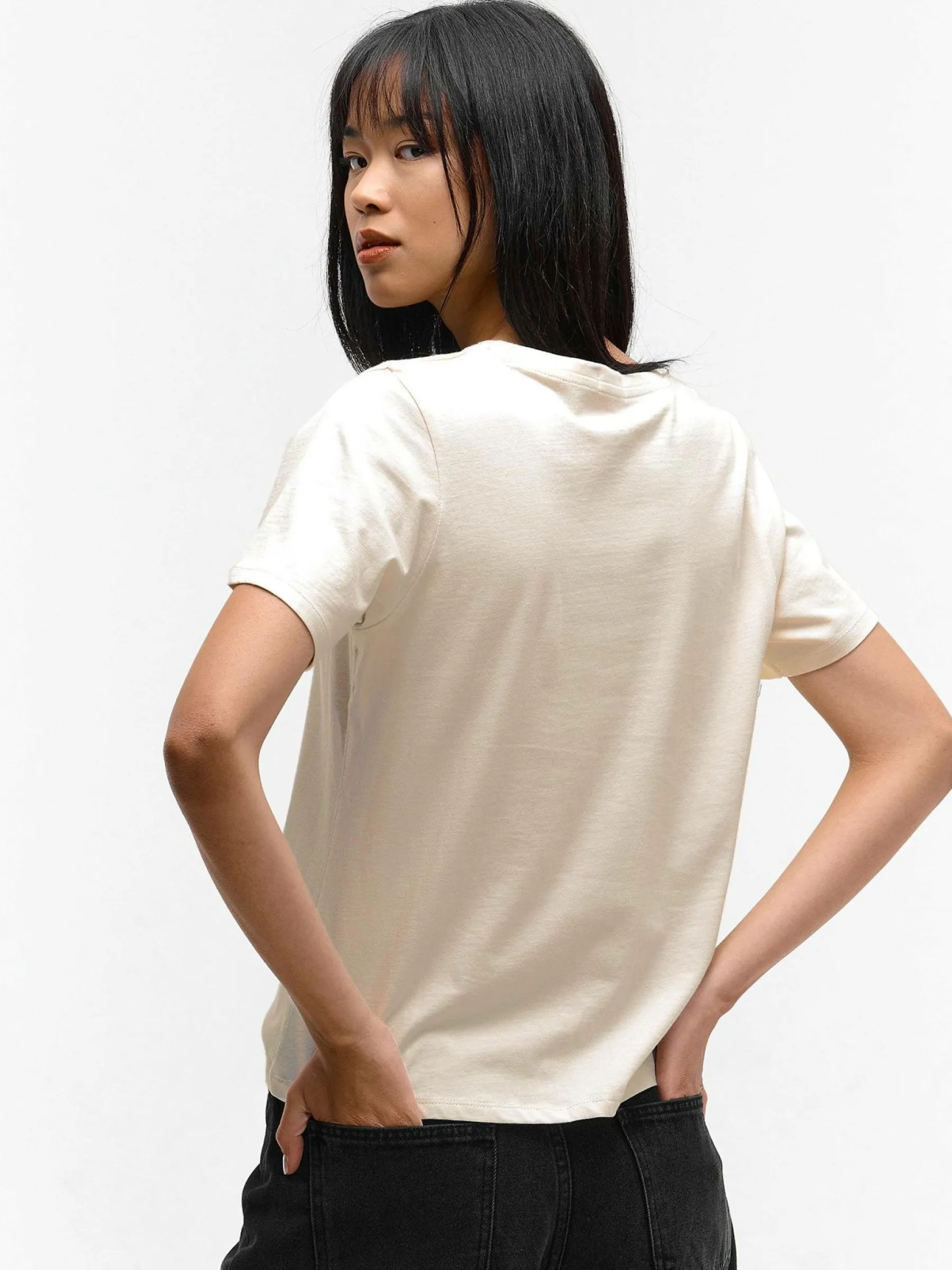 Kolor: beżowyKrój: podstawowyTyp: koszulkaRekaw: krótki rękawDługość: krótkiPattern style: z nadrukiemDetal: nad…