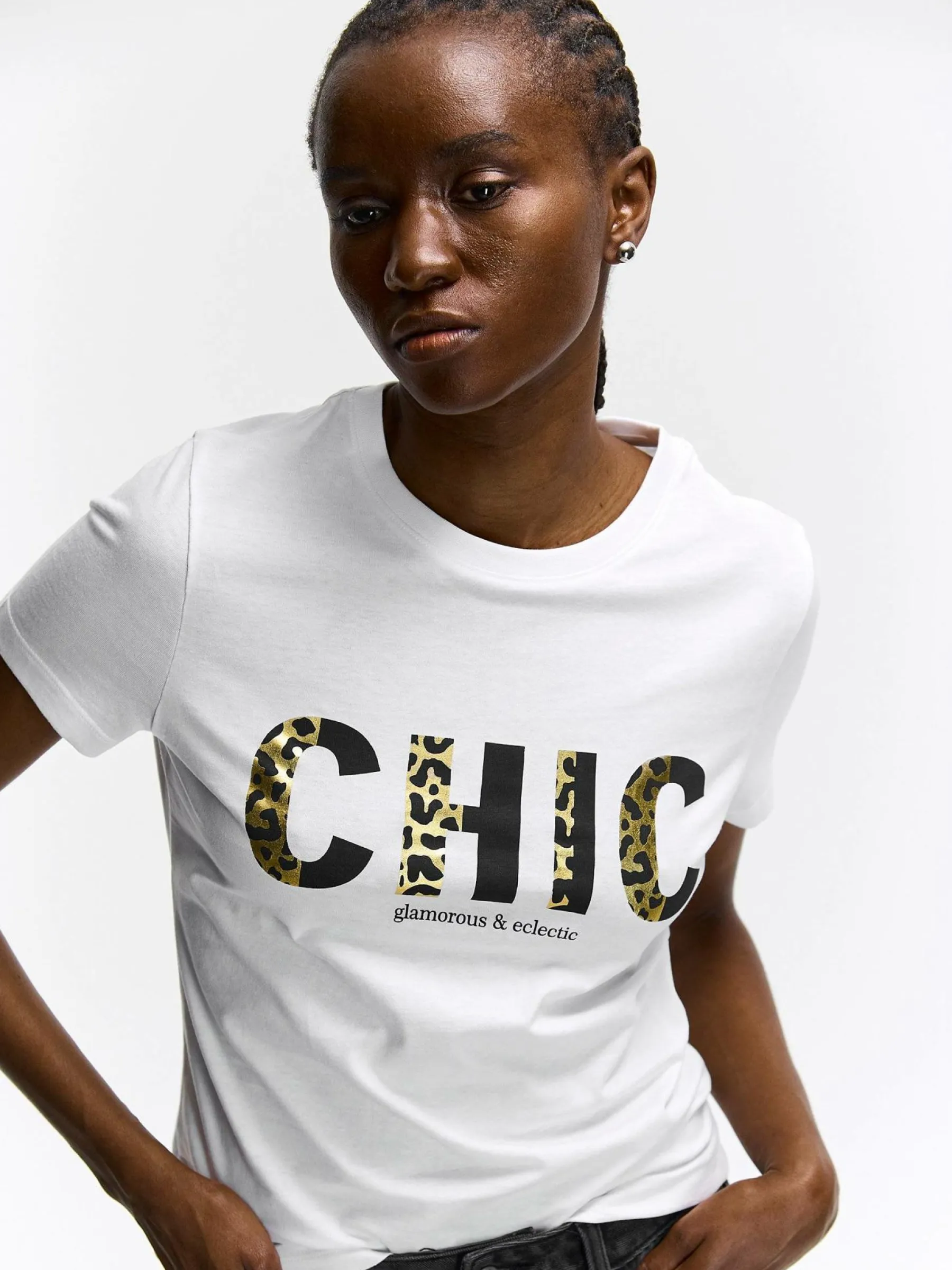 Kolor: białyKrój: regularTyp: koszulkaRekaw: krótki rękawDługość: krótkiPattern style: z nadrukiemDetal: nad gł…