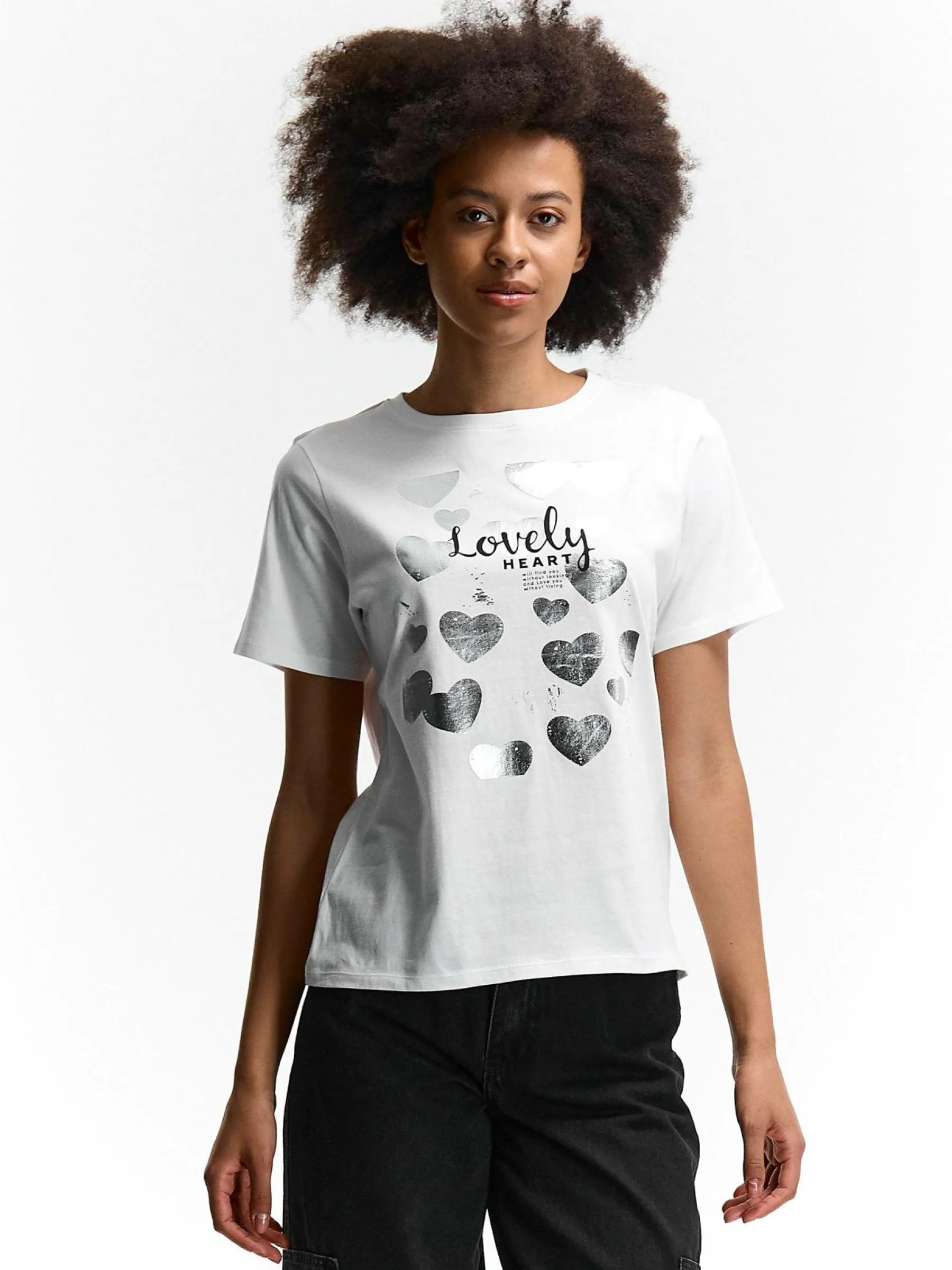 Kolor: białyKrój: podstawowyTyp: koszulkaRekaw: krótki rękawDługość: krótkiPattern style: z nadrukiemDetal: nad …