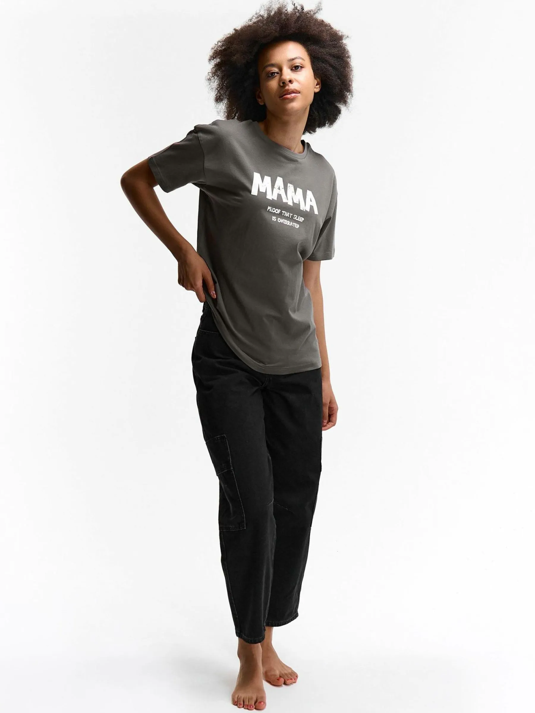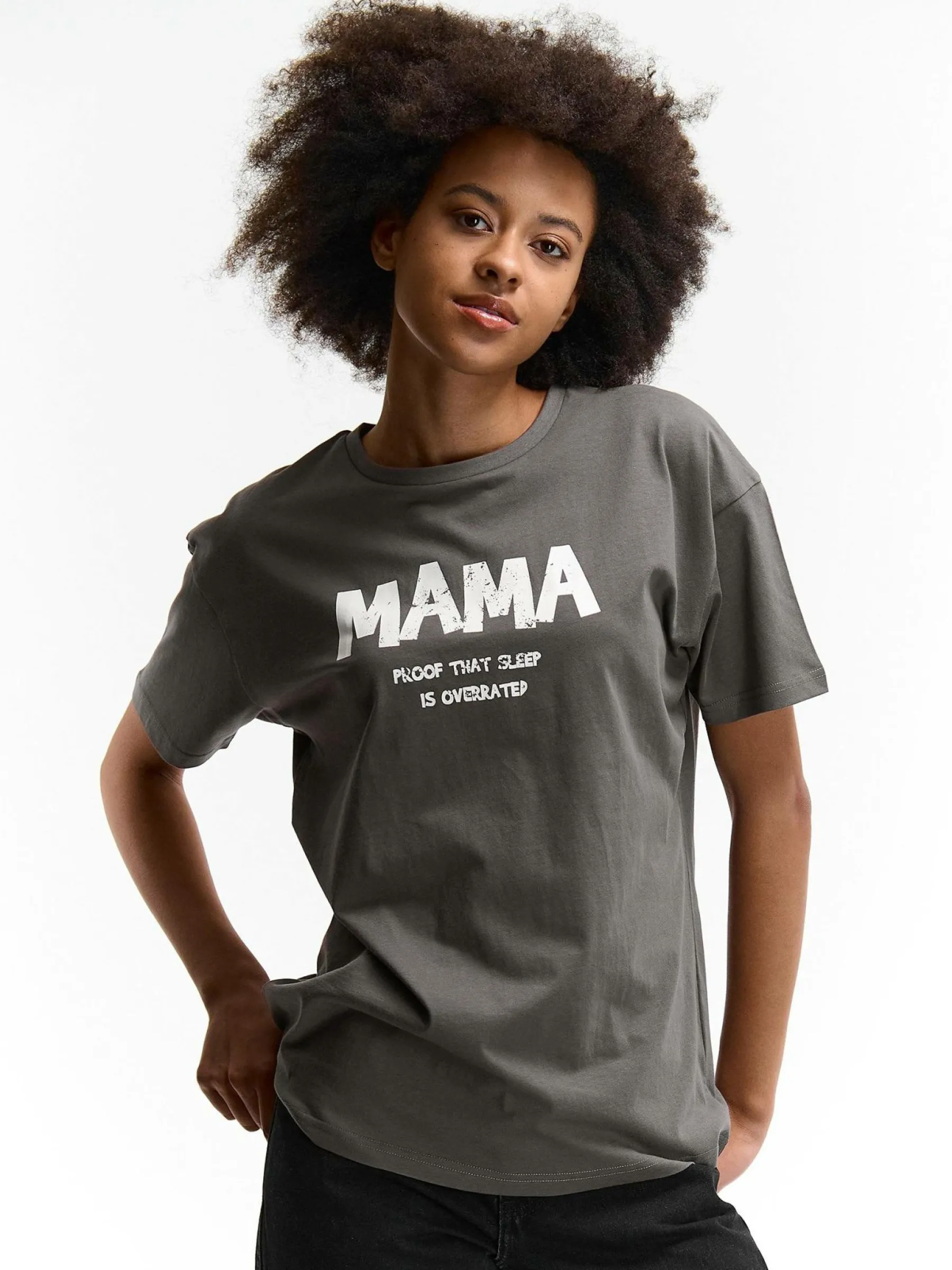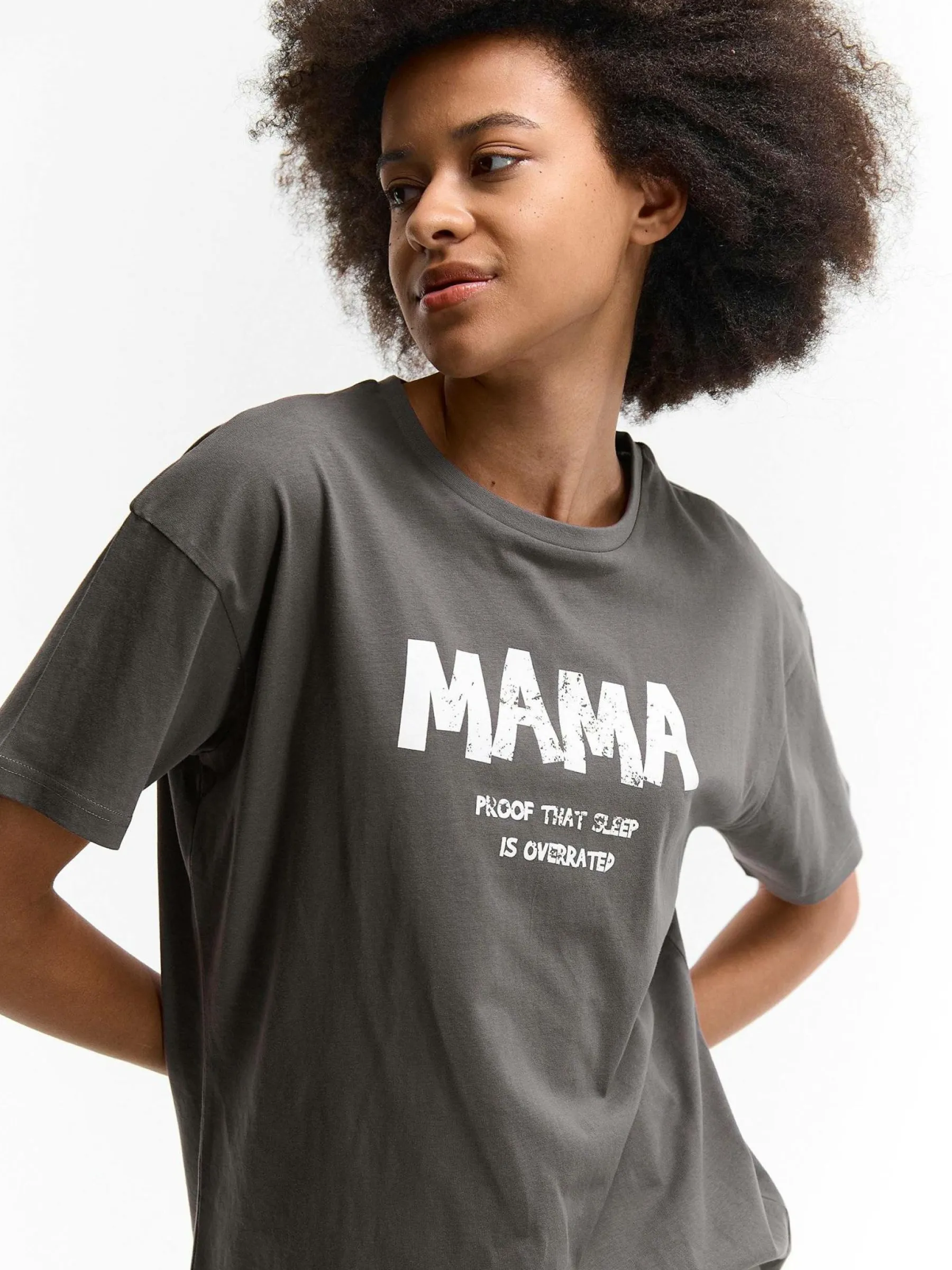 Kolor: szaryKrój: regularTyp: koszulkaRekaw: krótki rękawDługość: dlugiePattern style: z nadrukiemDetal: nad głow…