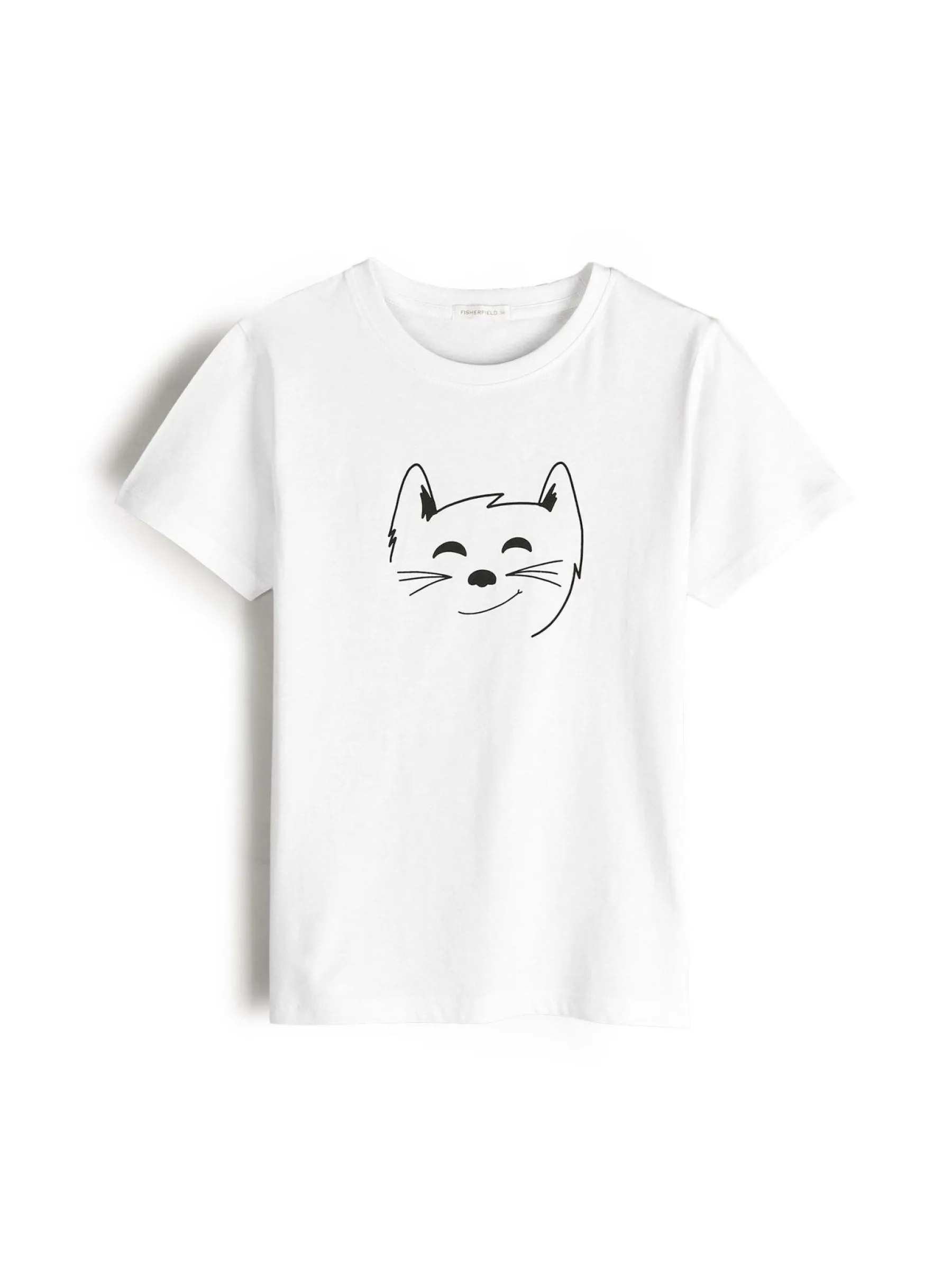 Kolor: białyKrój: regularTyp: koszulkaRekaw: krótki rękawDługość: krótkiPattern style: z nadrukiemDetal: nad gł…