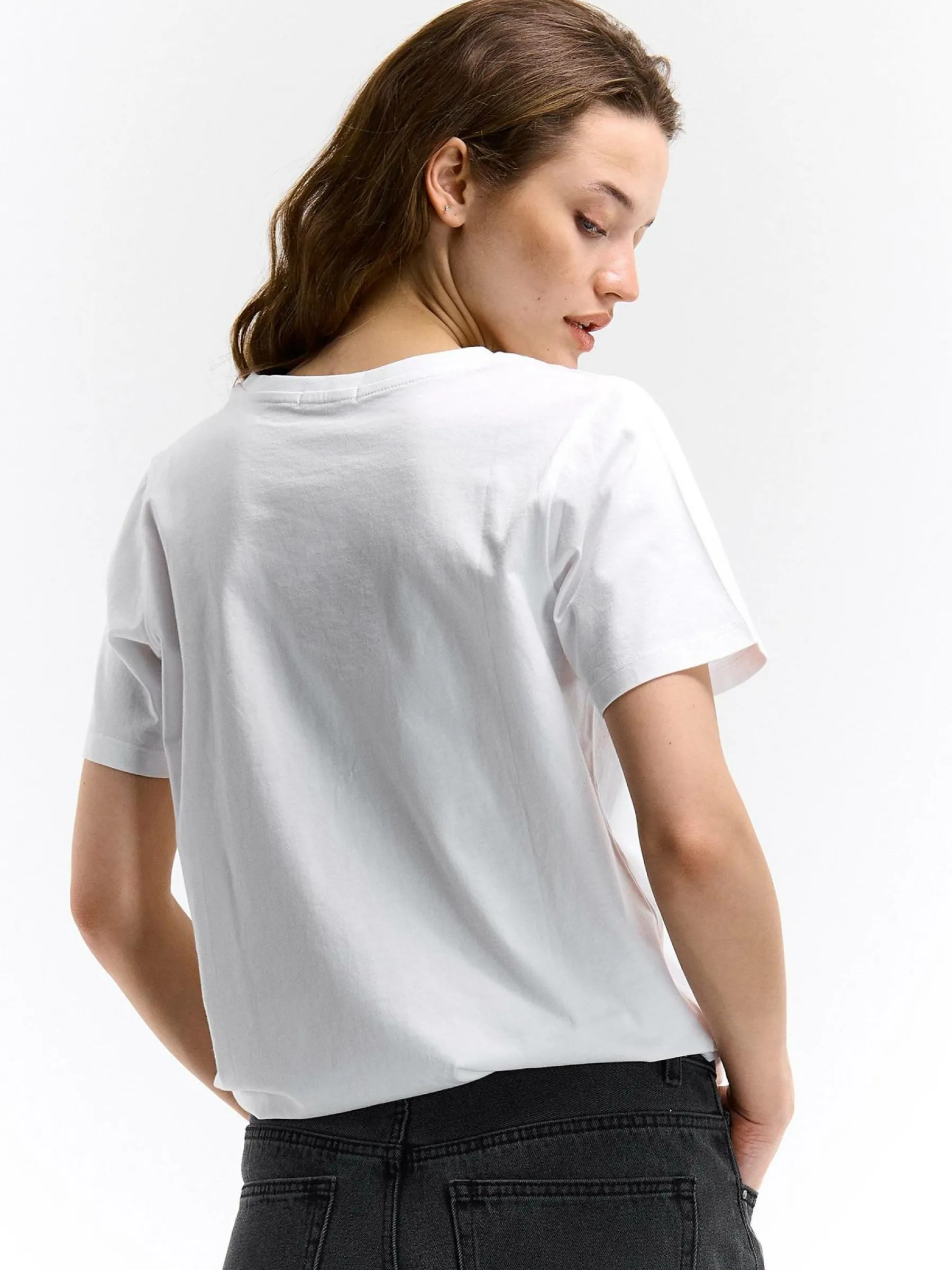 Kolor: białyKrój: regularTyp: koszulkaRekaw: krótki rękawDługość: krótkiPattern style: z nadrukiemDetal: nad gł…