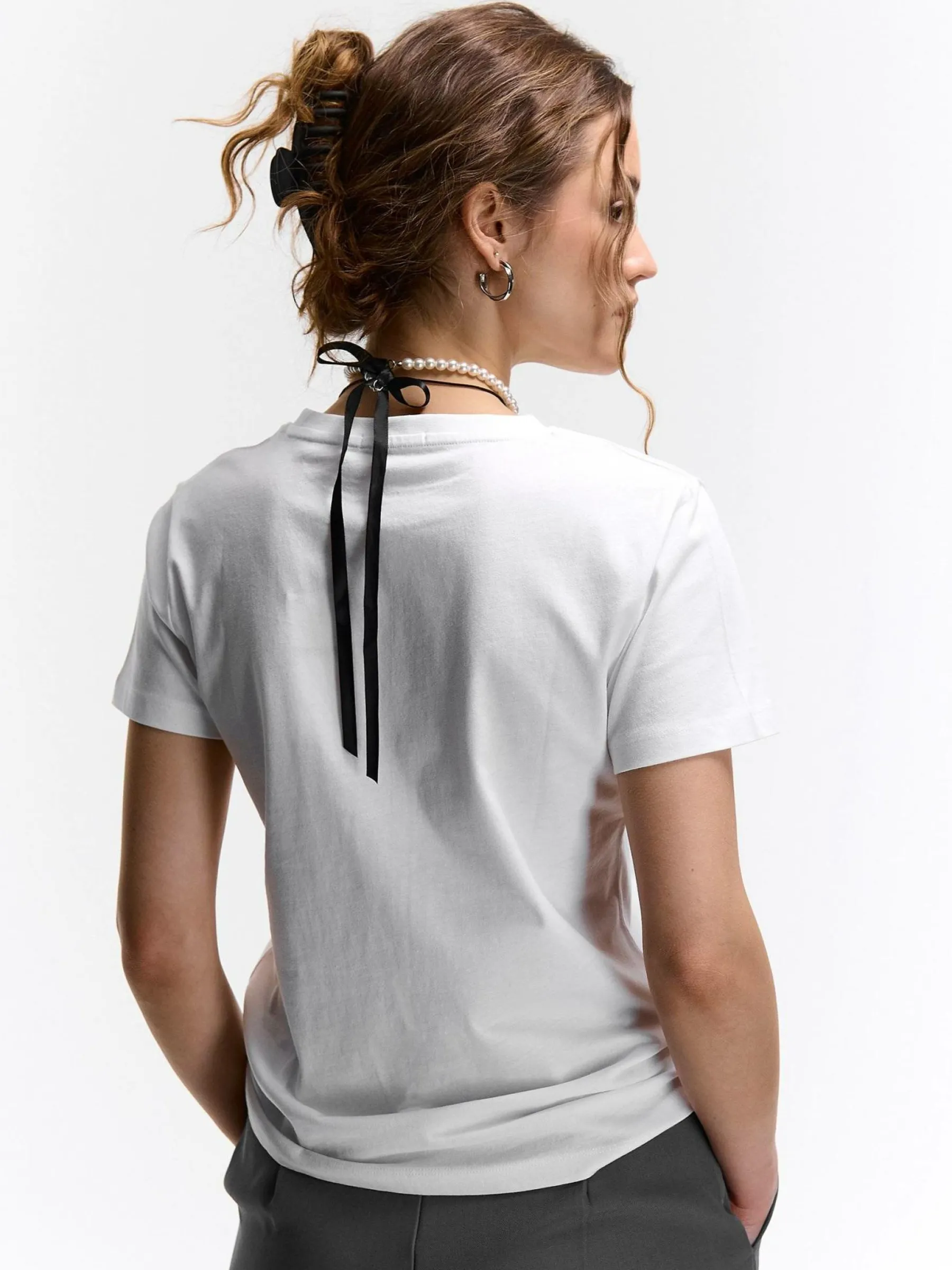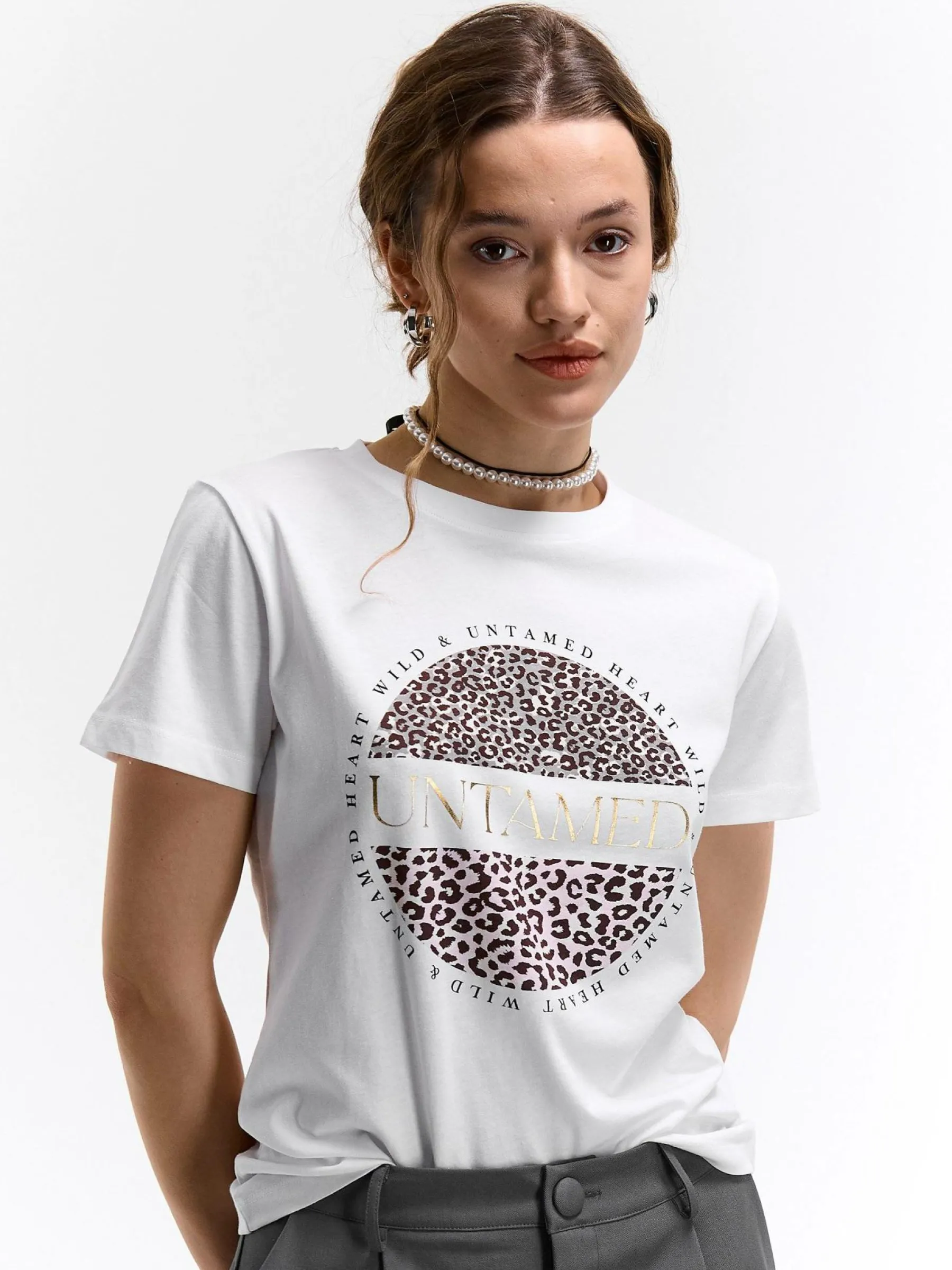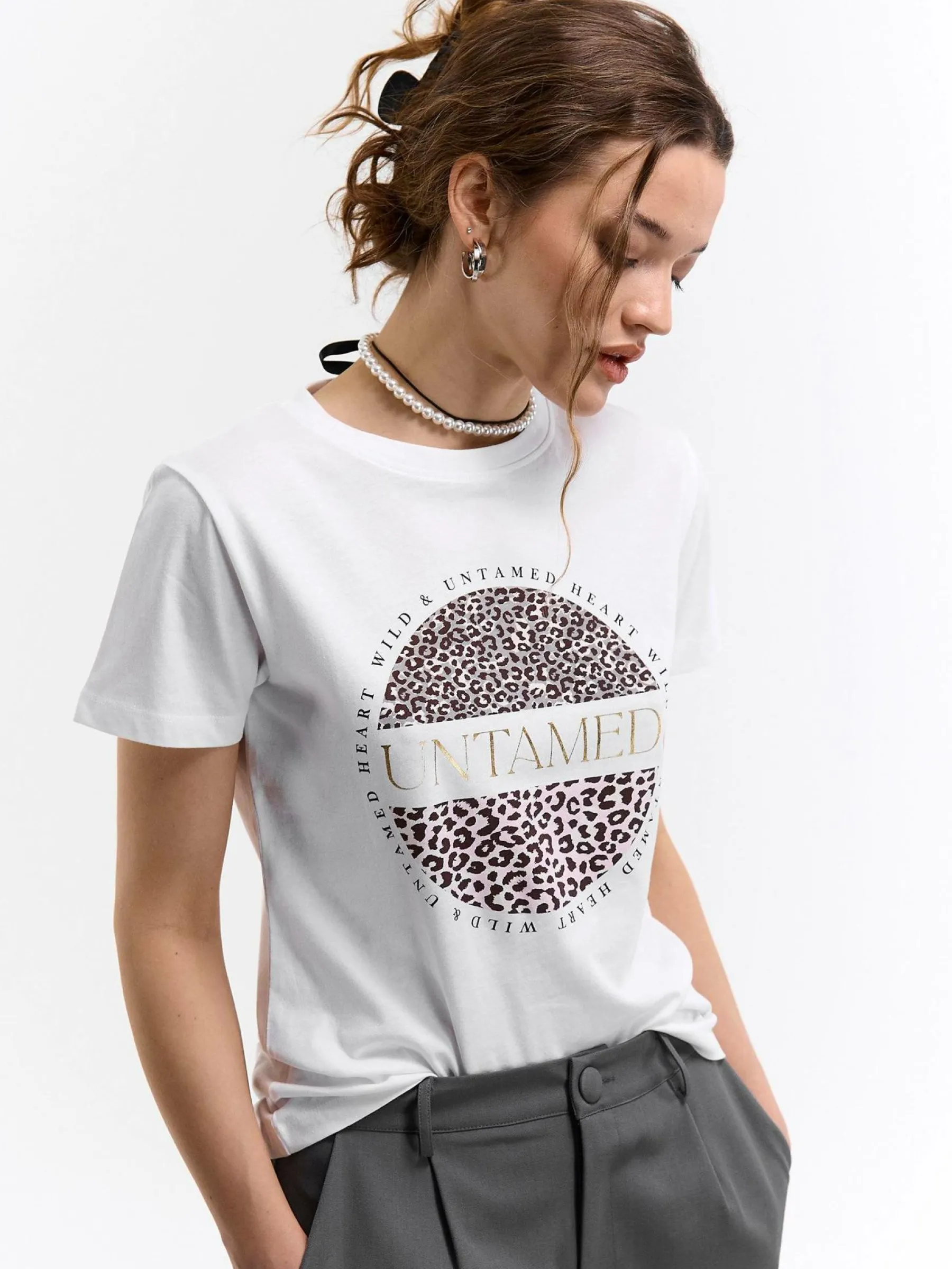 Kolor: białyKrój: regularTyp: koszulkaRekaw: krótki rękawDługość: krótkiPattern style: z nadrukiemDetal: nad gł…