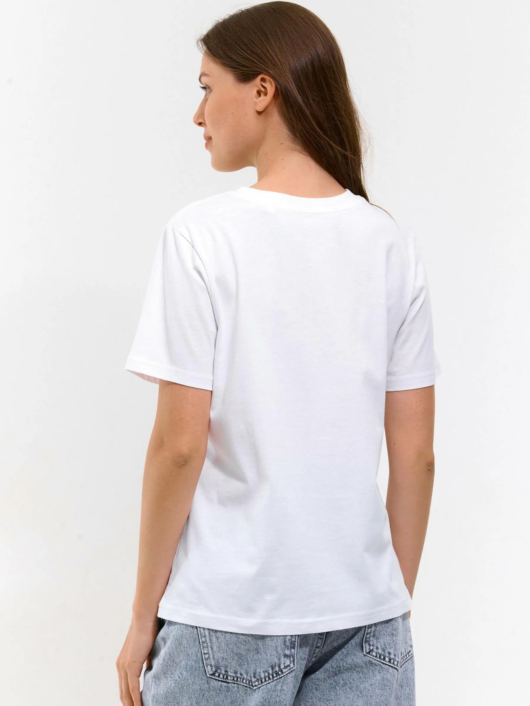 Kolor: białyKrój: regularTyp: koszulkaRekaw: krótki rękawDługość: krótkiPattern style: z nadrukiemDetal: nad gł…