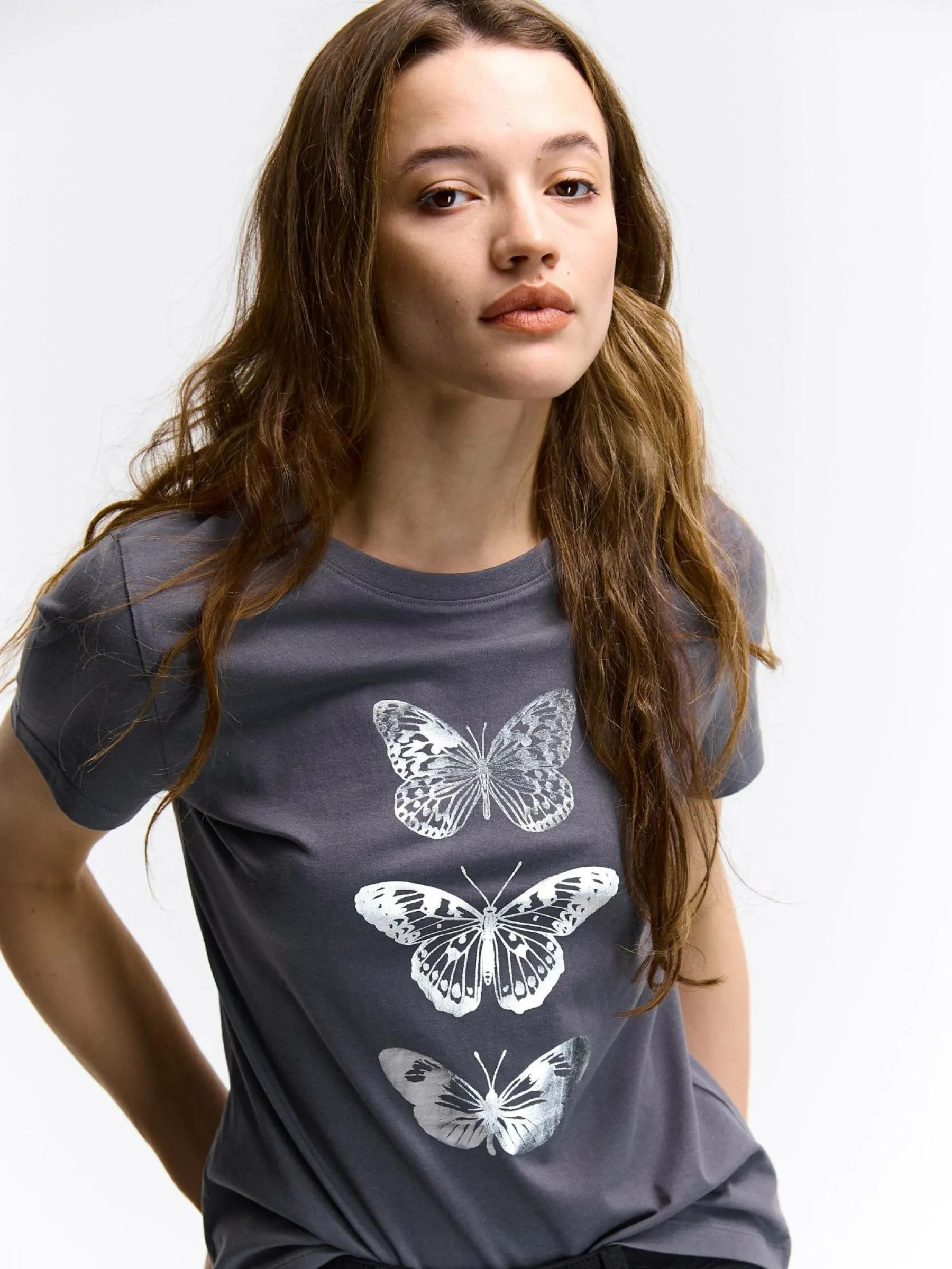 Kolor: brązowyKrój: podstawowyTyp: koszulkaRekaw: krótki rękawDługość: krótkiPattern style: z nadrukiemDetal: na…