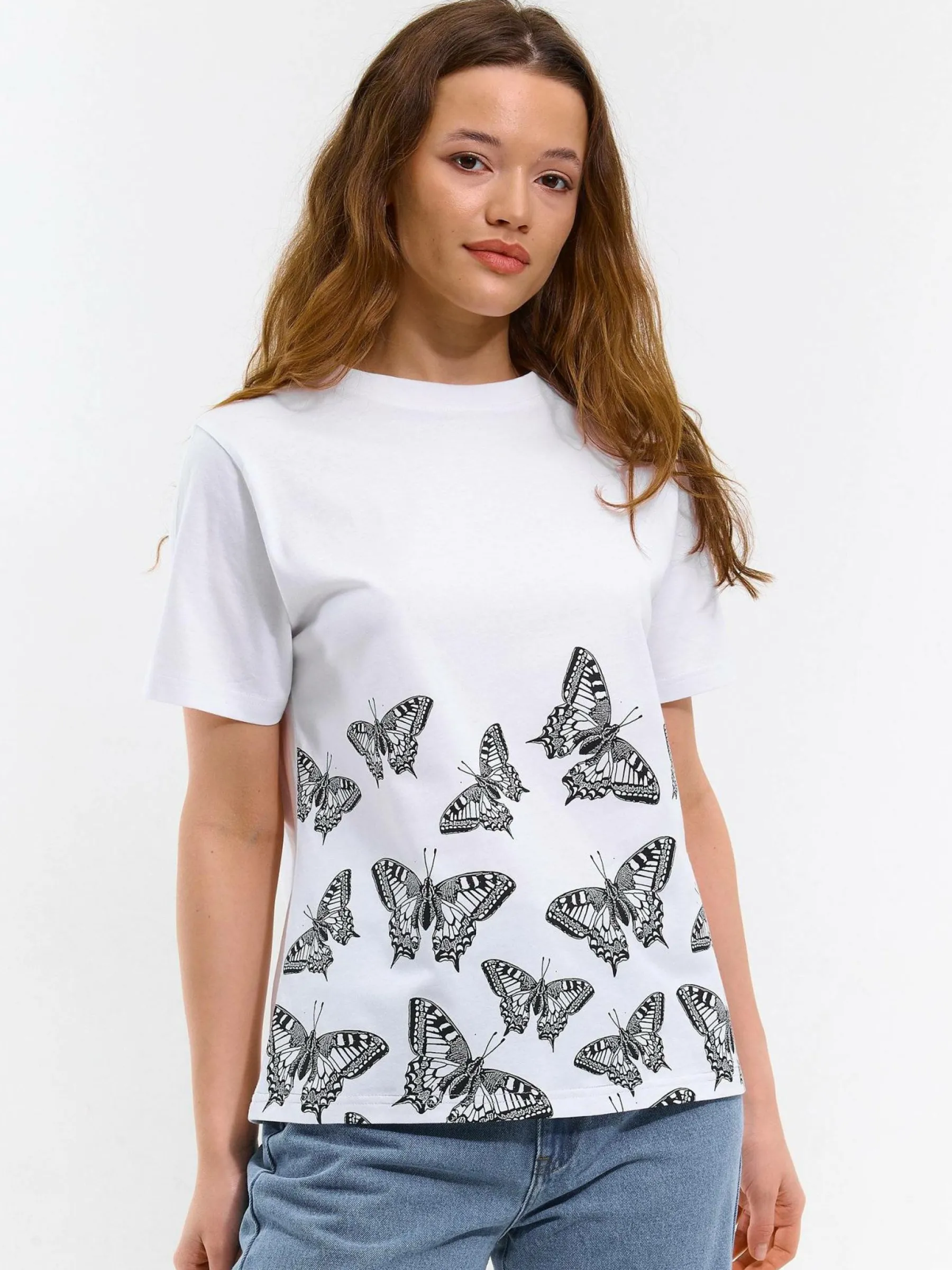 Kolor: białyKrój: regularTyp: koszulkaRekaw: krótki rękawDługość: krótkiPattern style: z nadrukiemDetal: nad gł…