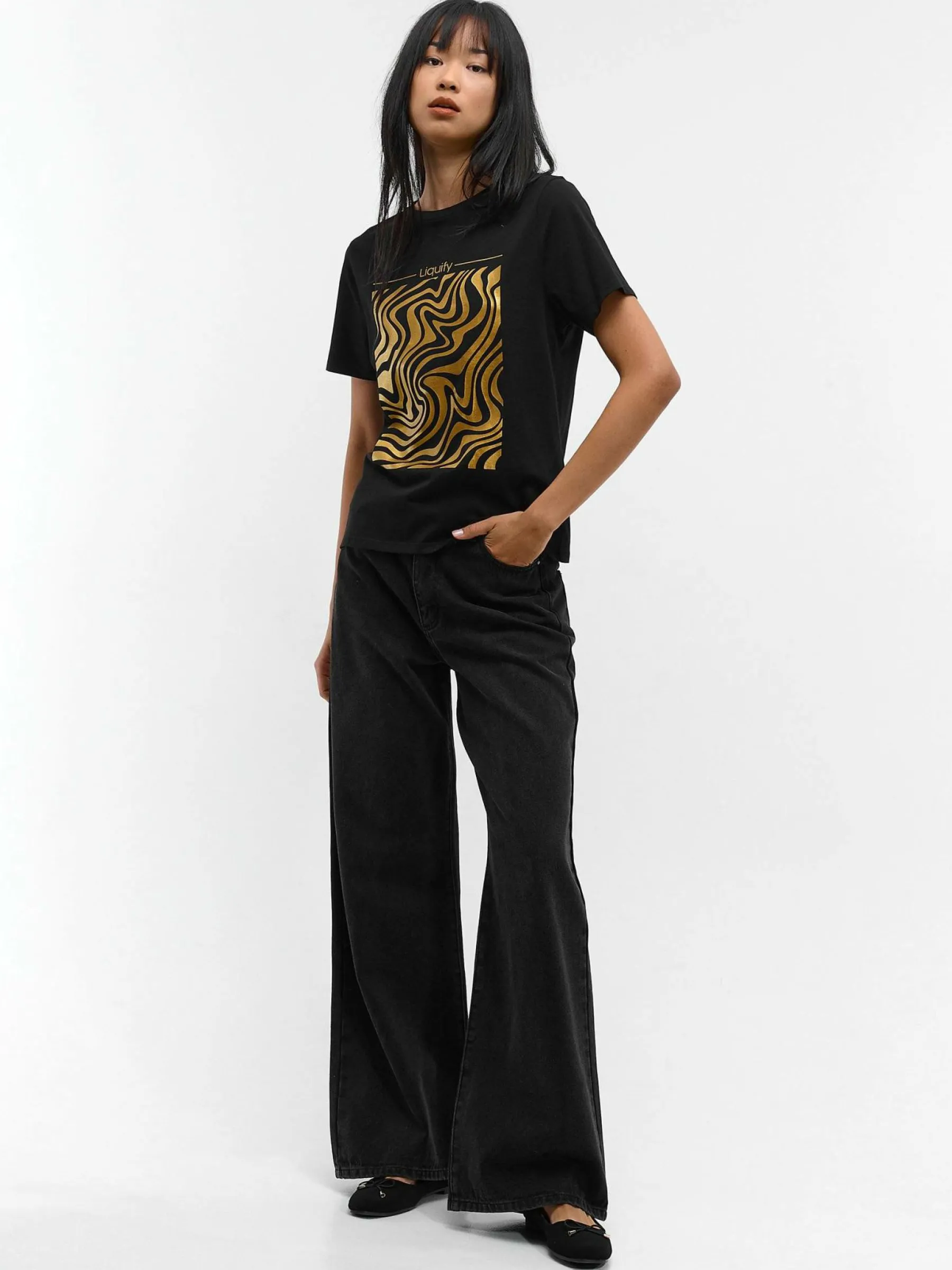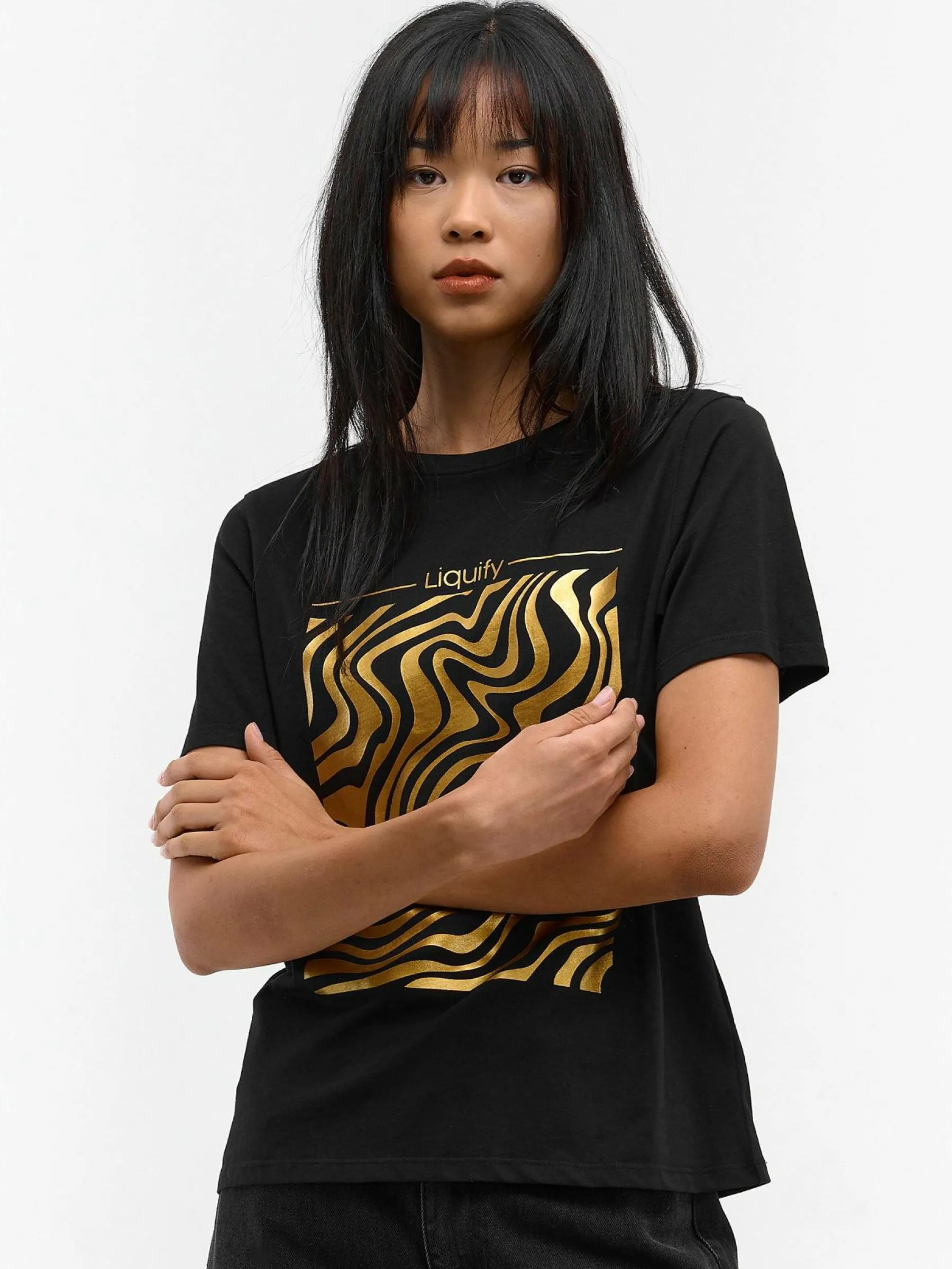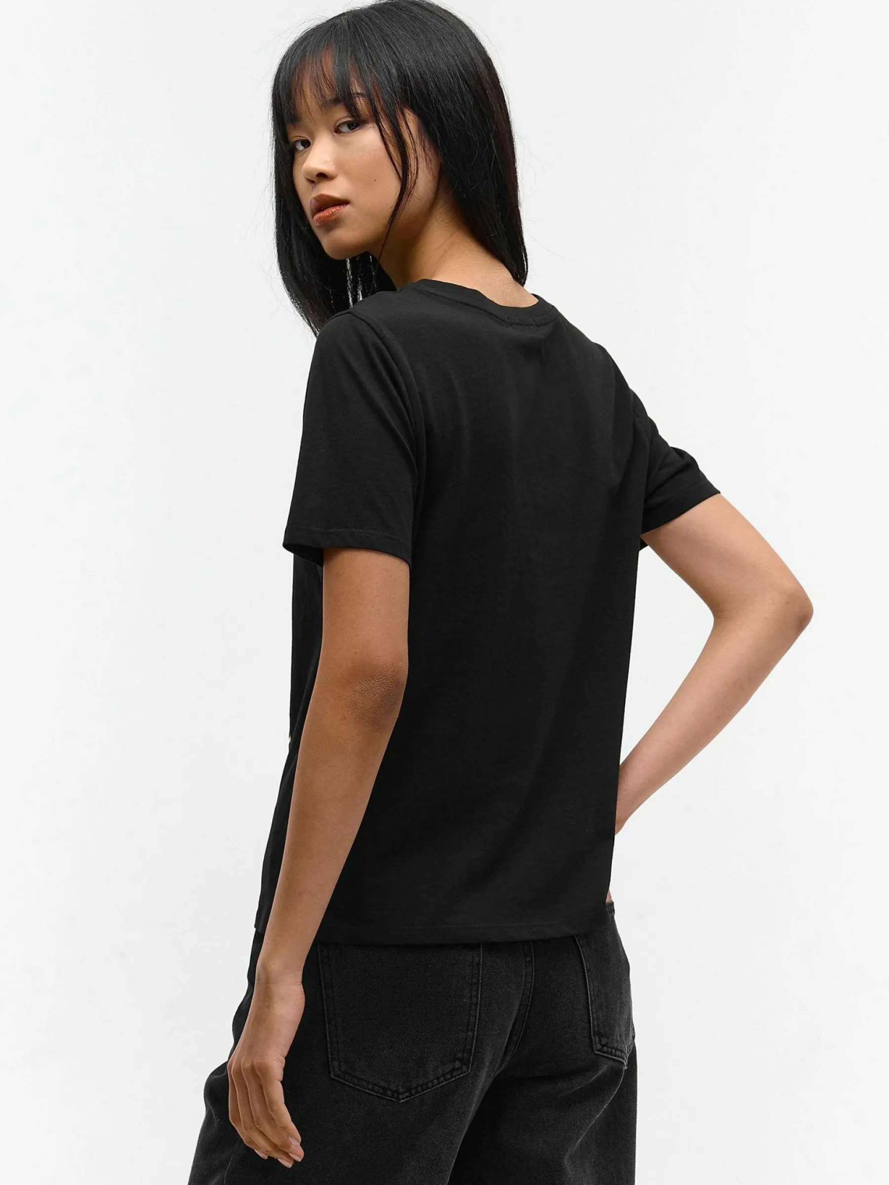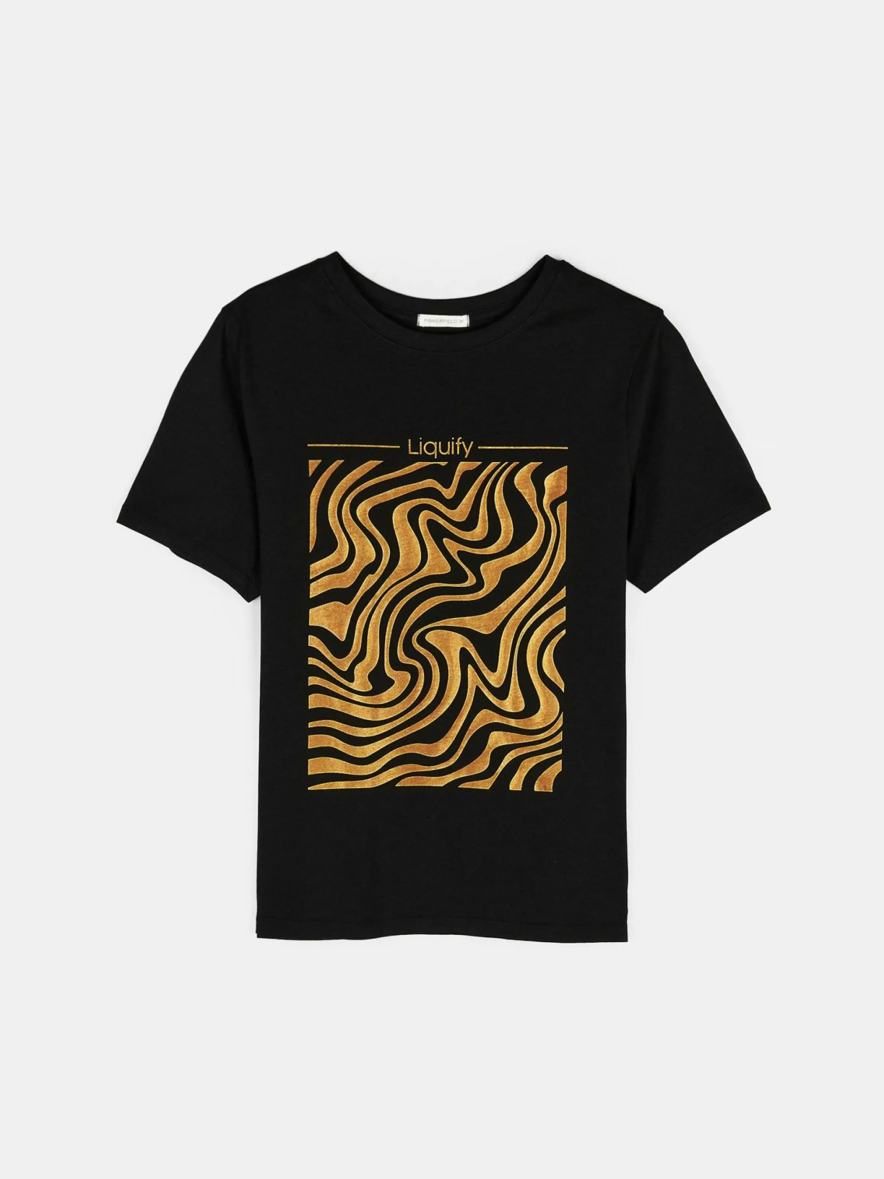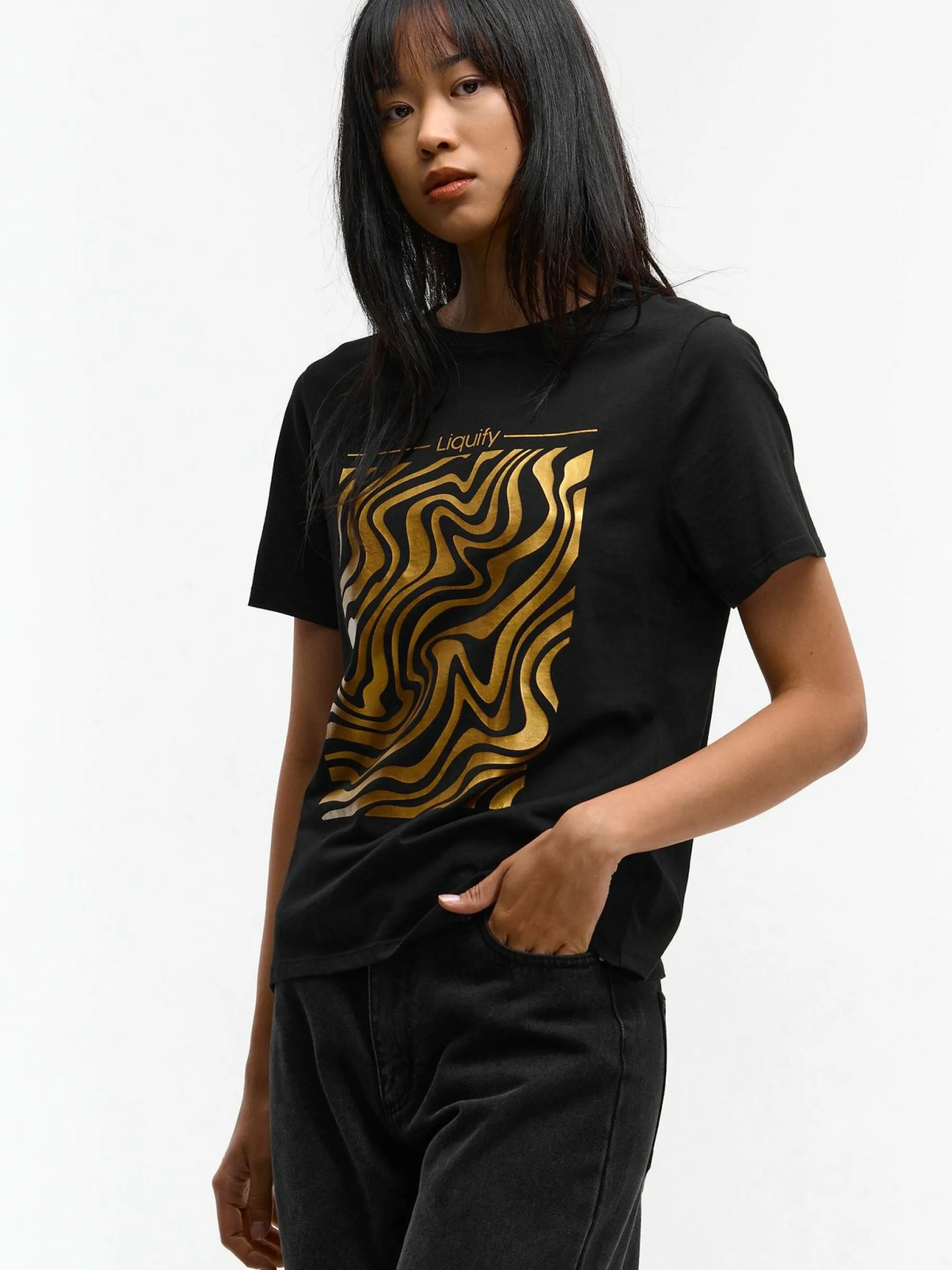Kolor: czarnyKrój: podstawowyTyp: koszulkaRekaw: krótki rękawDługość: krótkiPattern style: z nadrukiemDetal: nad …