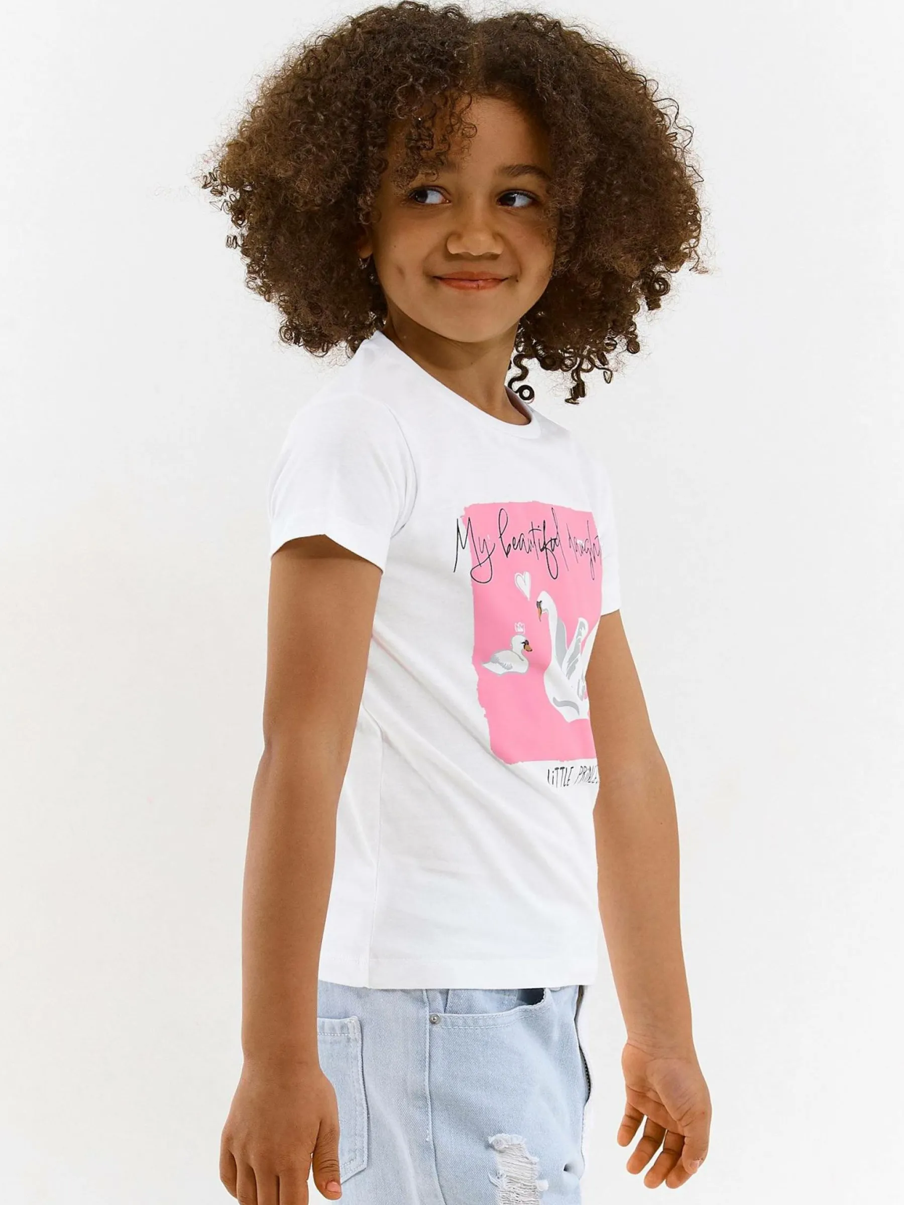 Kolor: białyKrój: regularTyp: koszulkaRekaw: krótki rękawDługość: krótkiPattern style: z nadrukiemDetal: nad gł…