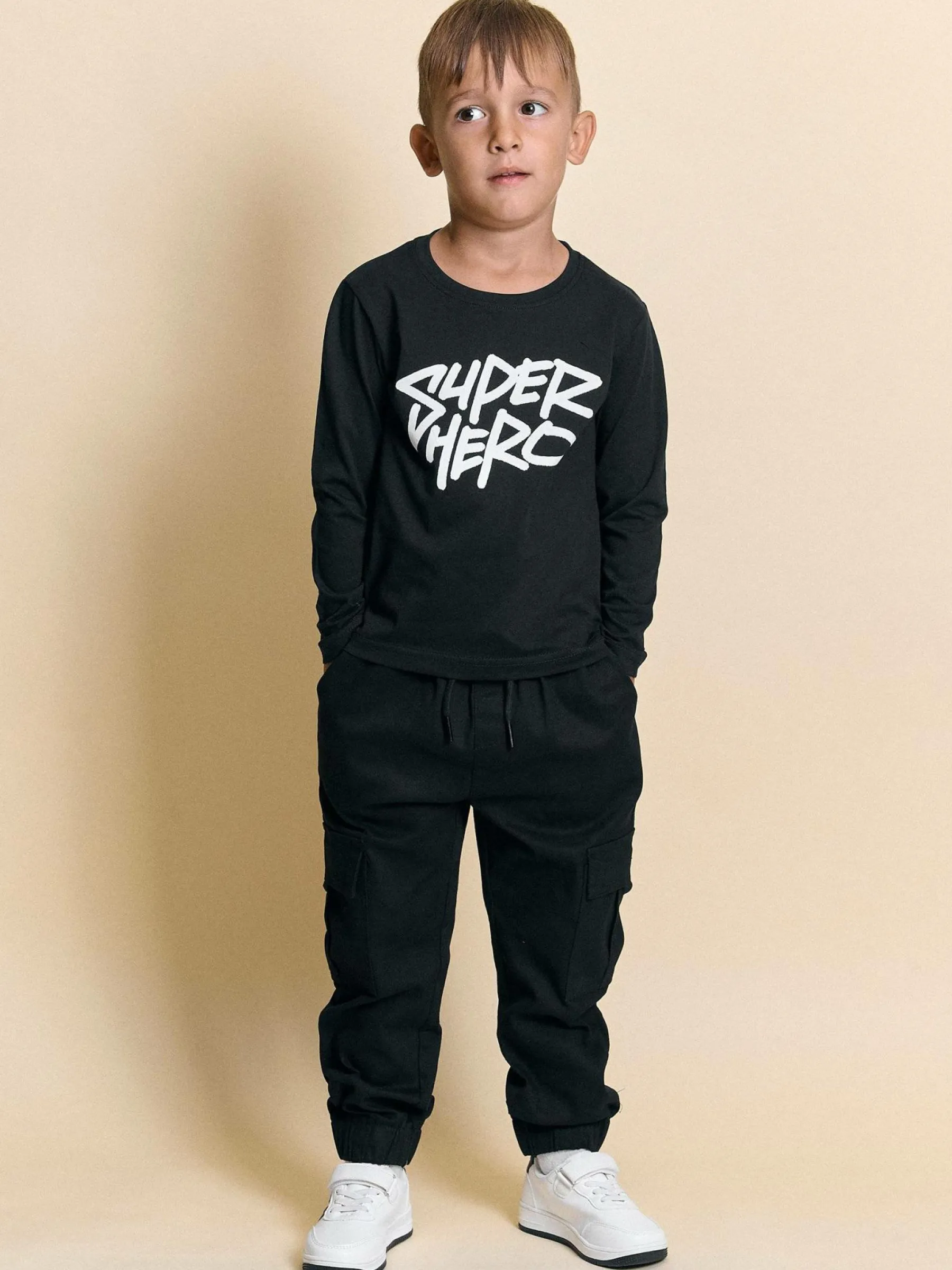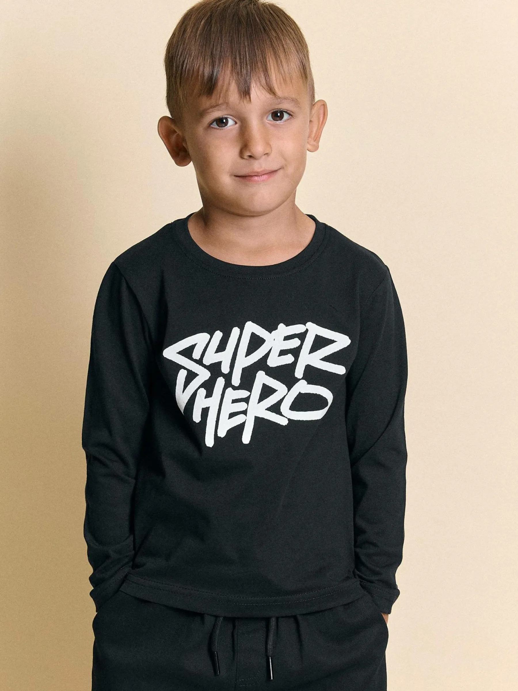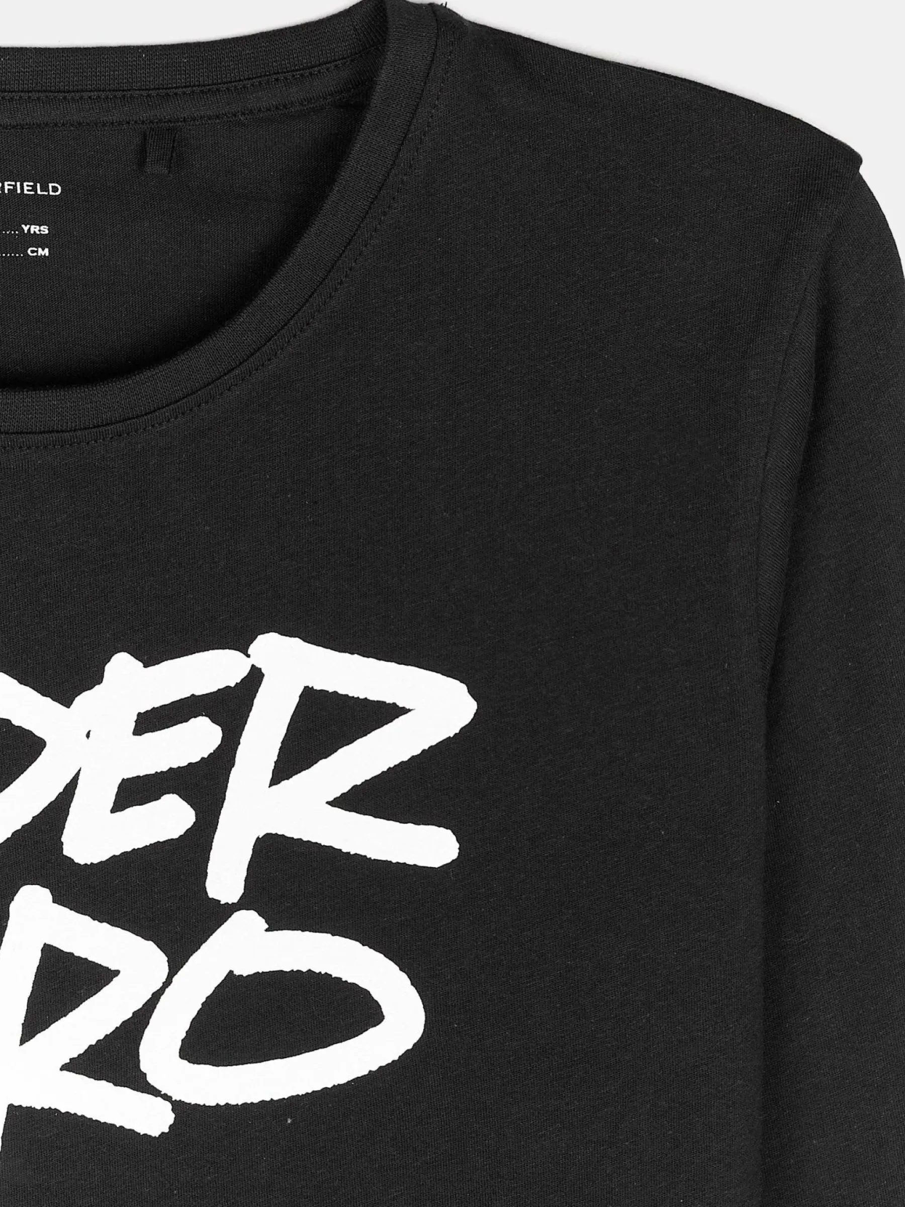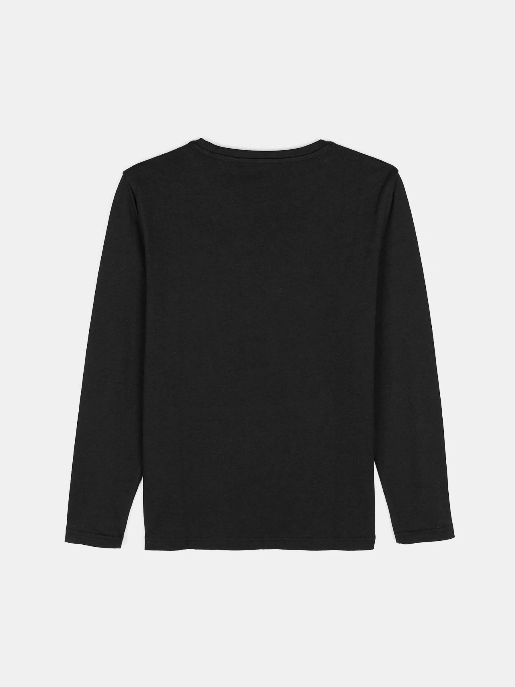 Kolor: czarnyKrój: regularTyp: koszulkaRekaw: długi rękawDługość: krótkiPattern style: z nadrukiemDetal: nad gło…