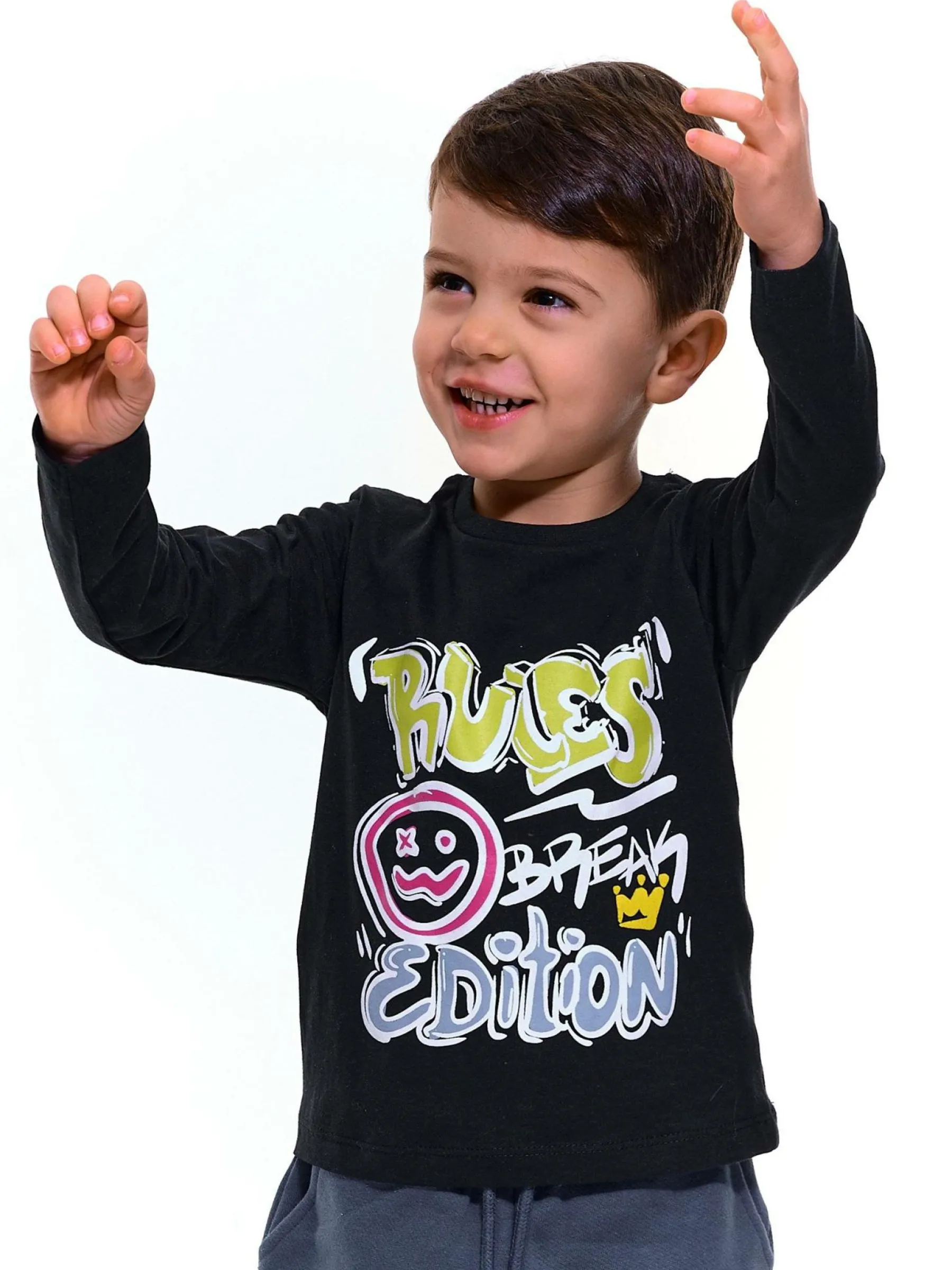 Kolor: czarnyKrój: regularTyp: koszulkaRekaw: długi rękawDługość: krótkiPattern style: z nadrukiemMateriał: bawe…
