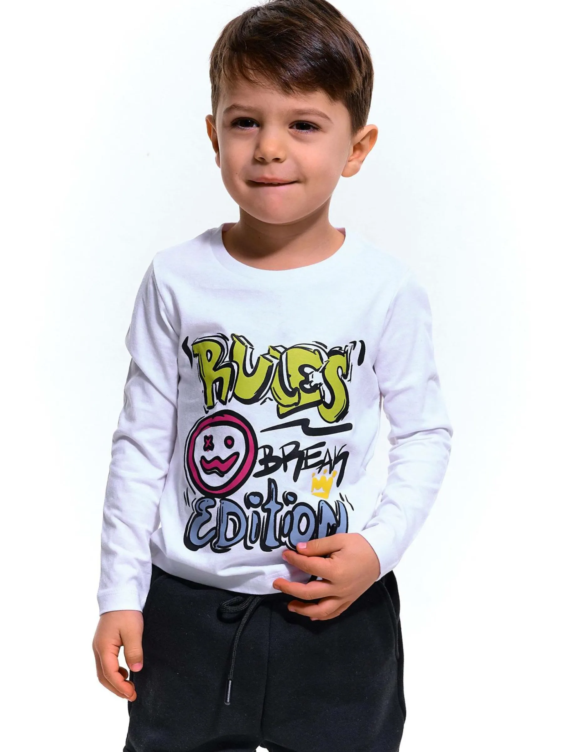 Kolor: białyKrój: regularTyp: koszulkaRekaw: długi rękawDługość: krótkiPattern style: z nadrukiemMateriał: bawe…