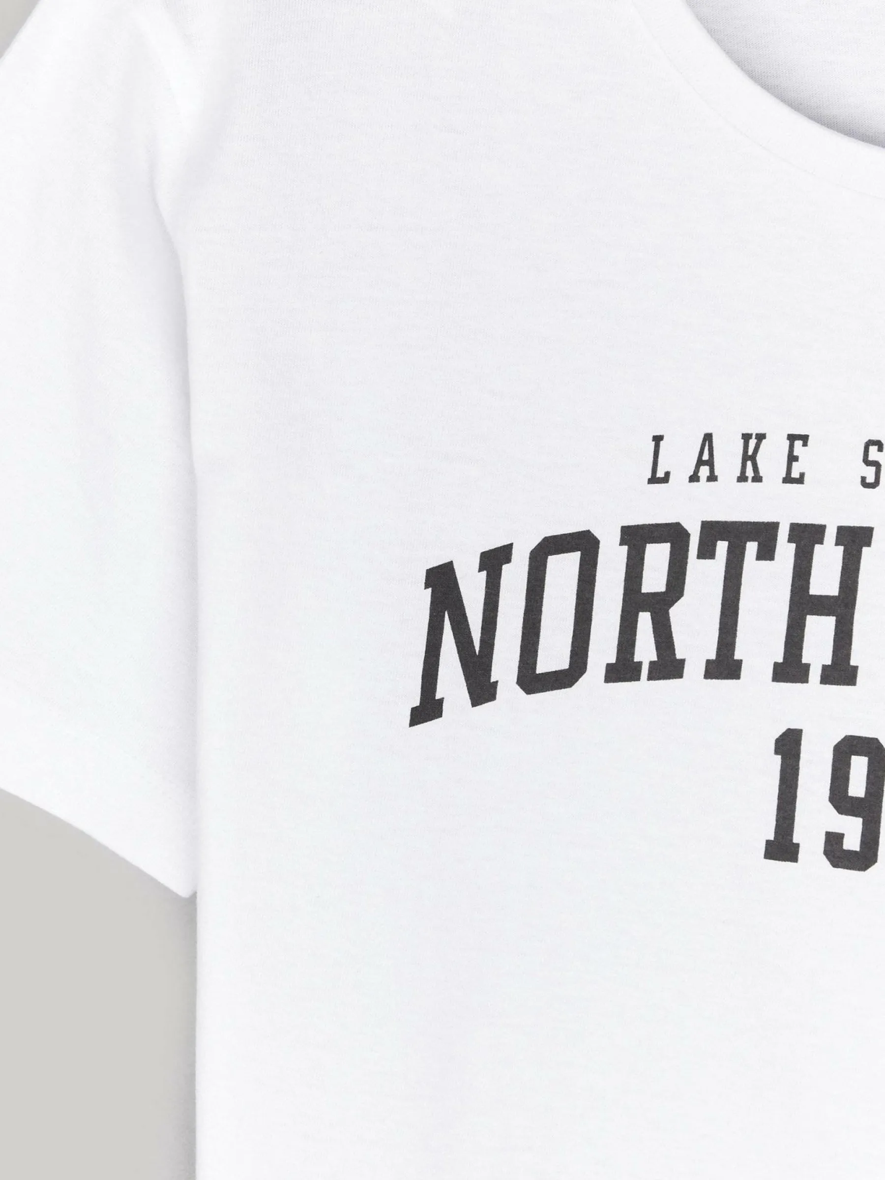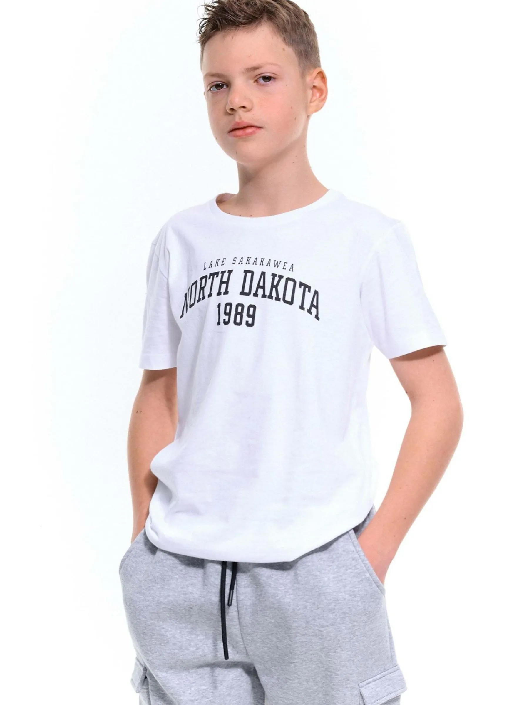 Kolor: białyKrój: regularTyp: koszulkaRekaw: krótki rękawDługość: krótkiPattern style: z nadrukiemMateriał: baw…