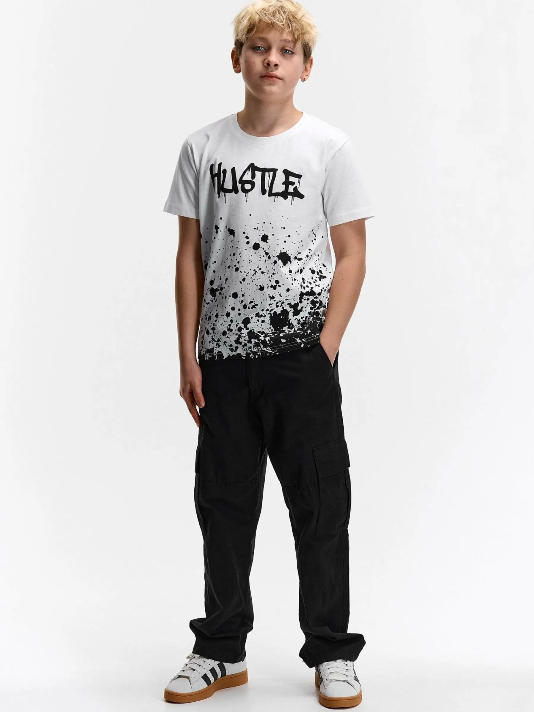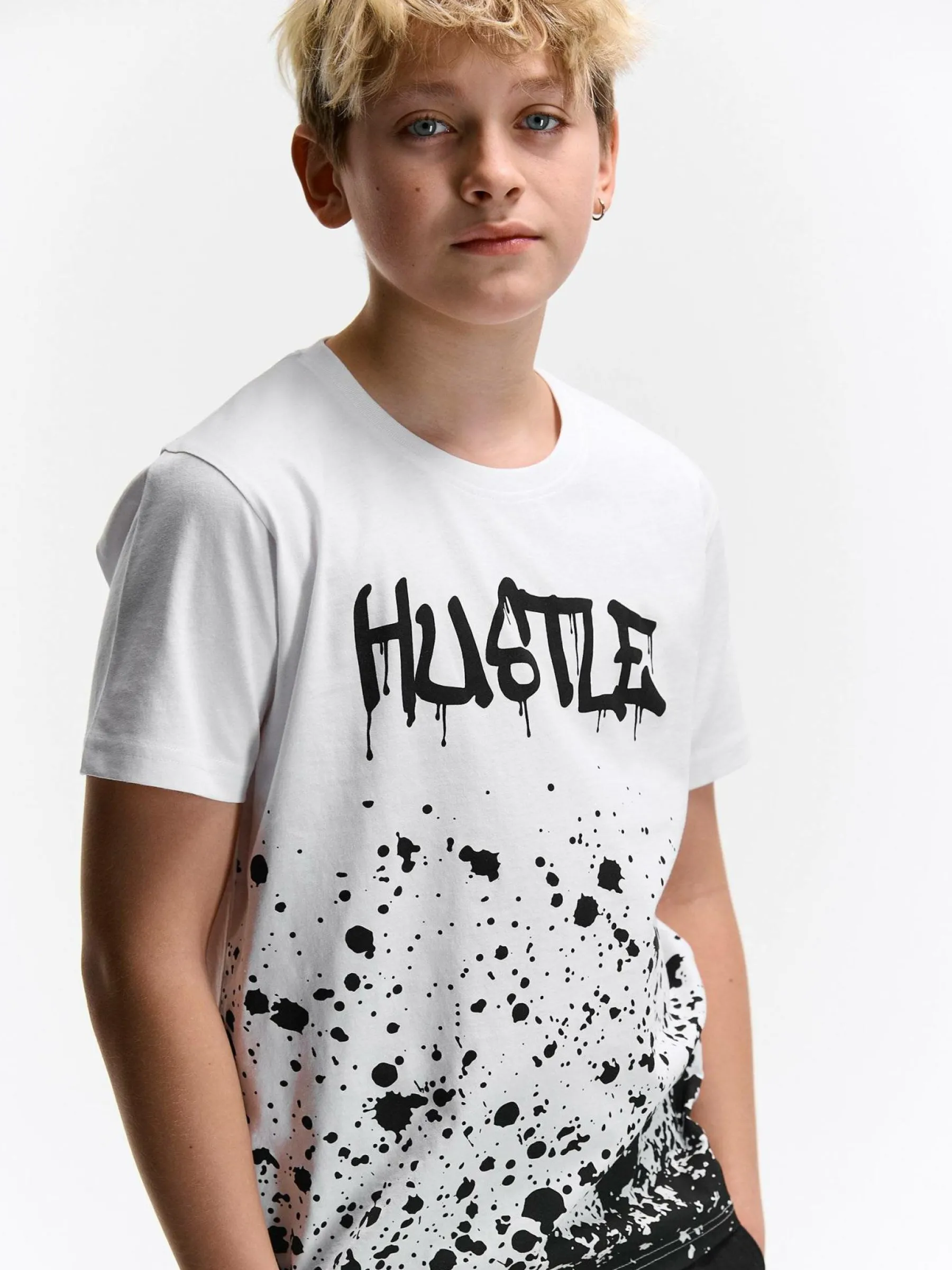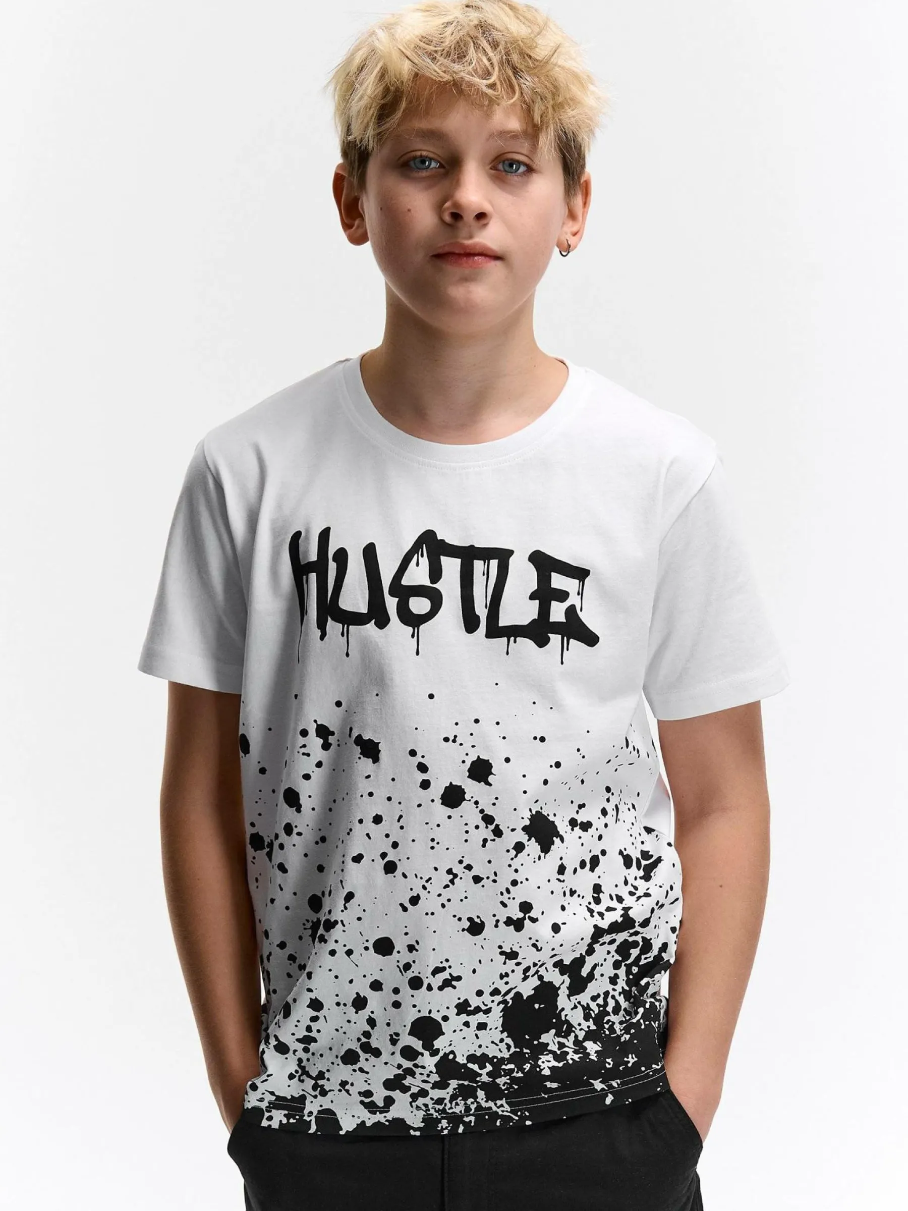 Kolor: białyKrój: regularTyp: koszulkaRekaw: krótki rękawDługość: krótkiPattern style: z nadrukiemDetal: nad gł…