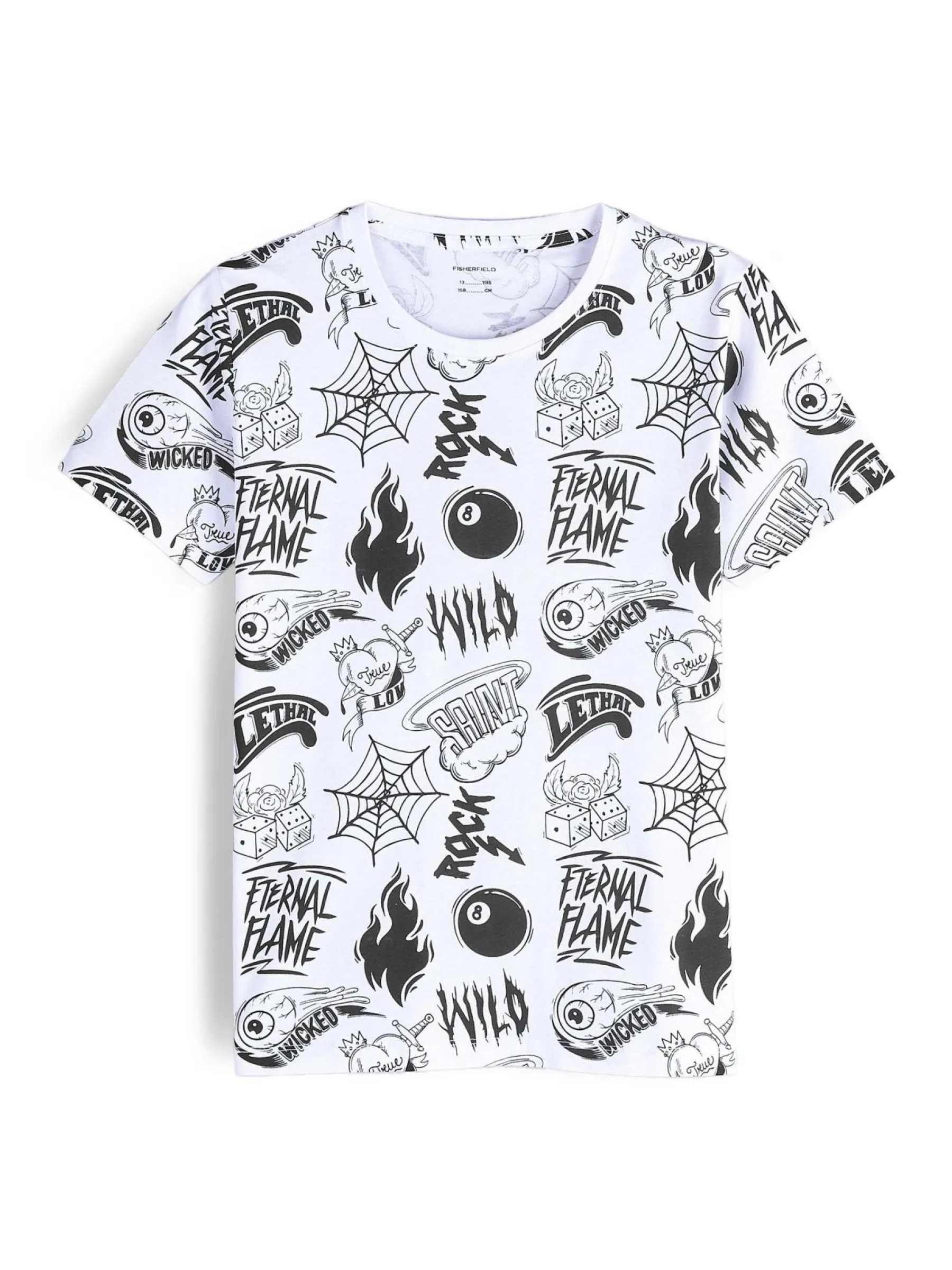 Kolor: białyKrój: regularTyp: koszulkaRekaw: krótki rękawDługość: krótkiPattern style: z nadrukiemDetal: nad gł…