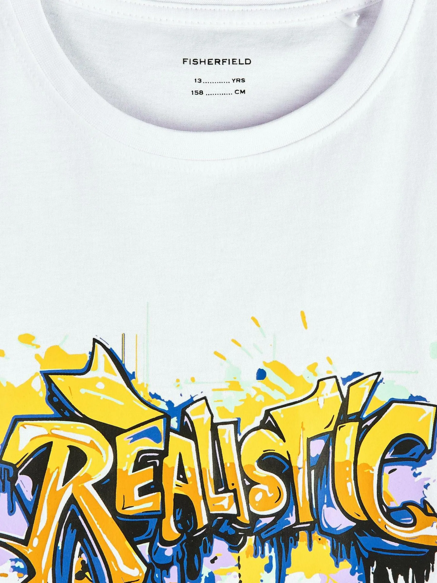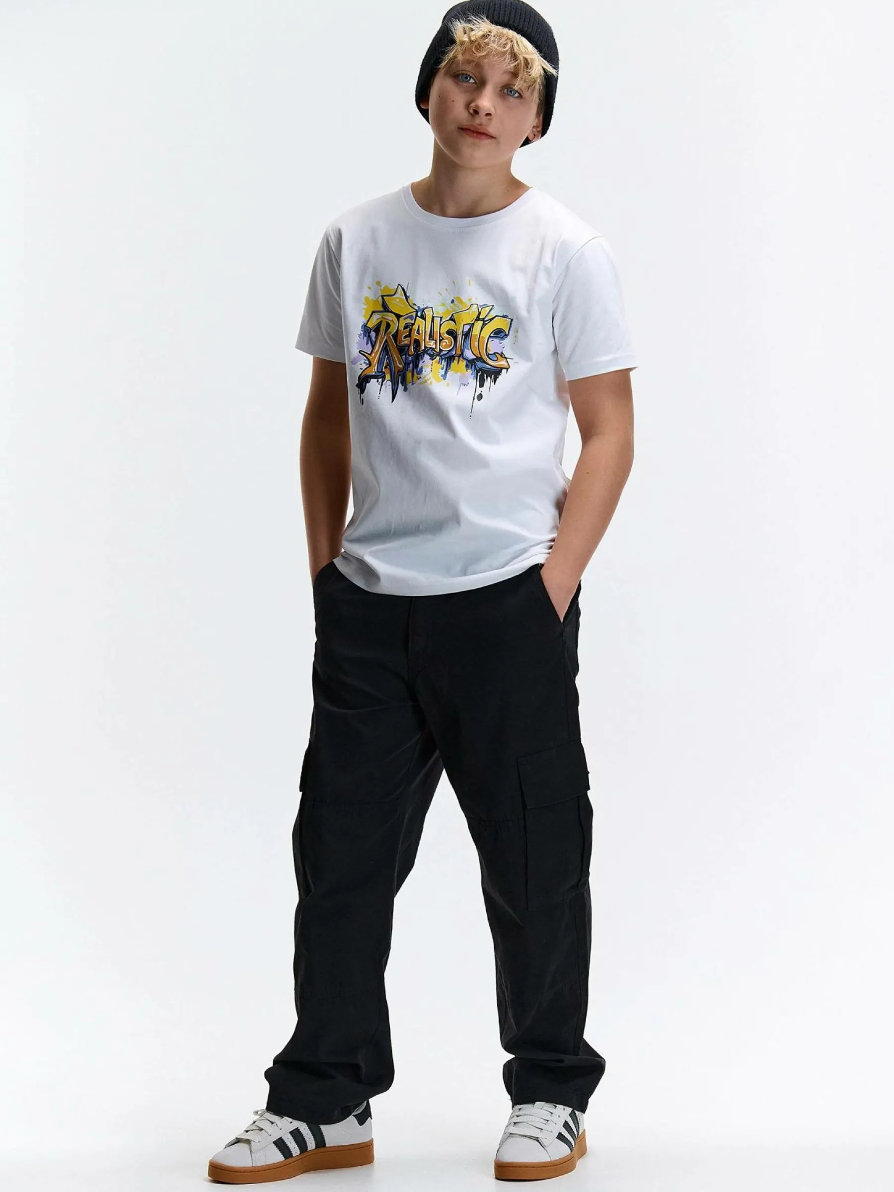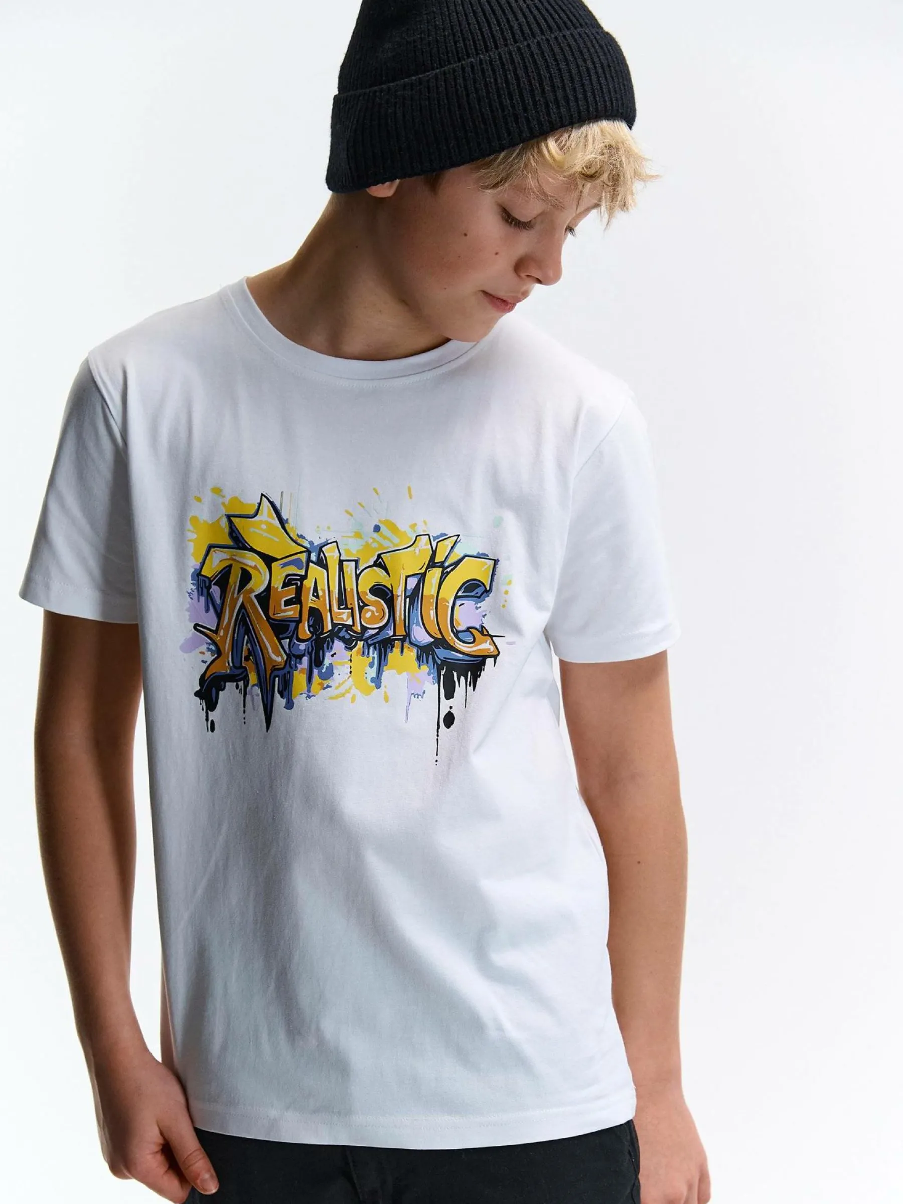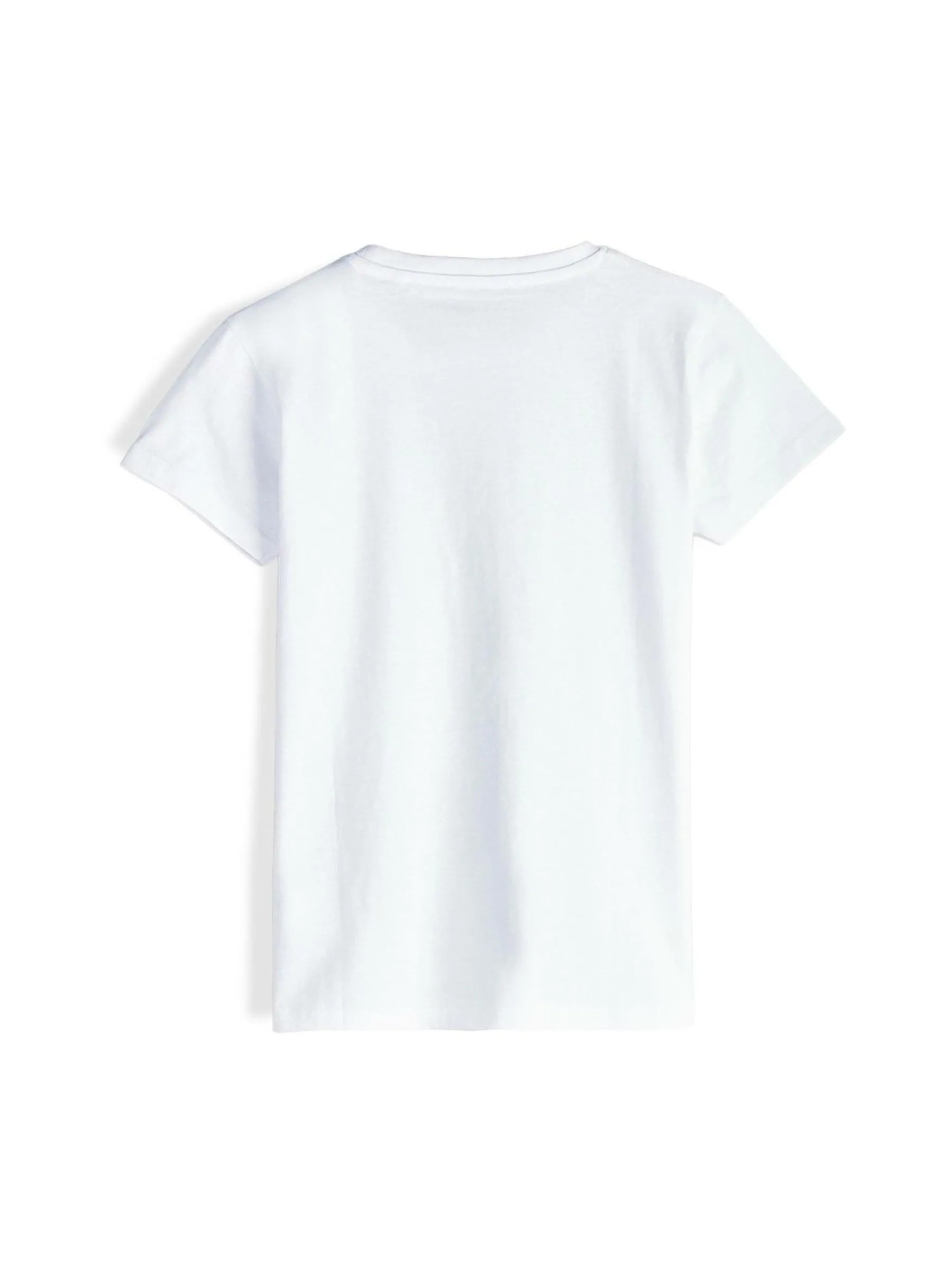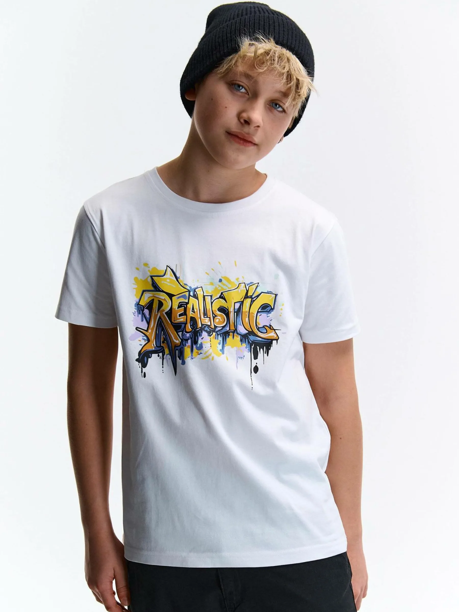 Kolor: białyKrój: regularTyp: koszulkaRekaw: krótki rękawDługość: krótkiPattern style: z nadrukiemDetal: nad gł…
