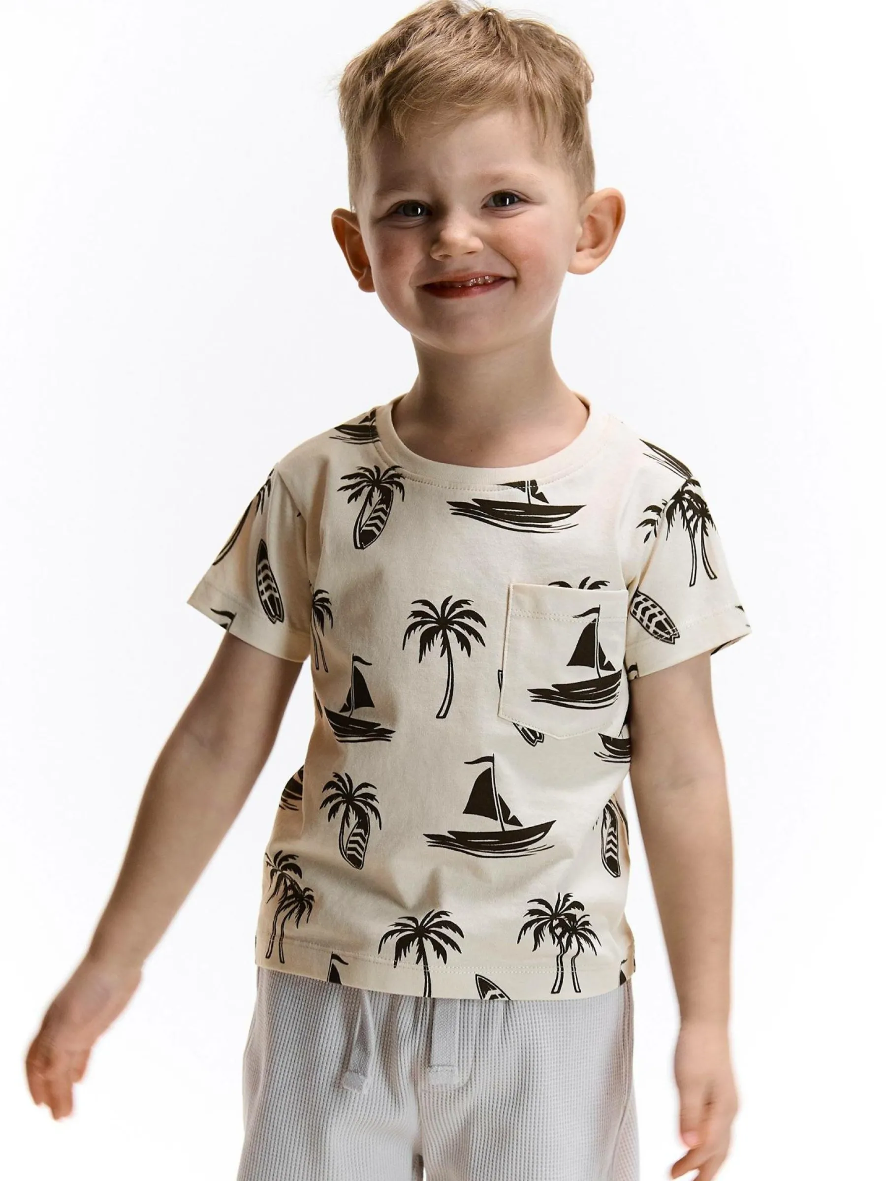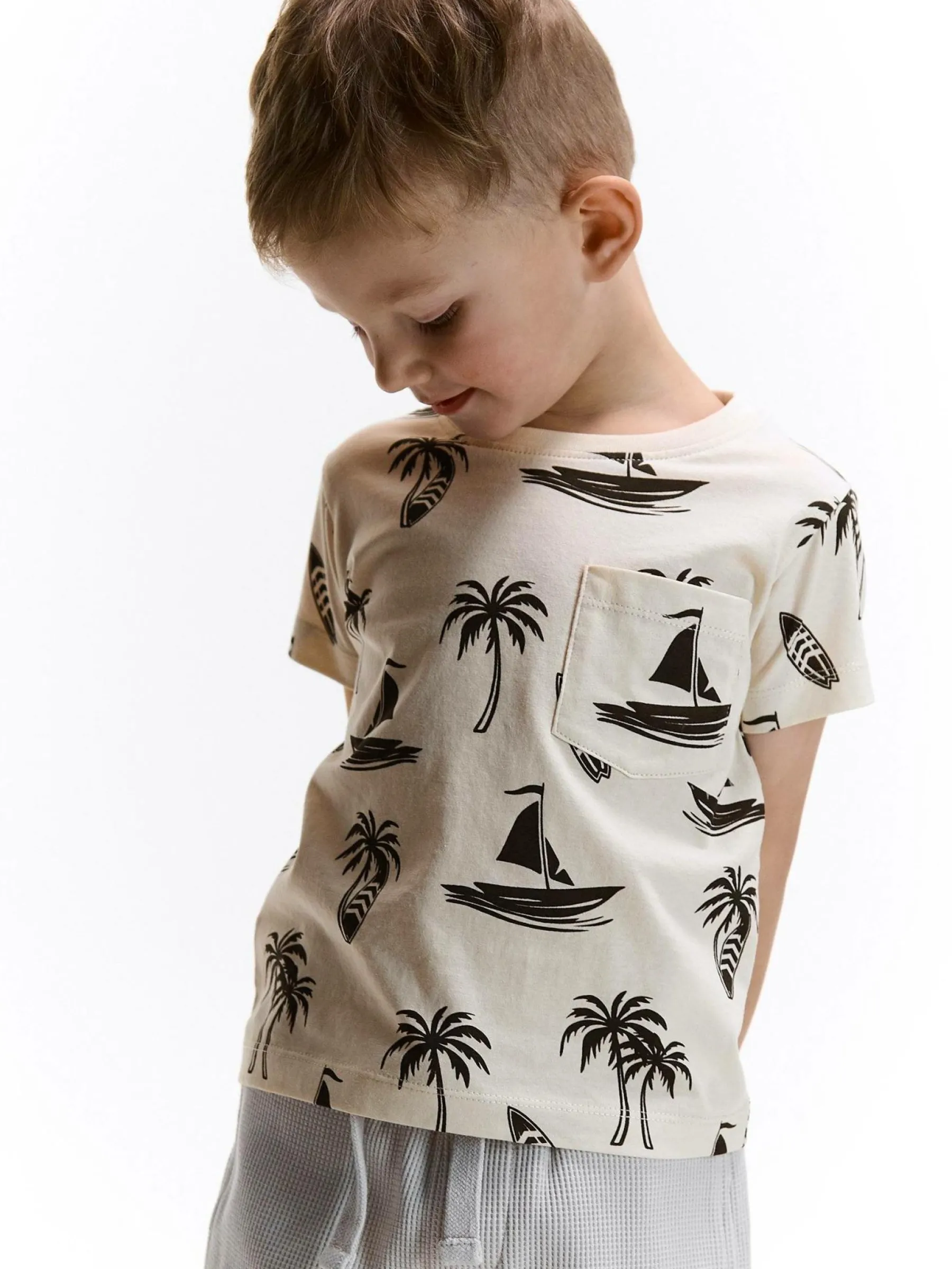 Kolor: beżowyKrój: podstawowyTyp: koszulkaRekaw: krótki rękawDługość: krótkiPattern style: z nadrukiemDetal: nad…