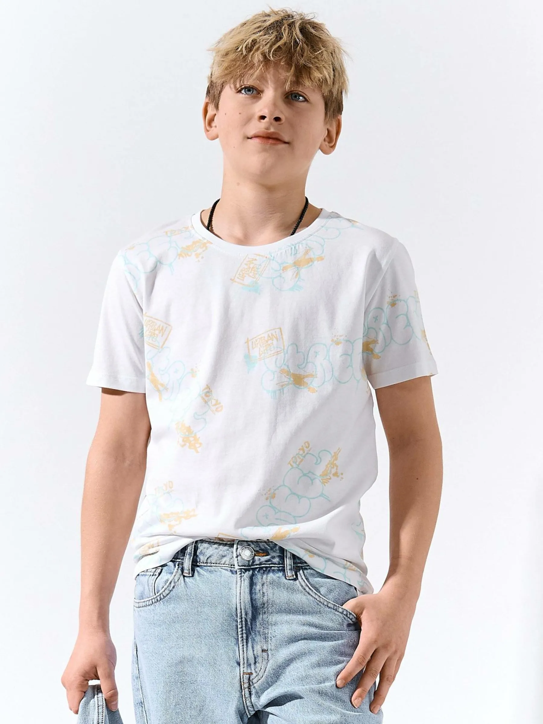 Kolor: białyKrój: podstawowyTyp: koszulkaRekaw: krótki rękawDługość: krótkiPattern style: z nadrukiemDetal: nad …