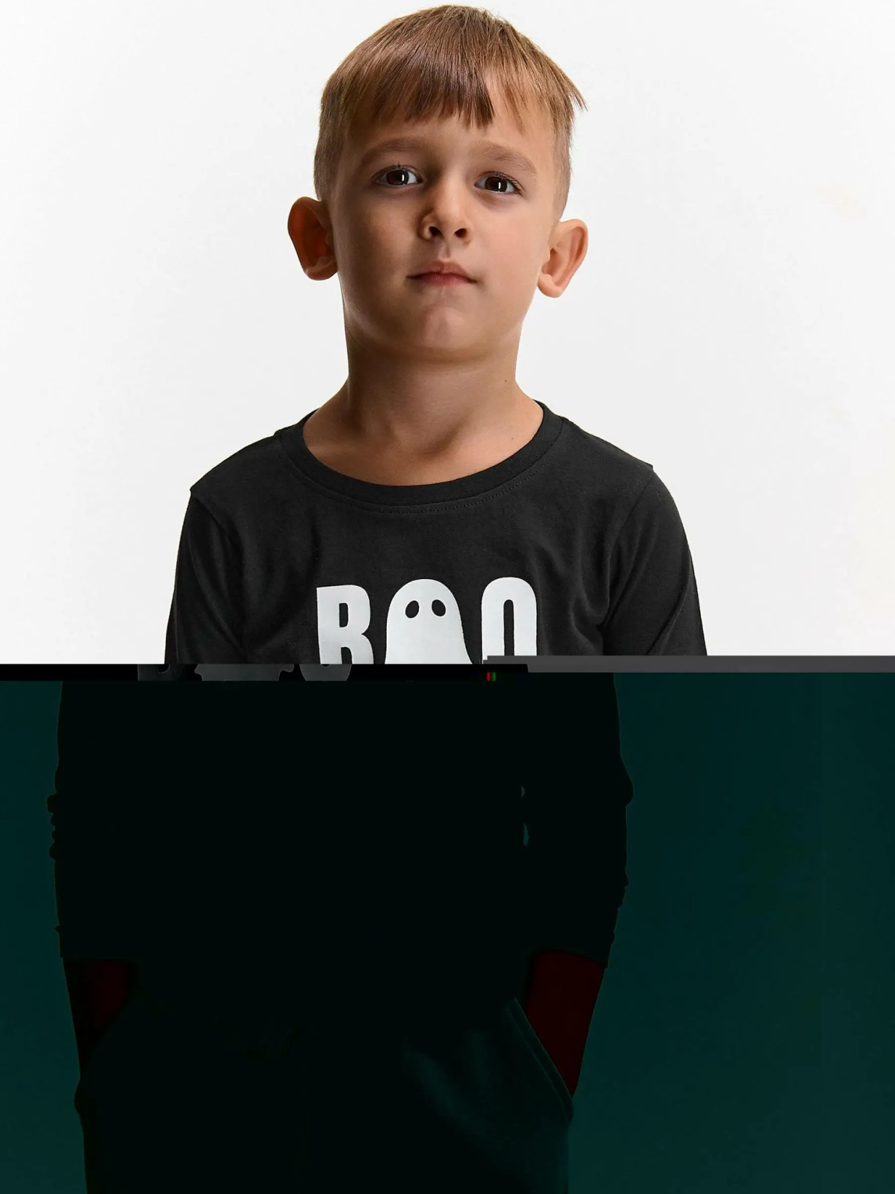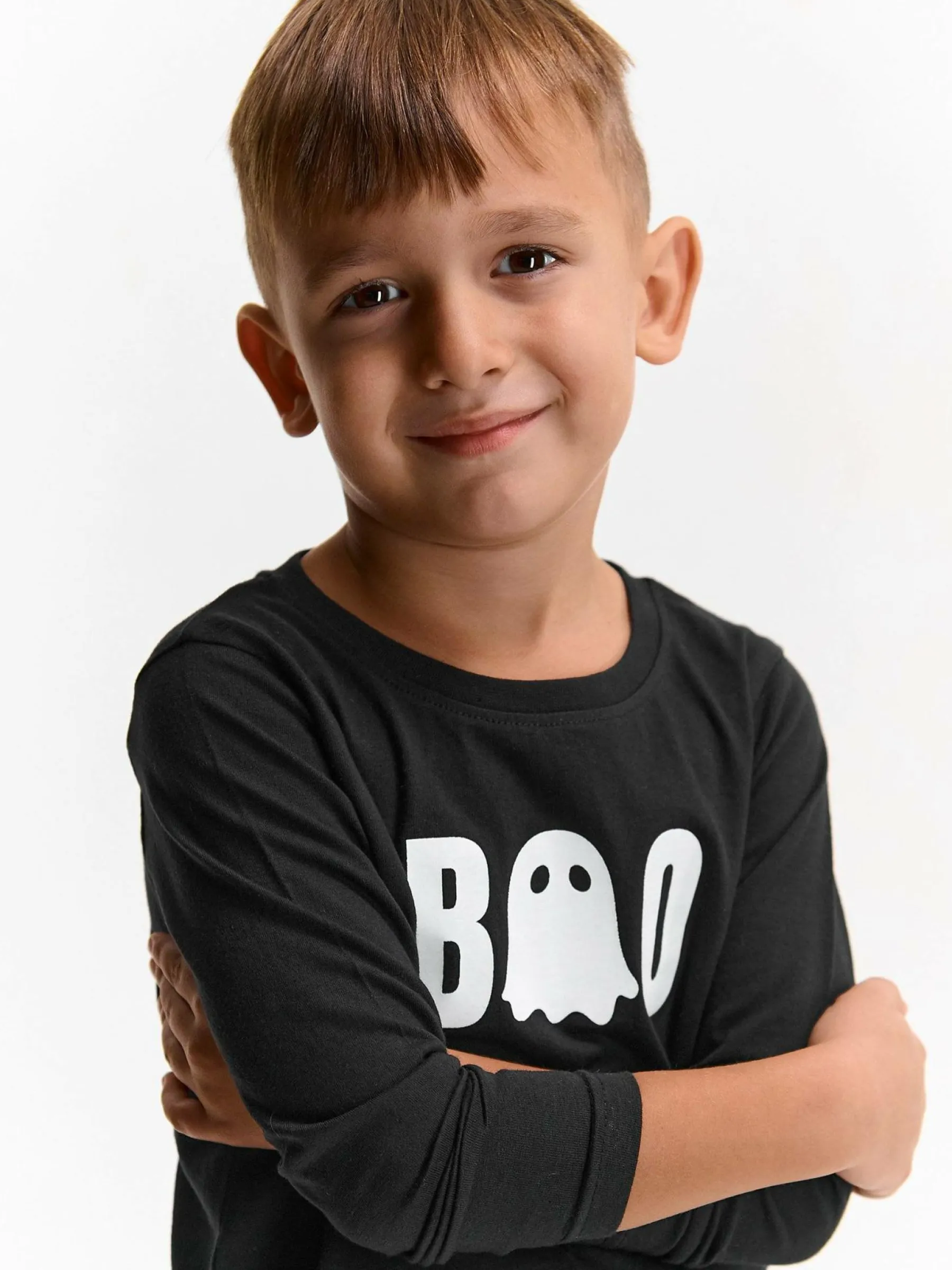 Kolor: czarnyKrój: podstawowyTyp: koszulkaRekaw: długi rękawDługość: krótkiPattern style: z nadrukiemDetal: nad g…