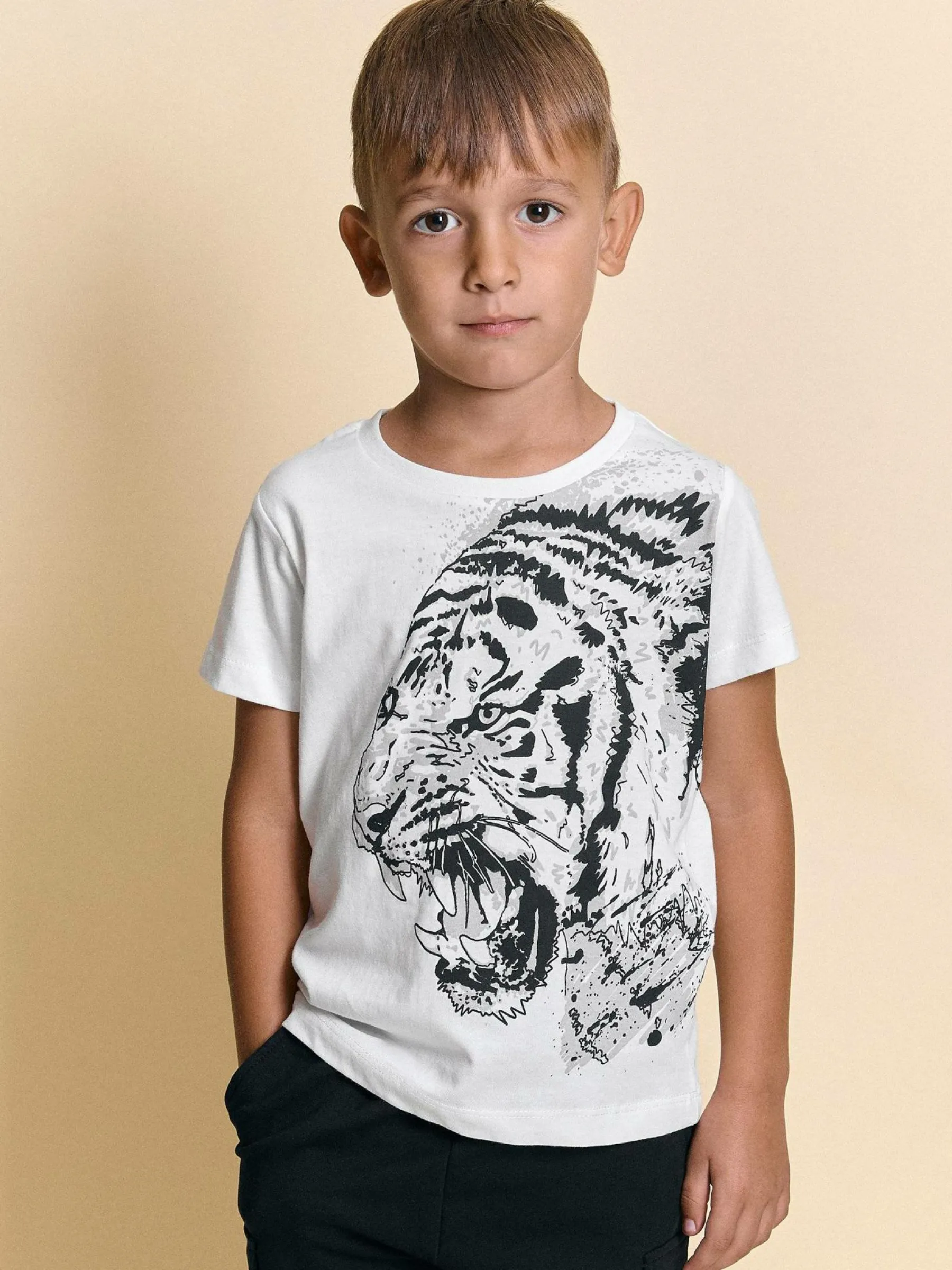 Kolor: białyKrój: podstawowyTyp: koszulkaRekaw: krótki rękawDługość: krótkiPattern style: z nadrukiemMateriał: …