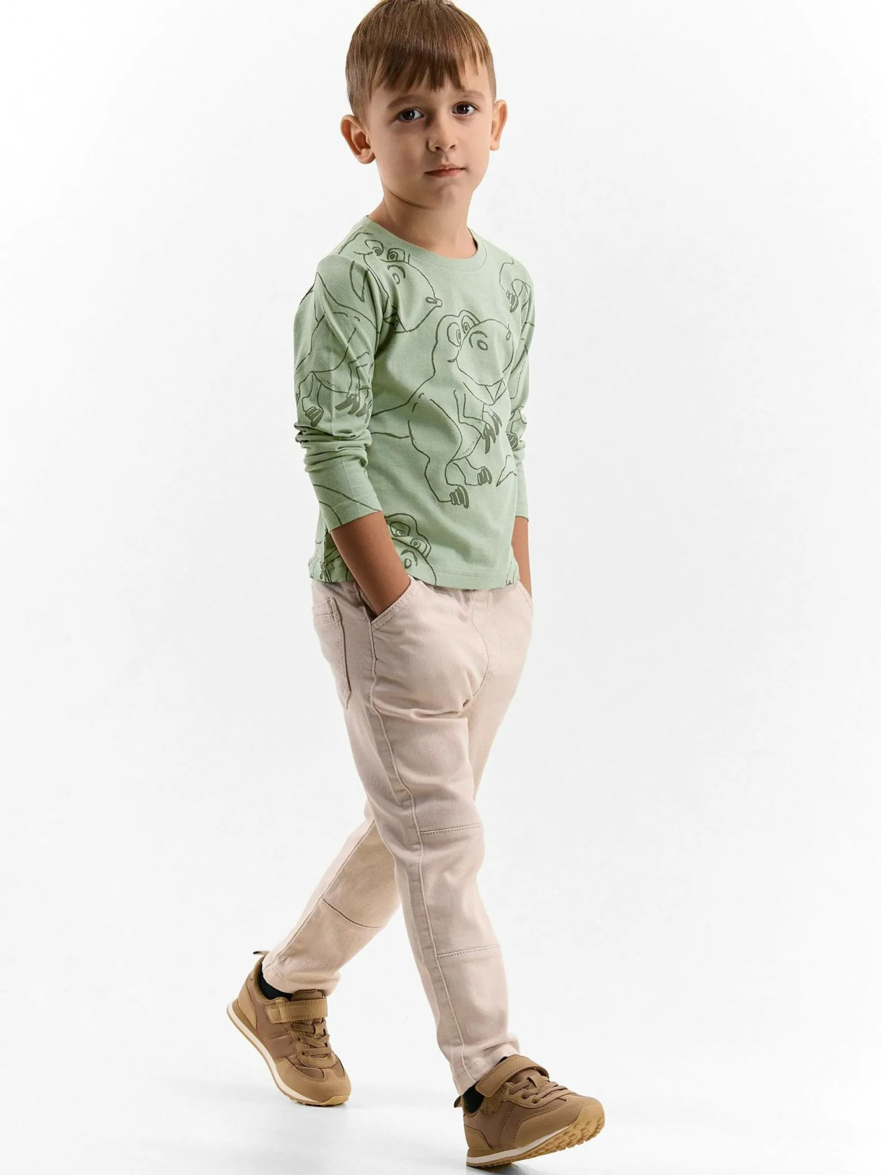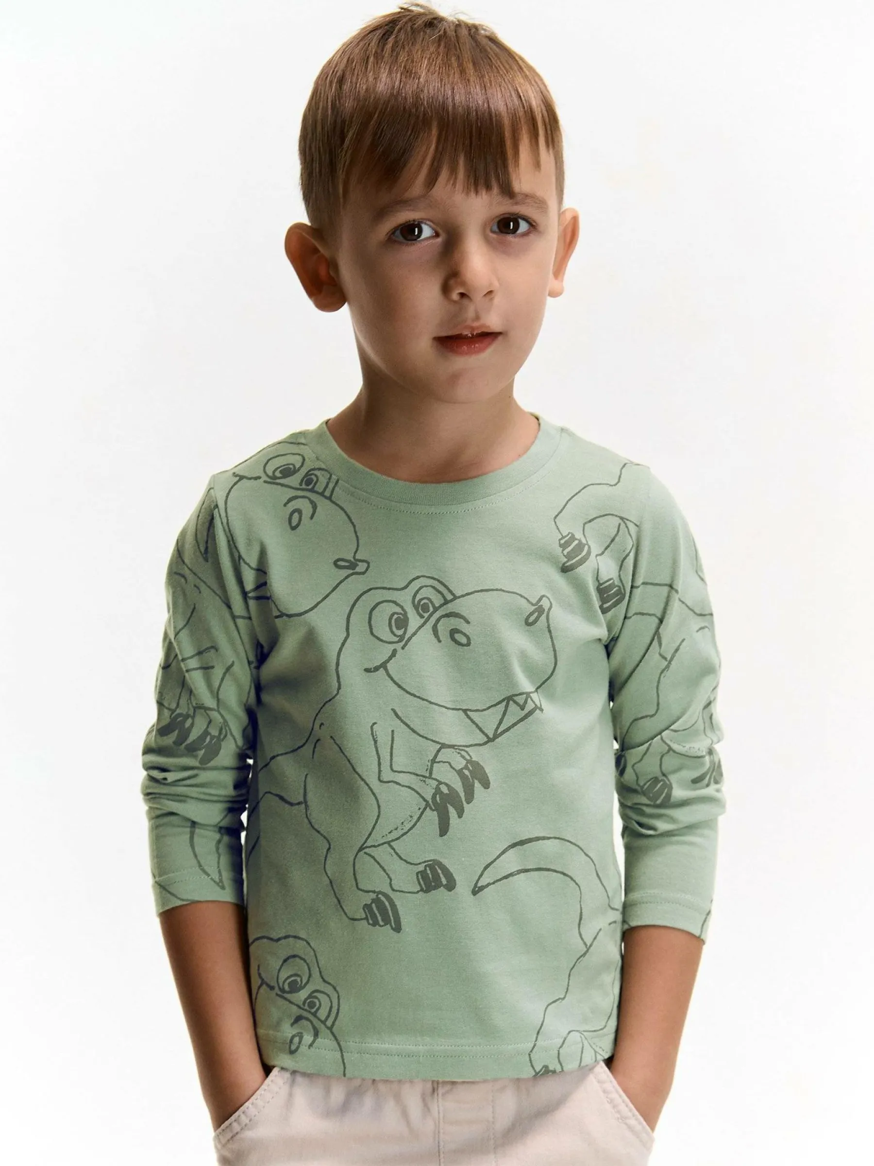 Kolor: szary, zielonyKrój: podstawowyTyp: koszulkaRekaw: długi rękawDługość: krótkiPattern style: z nadrukiemDeta…
