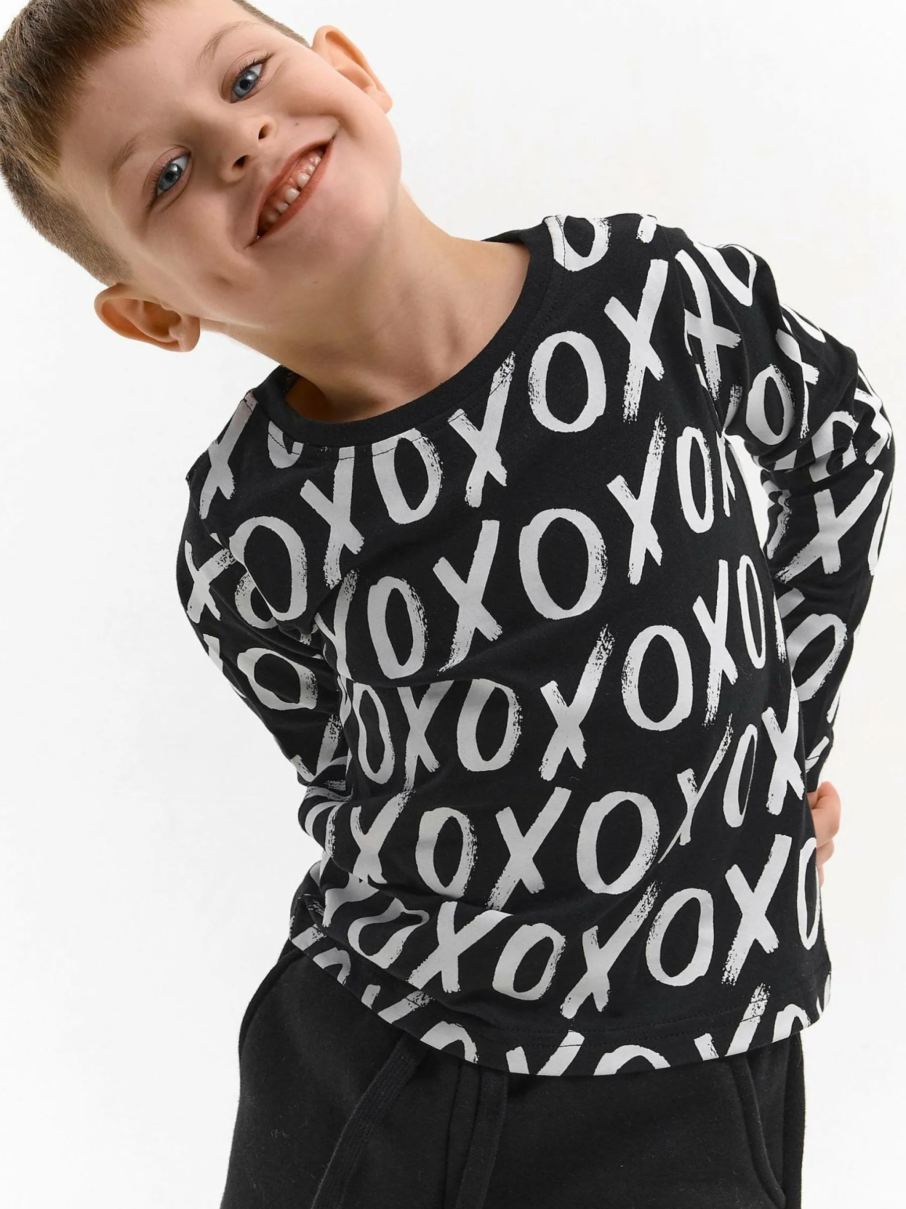 Kolor: czarnyKrój: regularTyp: koszulkaRekaw: długi rękawDługość: krótkiPattern style: z nadrukiemDetal: nad gło…