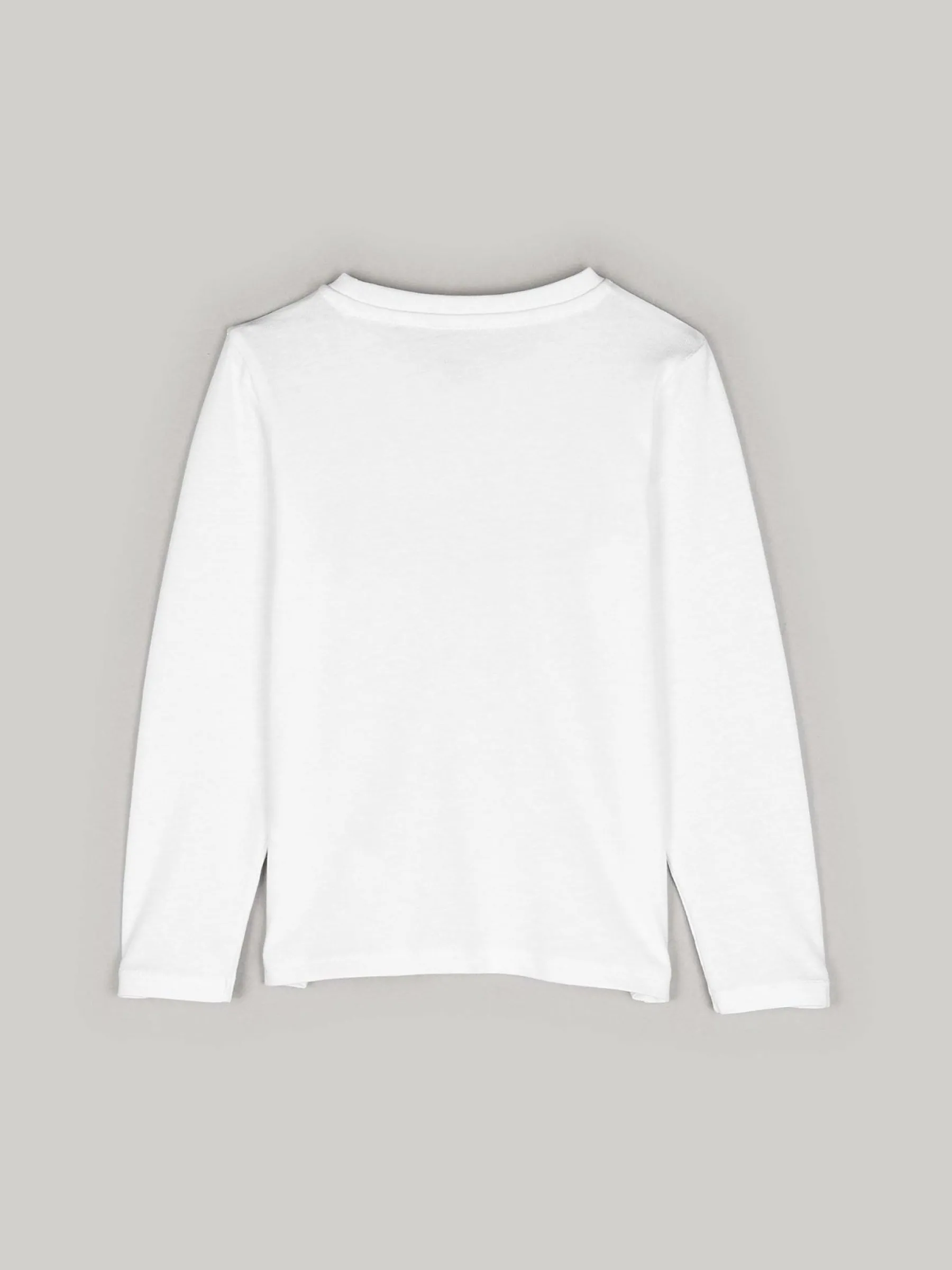 Kolor: białyKrój: regularTyp: koszulkaRekaw: długi rękawDługość: krótkiPattern style: z nadrukiemDetal: nad gło…