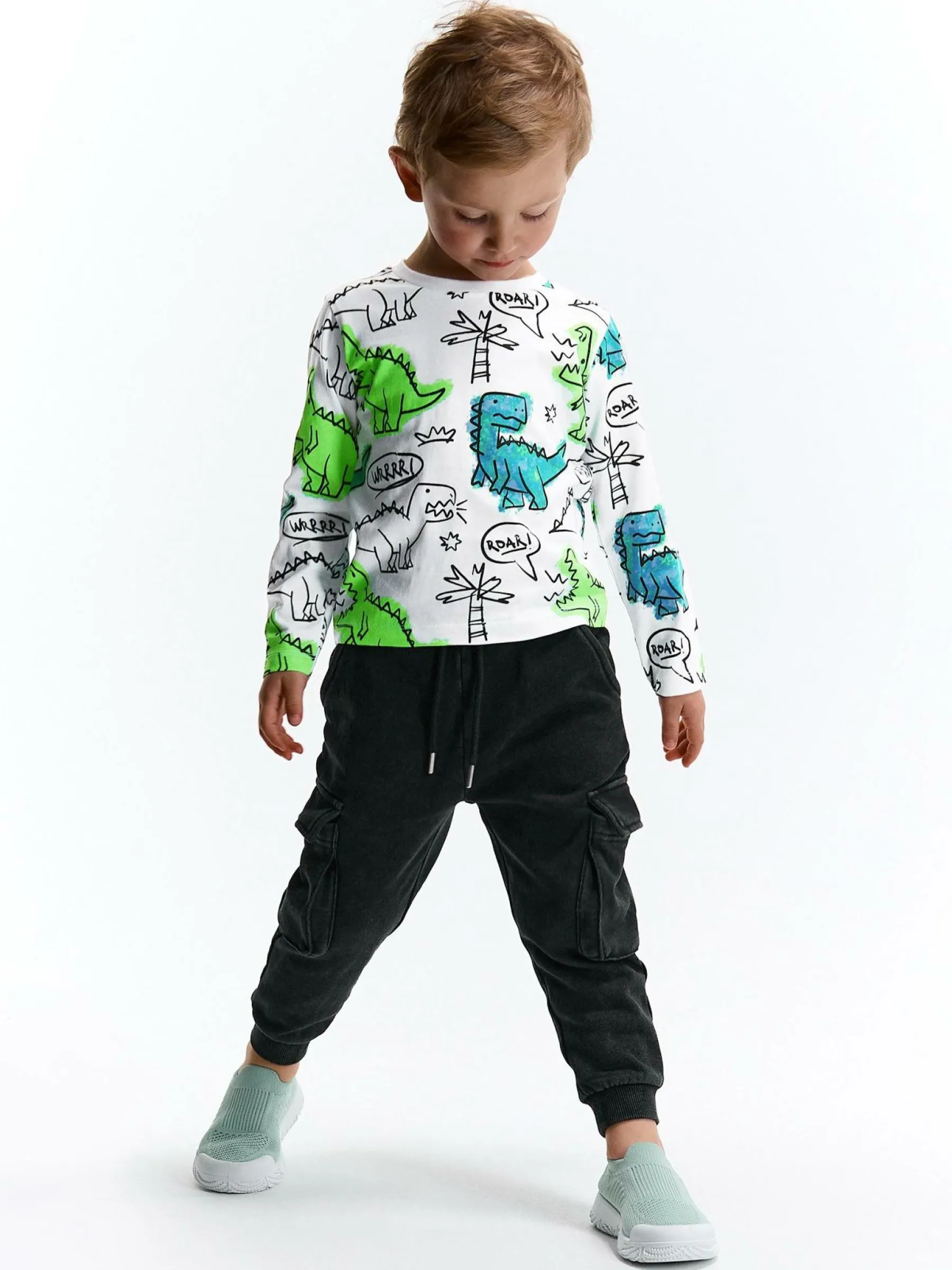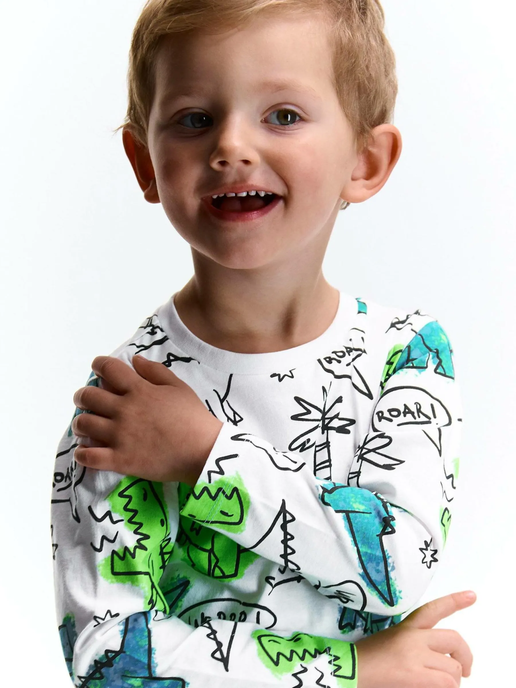 Kolor: białyKrój: regularTyp: koszulkaRekaw: długi rękawDługość: krótkiPattern style: z nadrukiemDetal: nad gło…