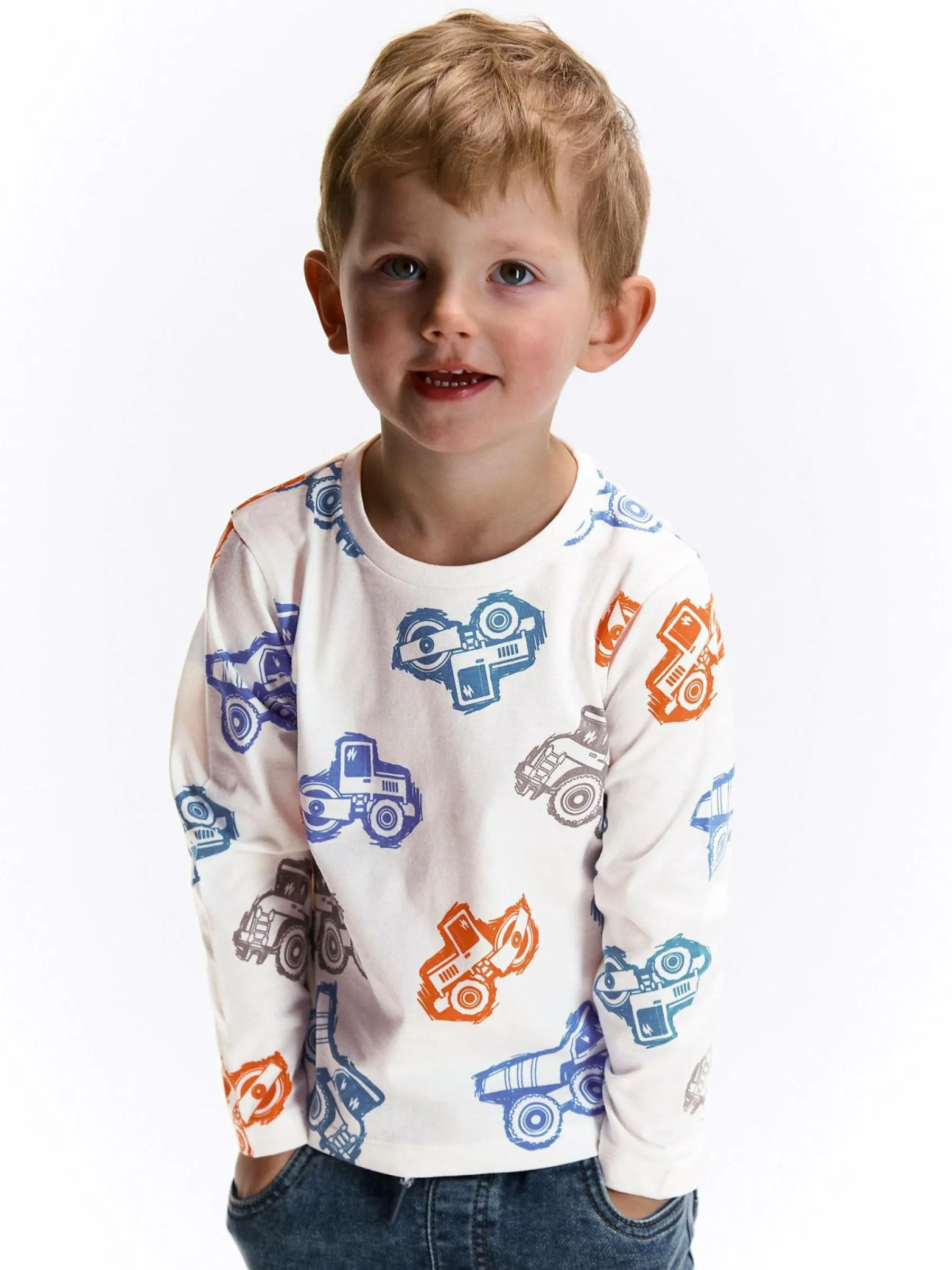 Kolor: białyKrój: podstawowyTyp: koszulkaRekaw: długi rękawDługość: krótkiPattern style: z nadrukiemDetal: nad g…