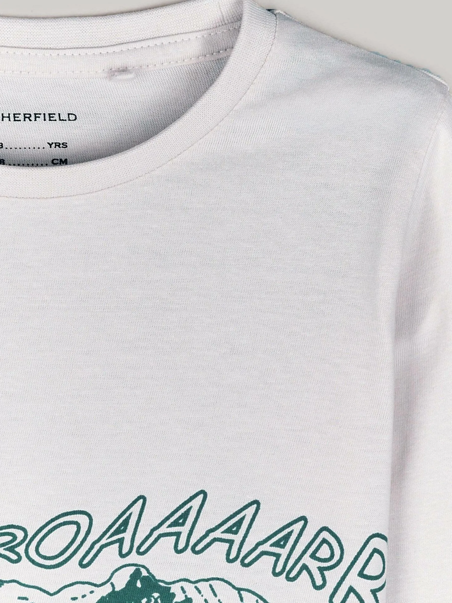 Kolor: beżowy, białyKrój: regularTyp: koszulkaRekaw: długi rękawDługość: krótkiPattern style: z nadrukiemDetal:…