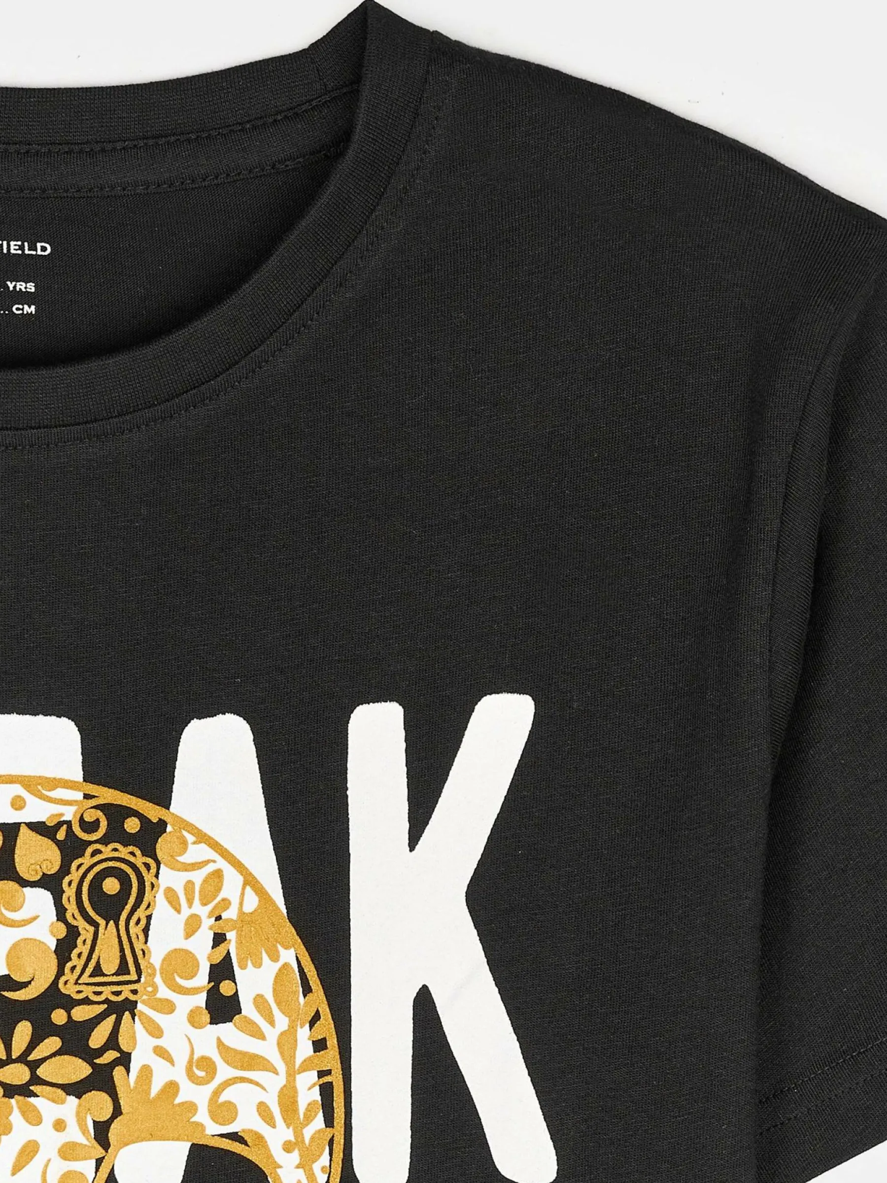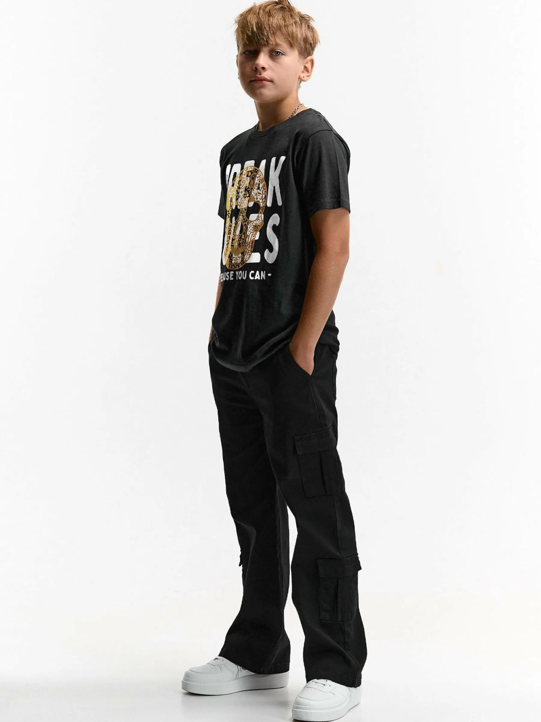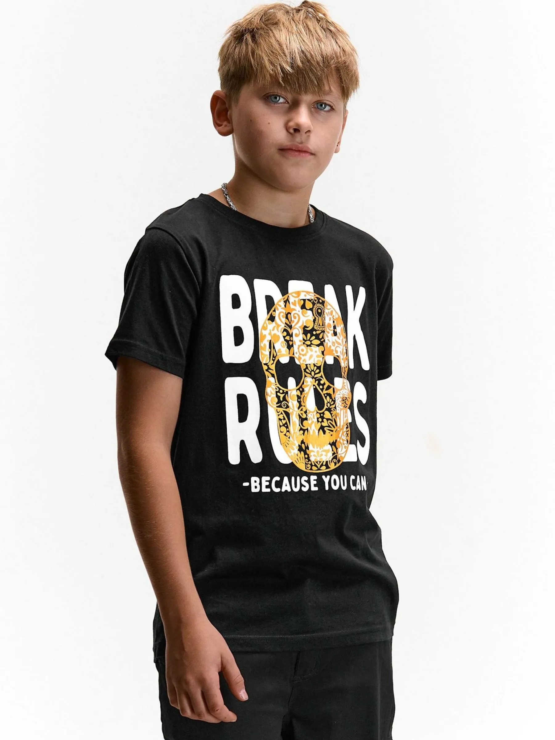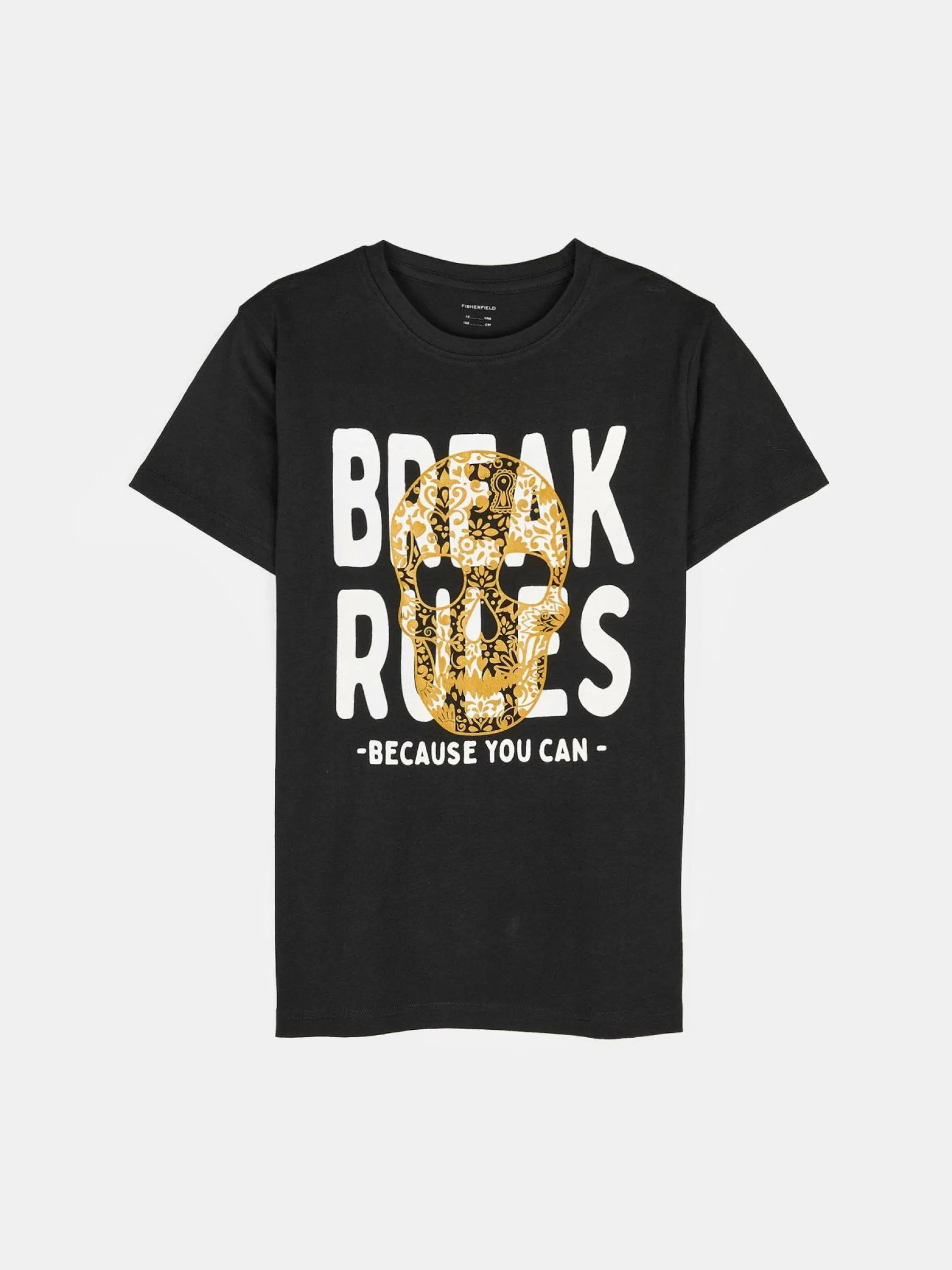 Kolor: czarnyKrój: podstawowyTyp: koszulkaRekaw: krótki rękawDługość: krótkiPattern style: z nadrukiemDetal: nad …