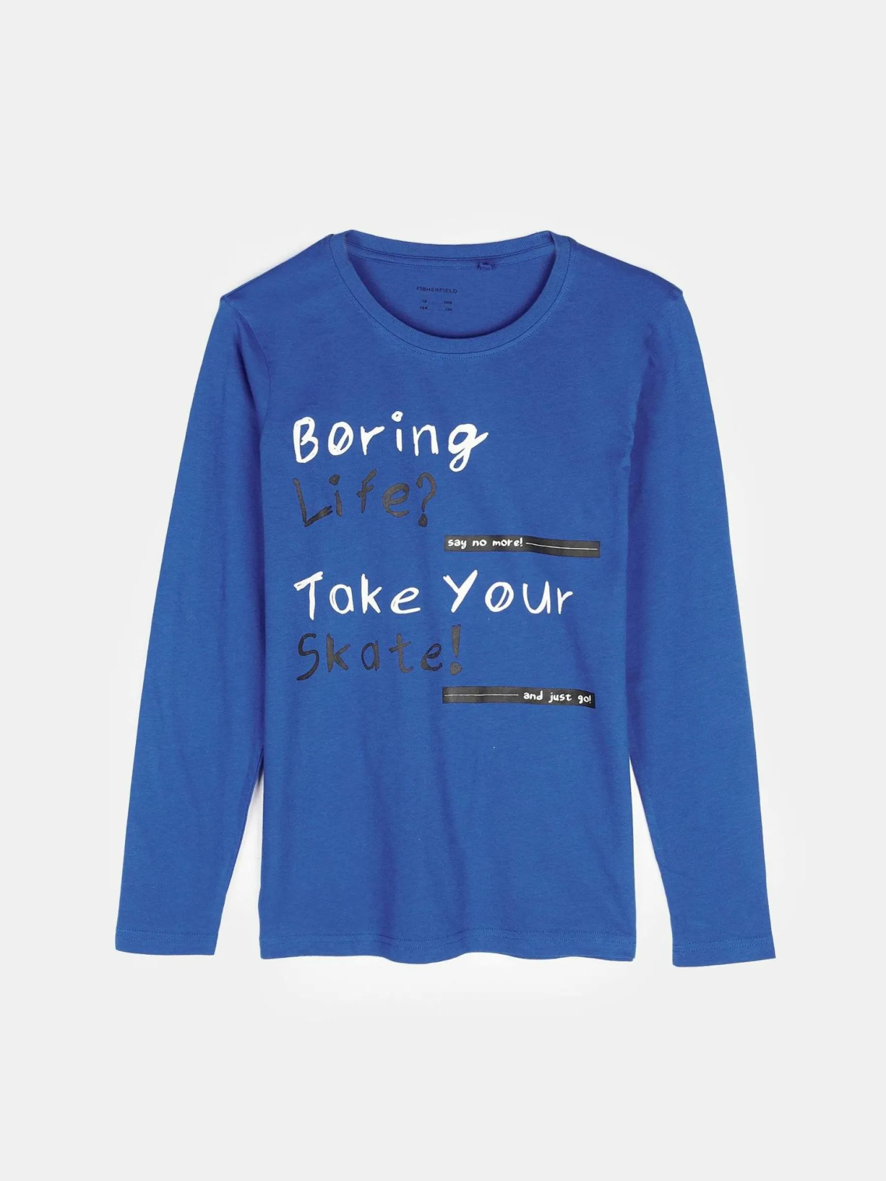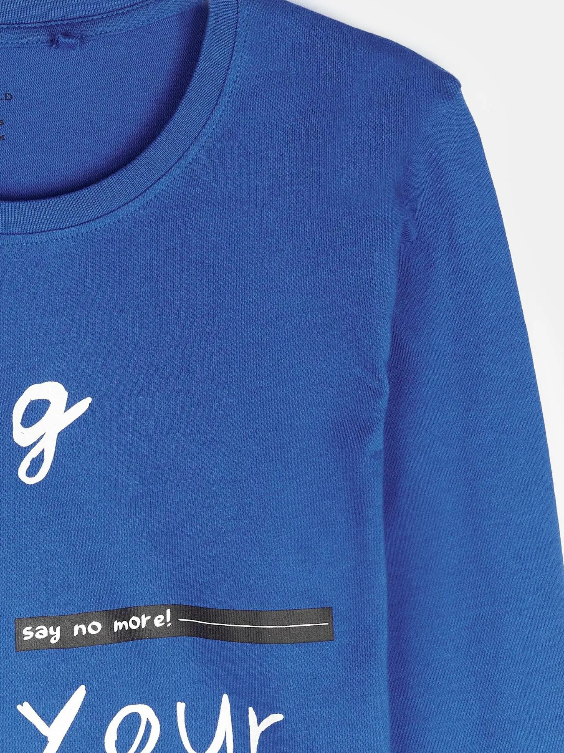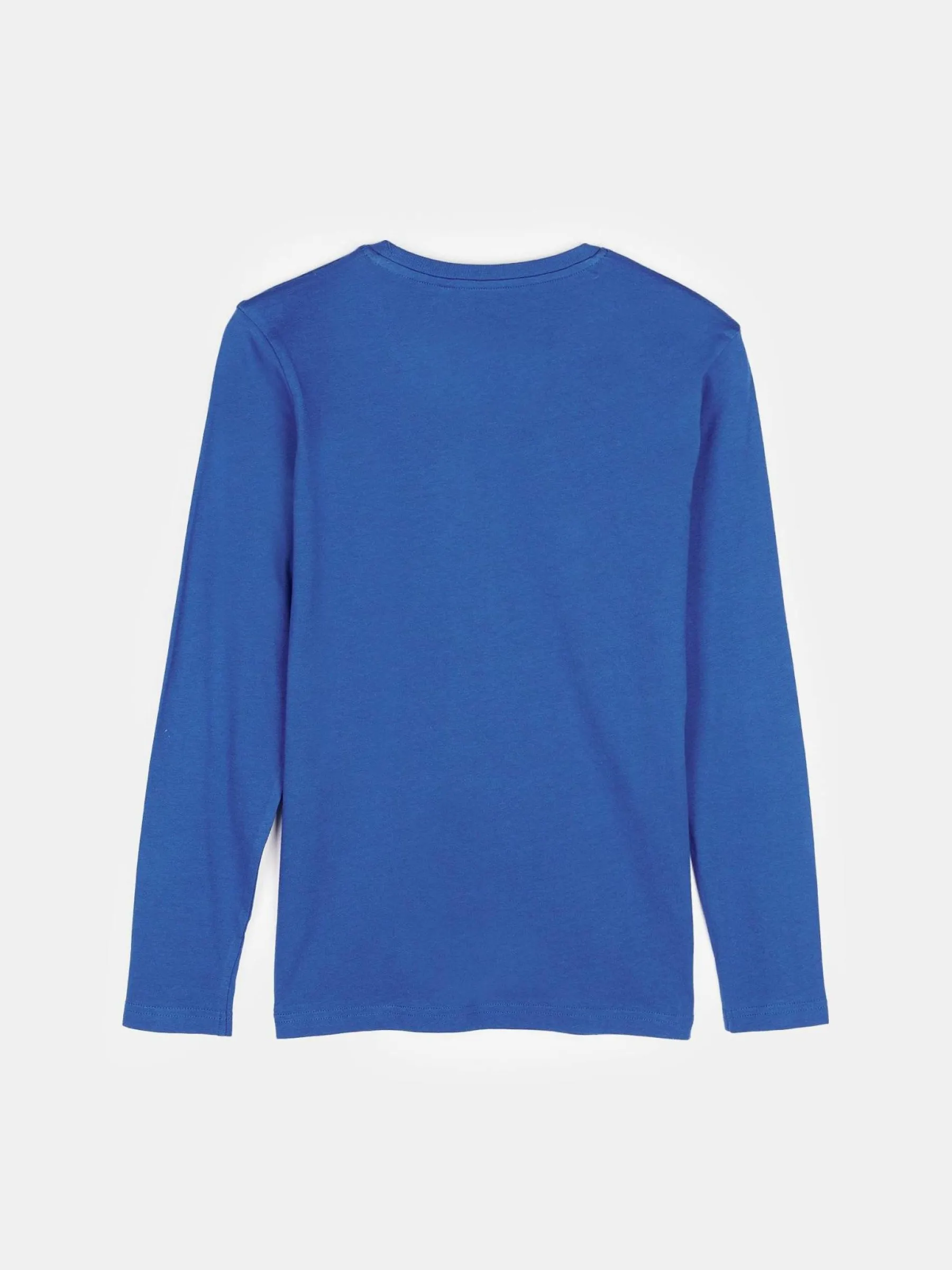Kolor: niebieskiKrój: podstawowyTyp: koszulkaRekaw: długi rękawDługość: krótkiPattern style: z nadrukiemDetal: na…