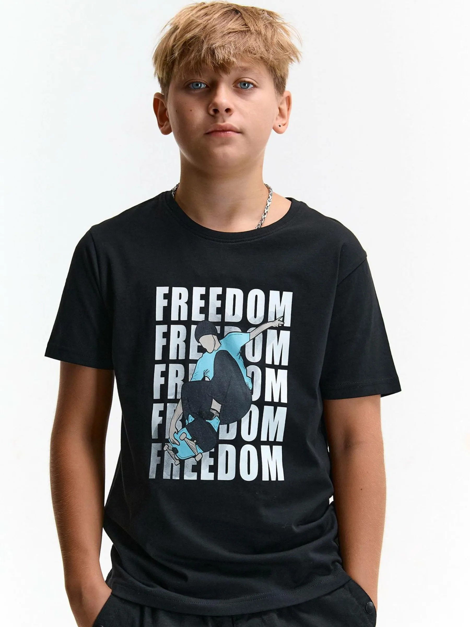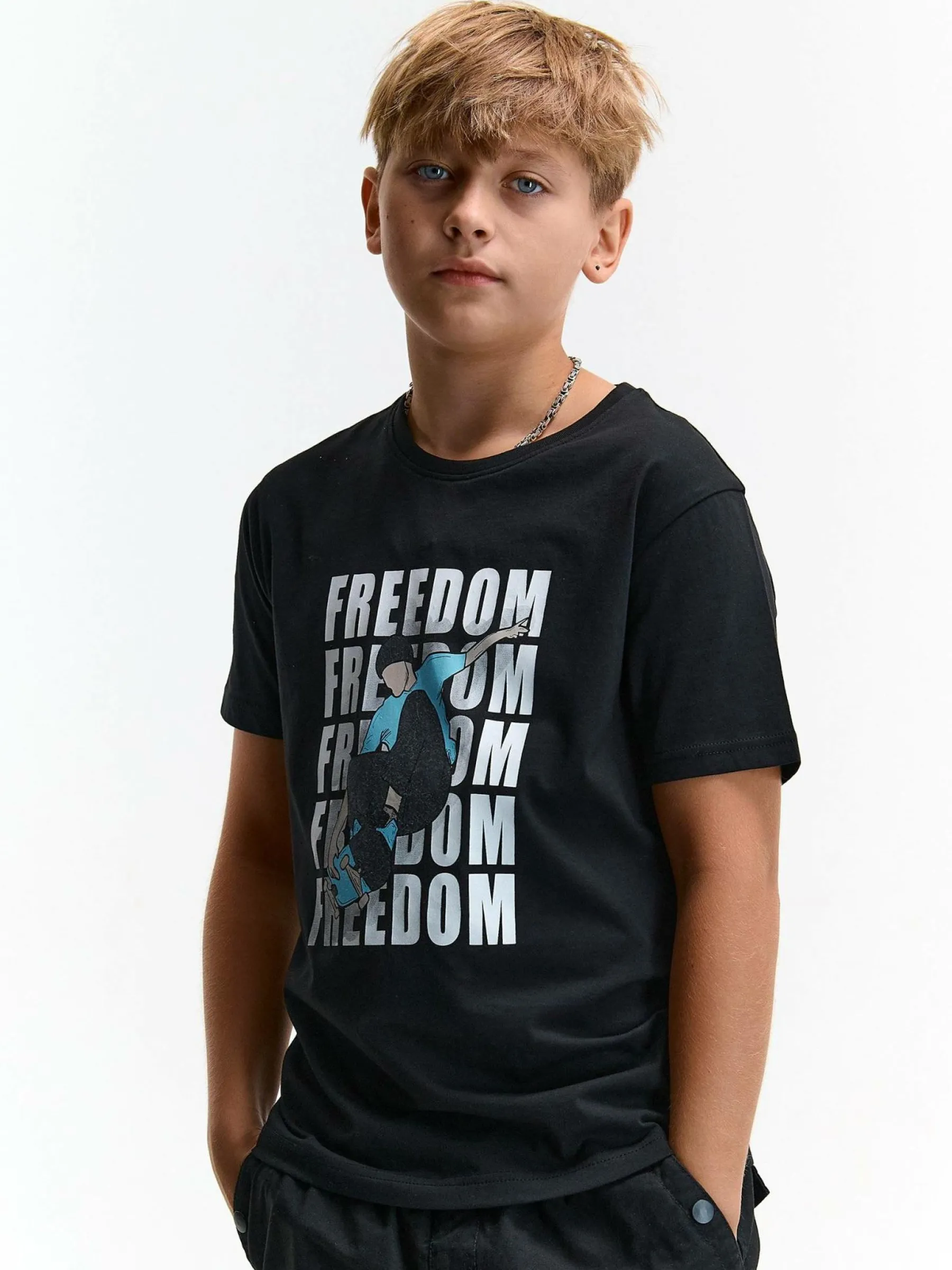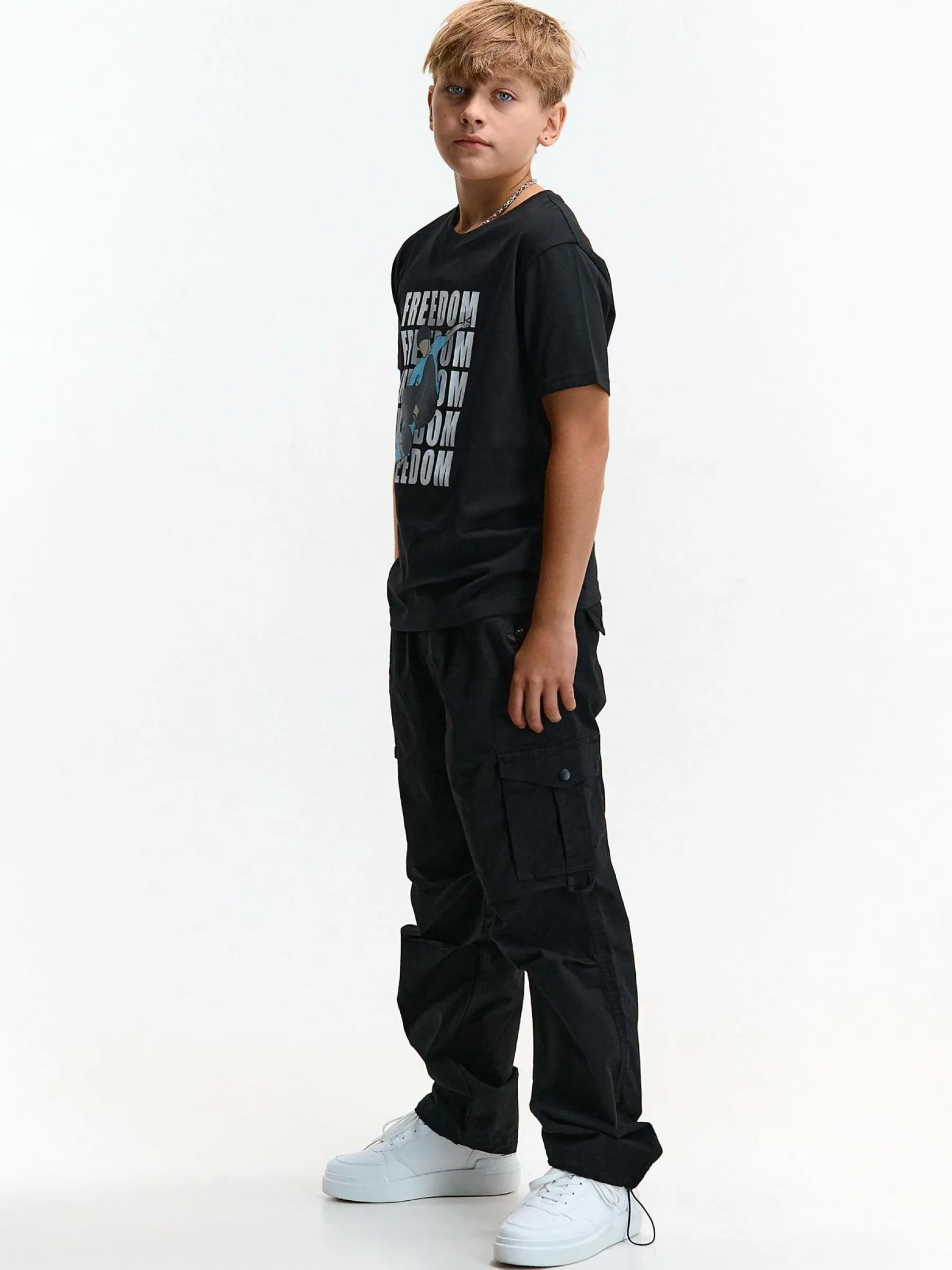 Kolor: czarnyKrój: podstawowyTyp: koszulkaRekaw: krótki rękawDługość: krótkiPattern style: z nadrukiemDetal: nad …