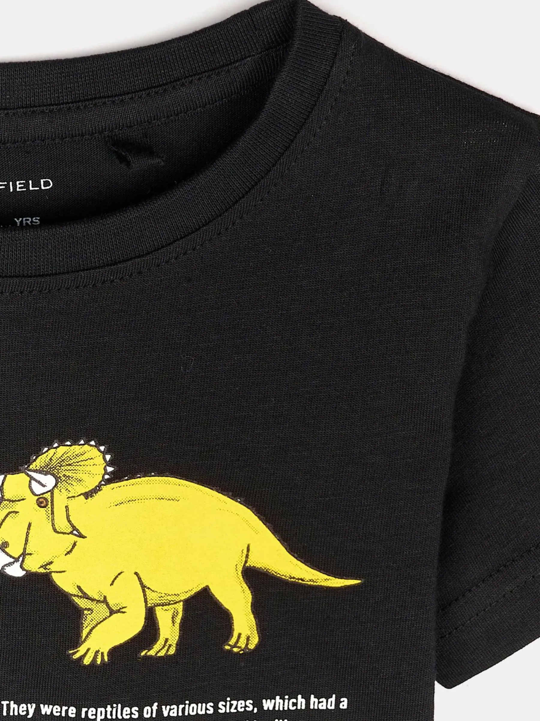 Kolor: czarnyKrój: podstawowyTyp: koszulkaRekaw: krótki rękawDługość: krótkiPattern style: z nadrukiemDetal: nad …
