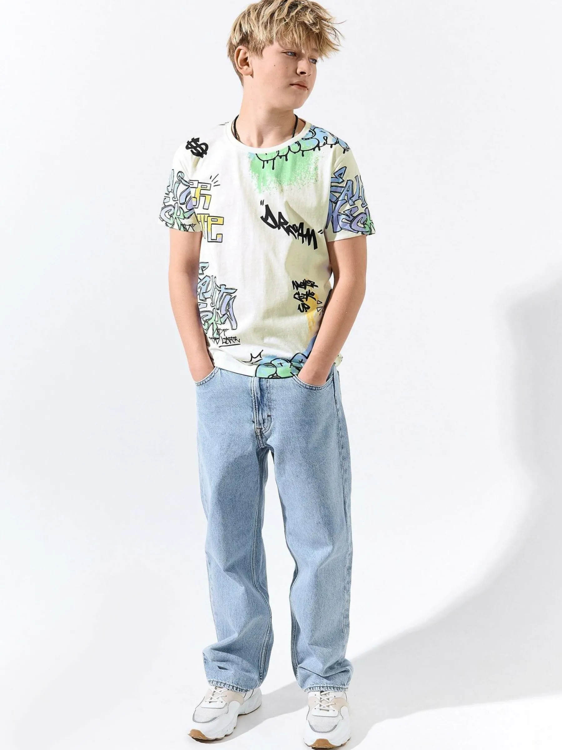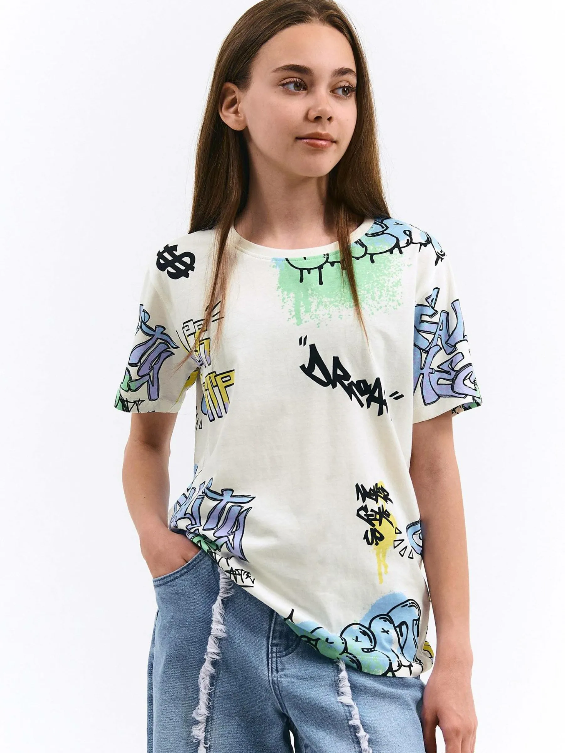 Kolor: beżowyKrój: podstawowyTyp: koszulkaRekaw: krótki rękawDługość: krótkiPattern style: z nadrukiemDetal: nad…